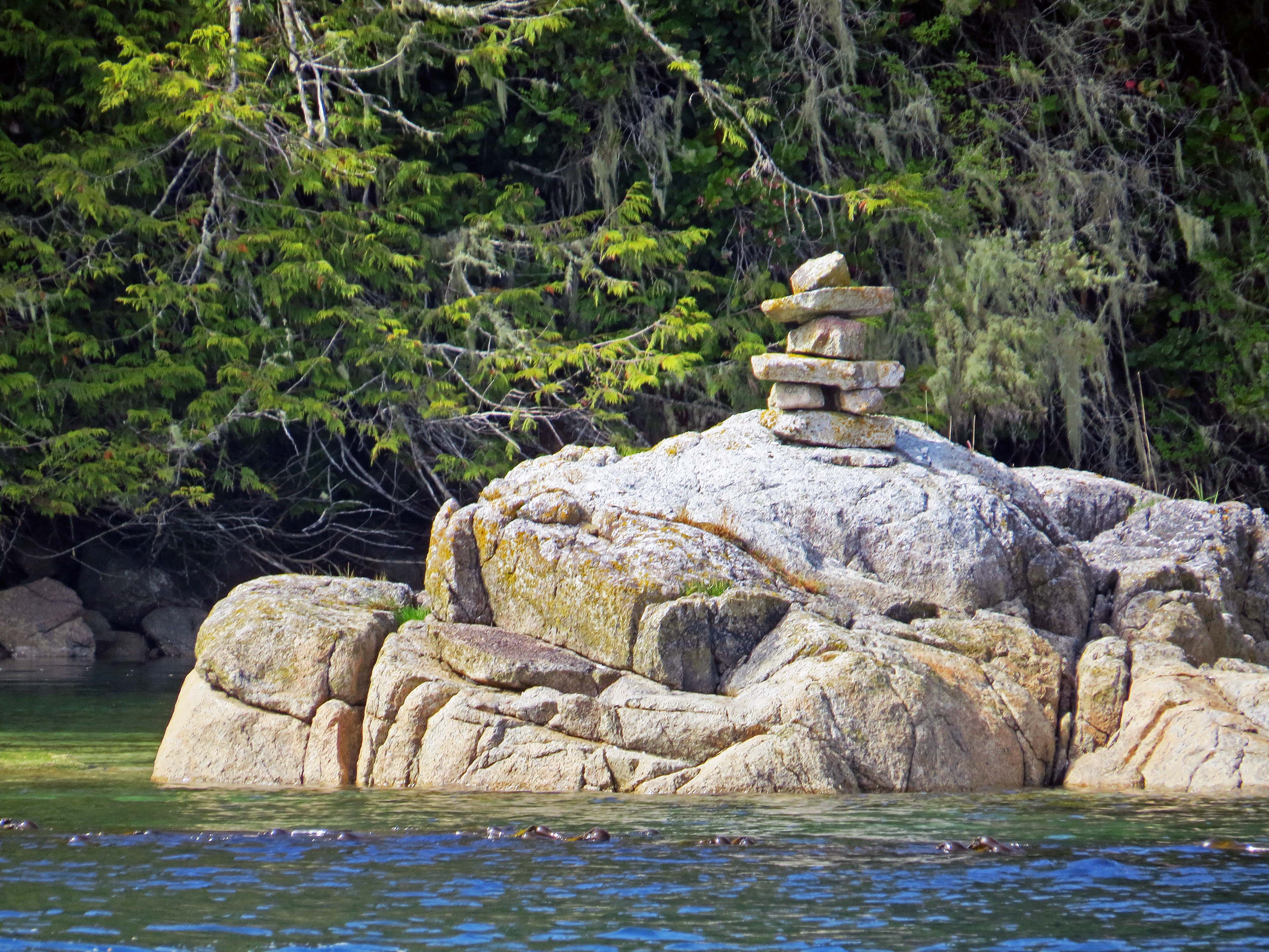 I noticed that the little stone man at the entrance to Booker Passage had moved to the other side of the channel. Now, how did he do that?