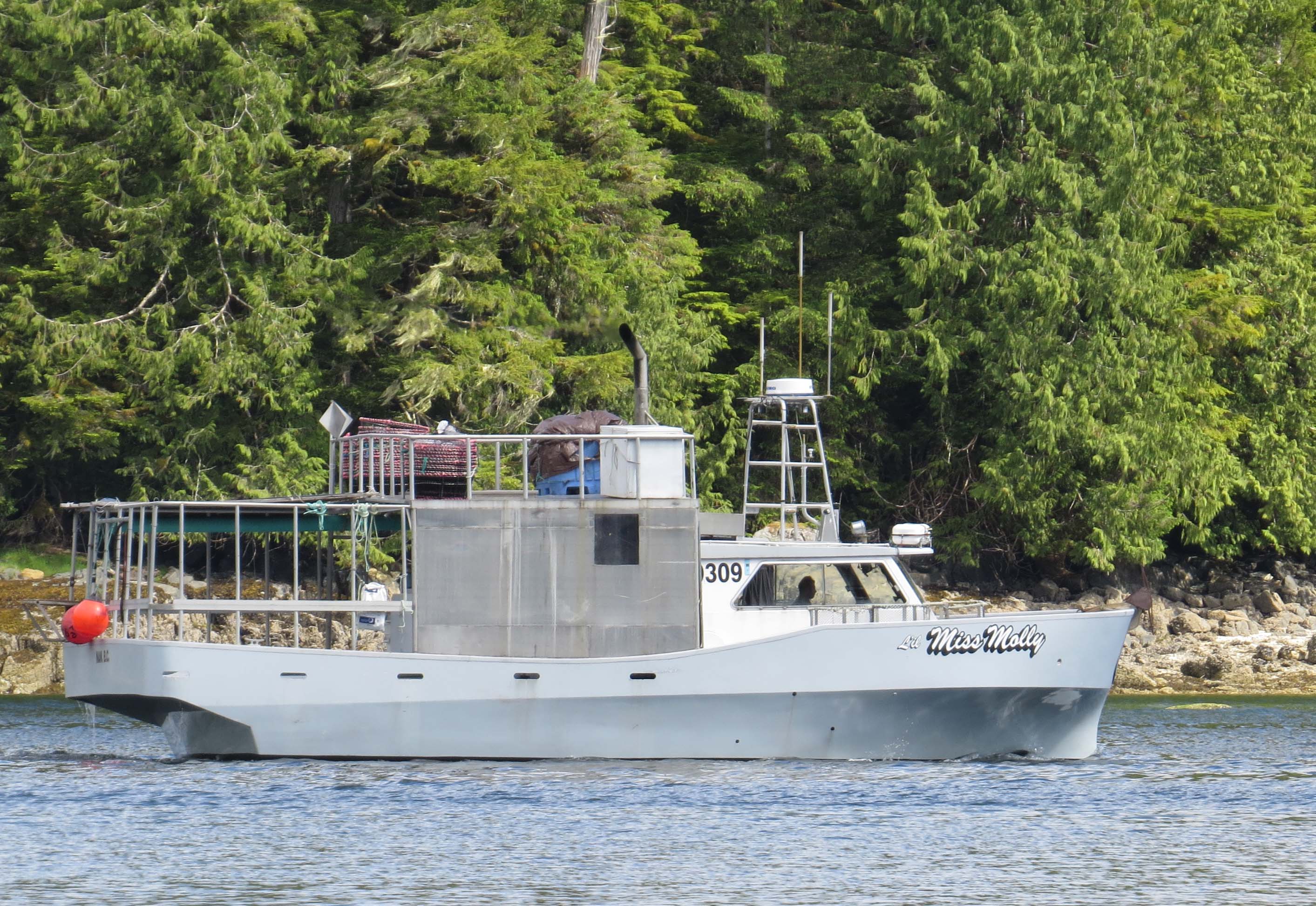 A commercial prawner, named Miss Molly, came in to anchor for the night. I noticed he set a crab trap nearby. I guess he wants crab for dinner.