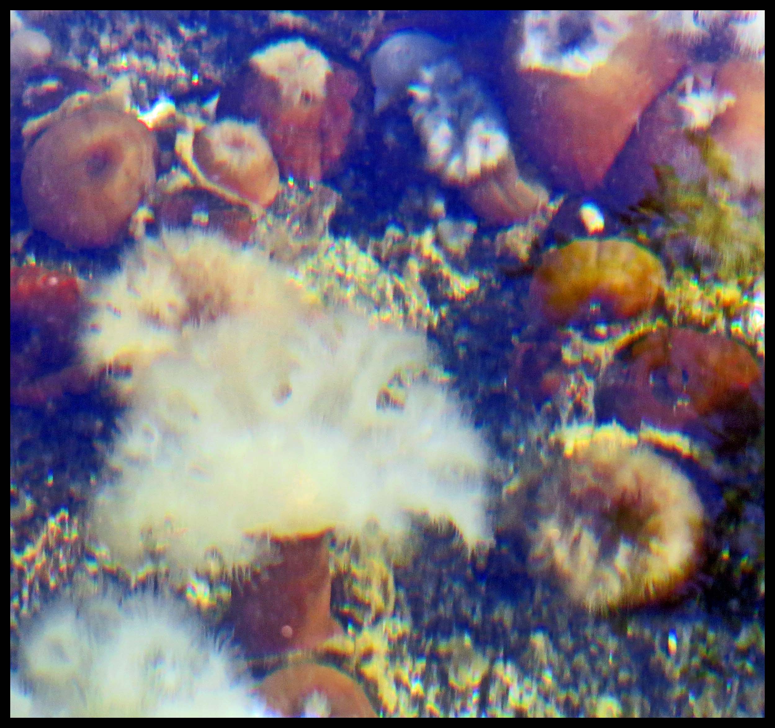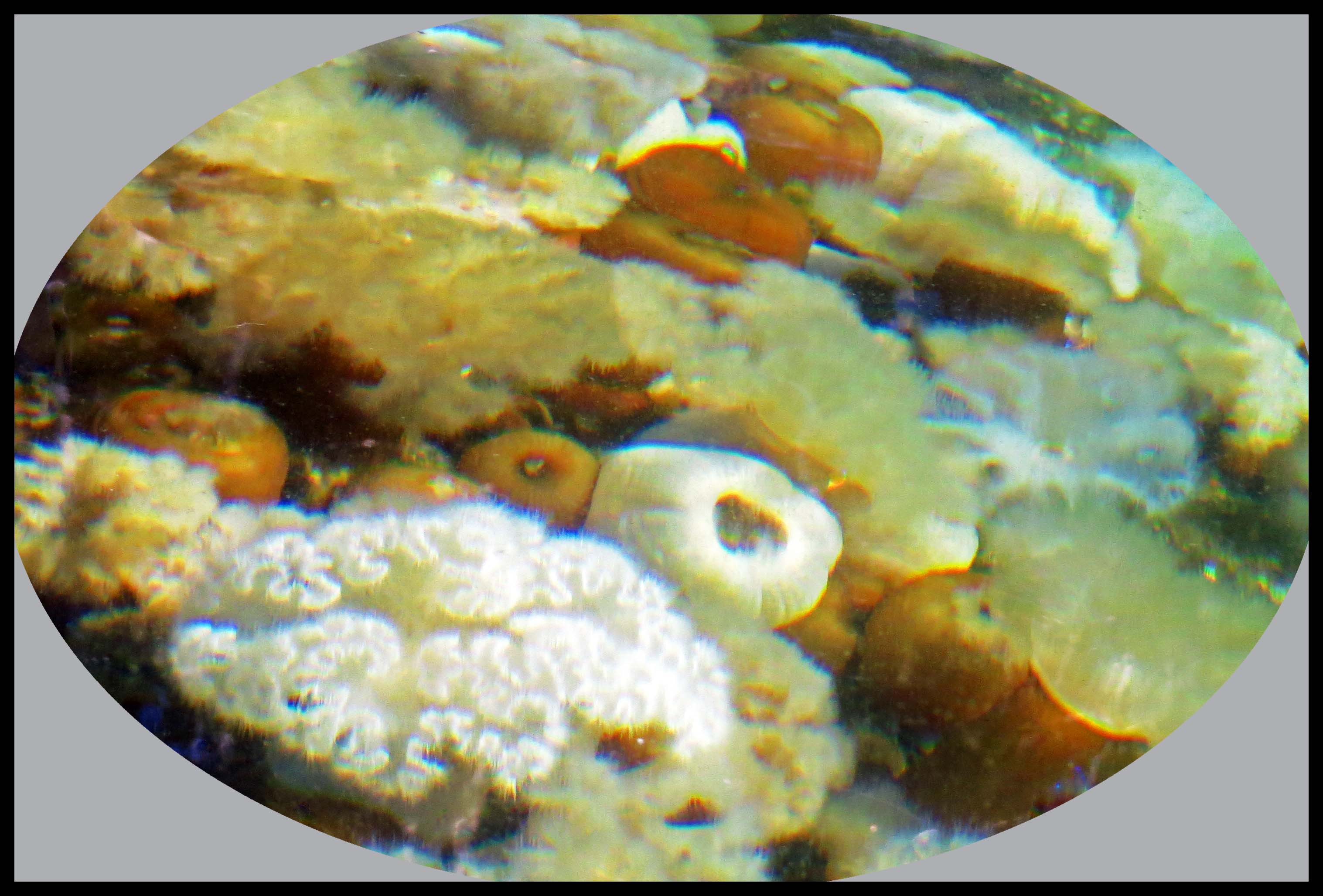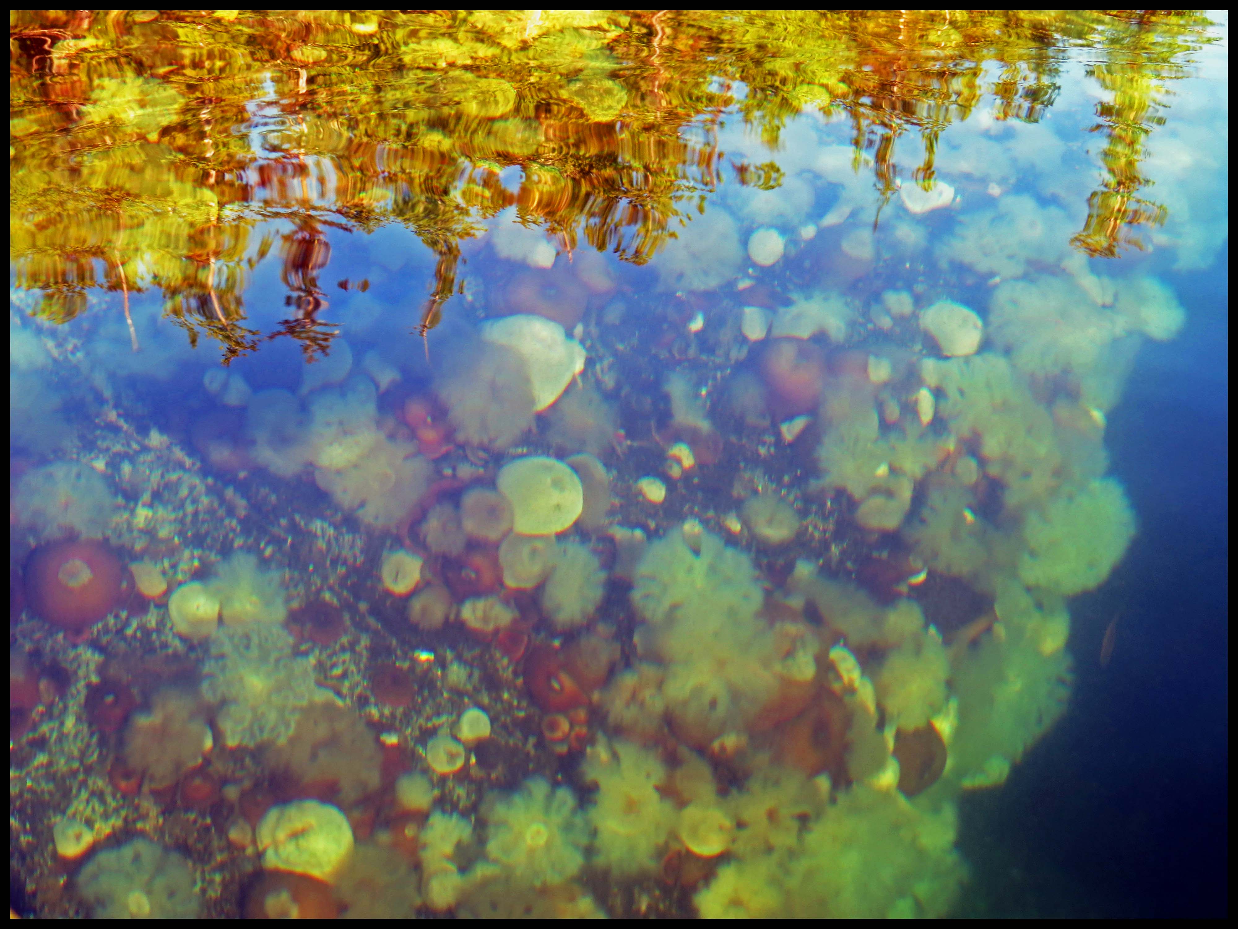 Just inside the entrance, I spotted a huge rounded rock, about twice the size of a couple of Volkwagens, that was just a foot below the surface of the water. It was covered with anemones.