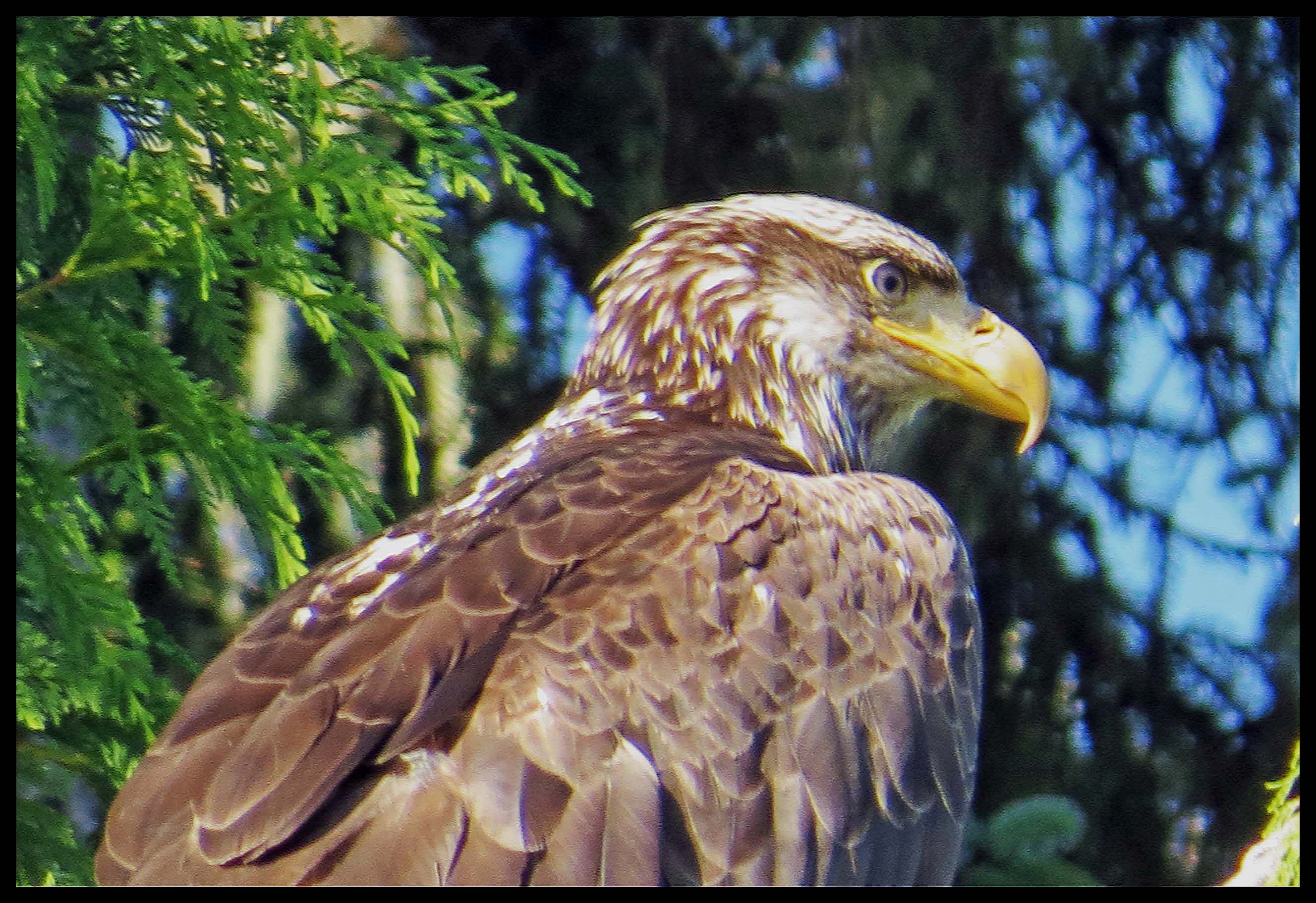 It was a bit disappointing. I was hoping for something a little more interesting, when an immature eagle flew overhead and landed in a nearby tree. I was only able to get one shot before he took flight again, but it was a dandy.