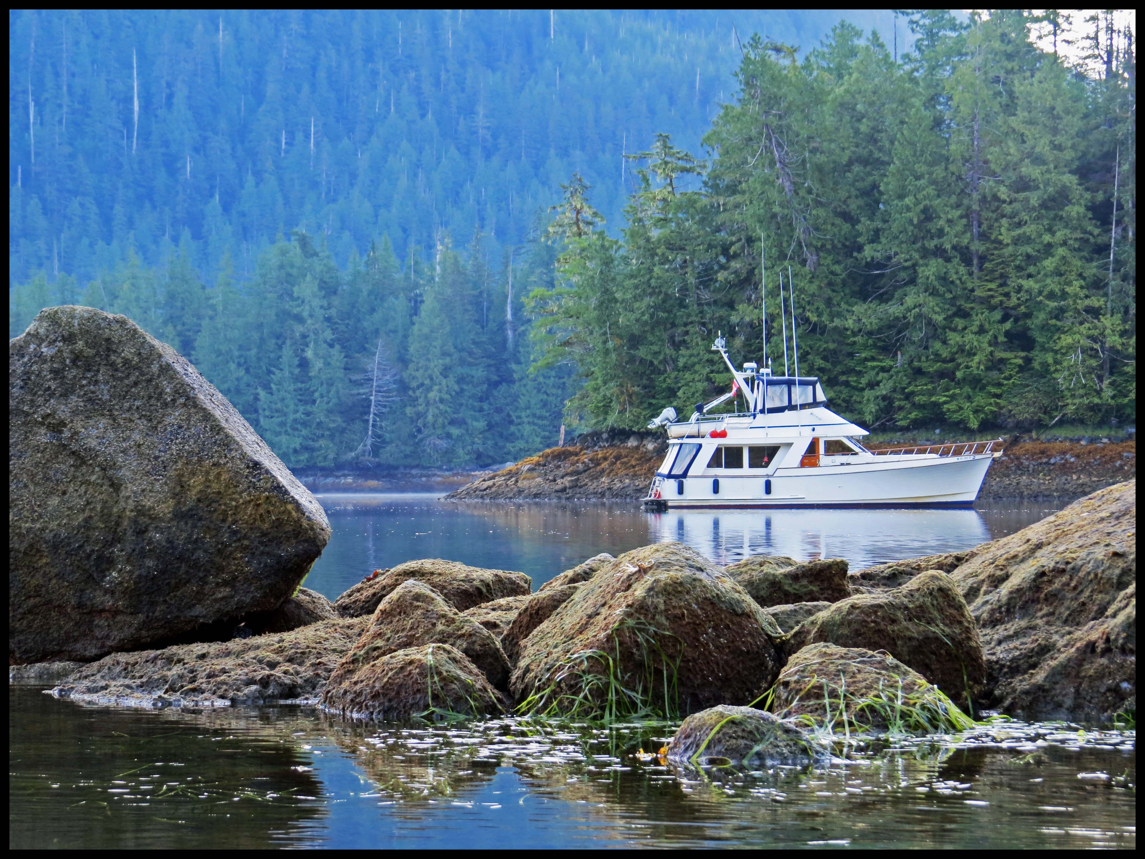 We have a big day ahead of us this morning. We’ll be heading to Shearwater to do our provisioning and fueling, and getting rid of our trash. When we leave Shearwater we won’t be in civilization again until Prince Rupert, some time after the first of August. So, we were up at 0600 hrs, hoping to be first in line for the fresh produce that arrived this morning.