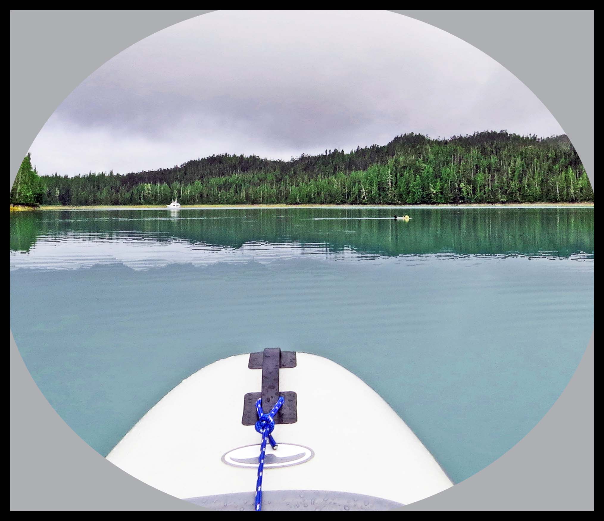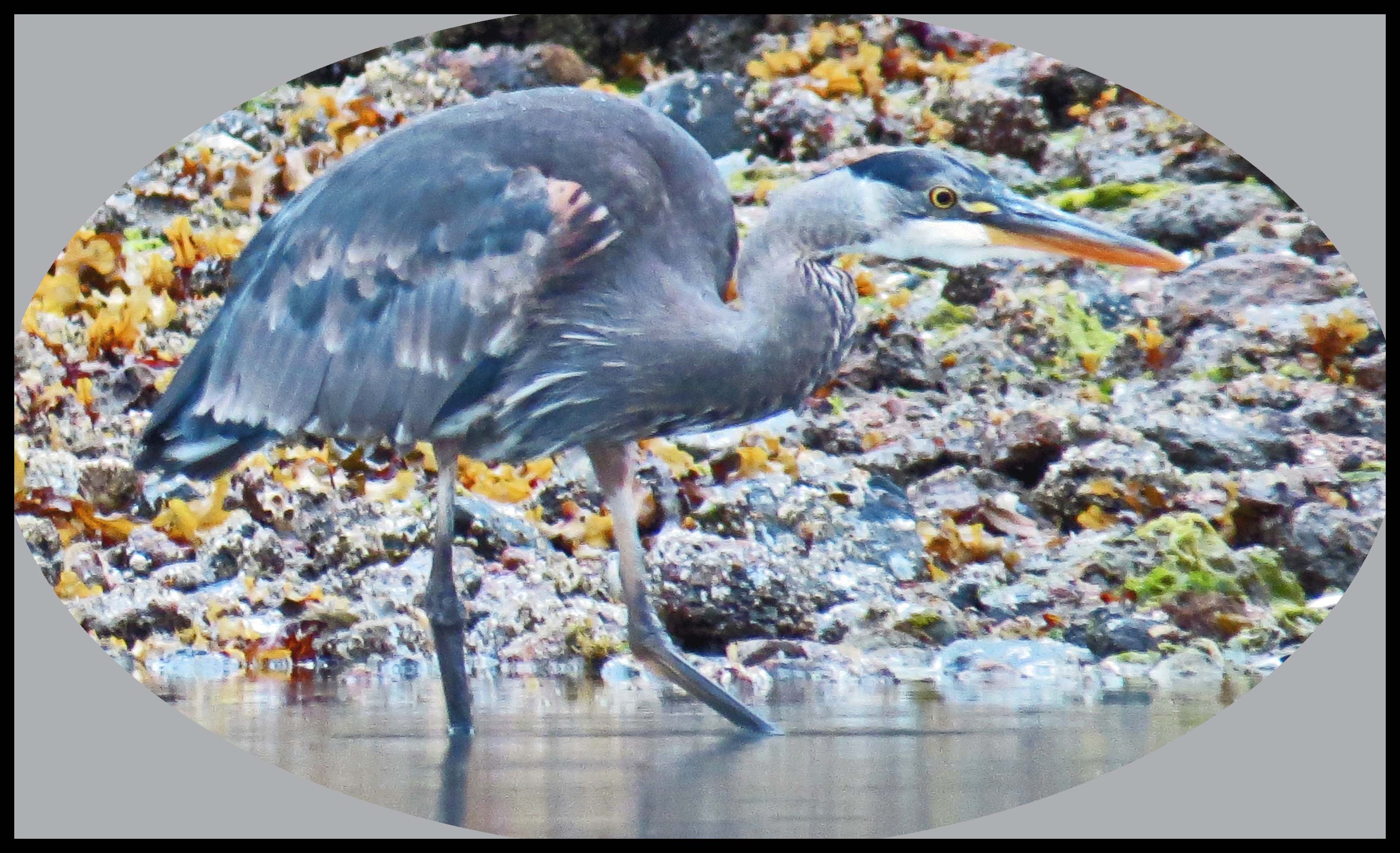 Looks like another rainy day. Rain or no rain, I’m out paddling by 0630 hrs. This morning I’m concentrating on the north shore. I’d spotted a Blue Heron fishing nearby, and managed to get this one shot before it flew.