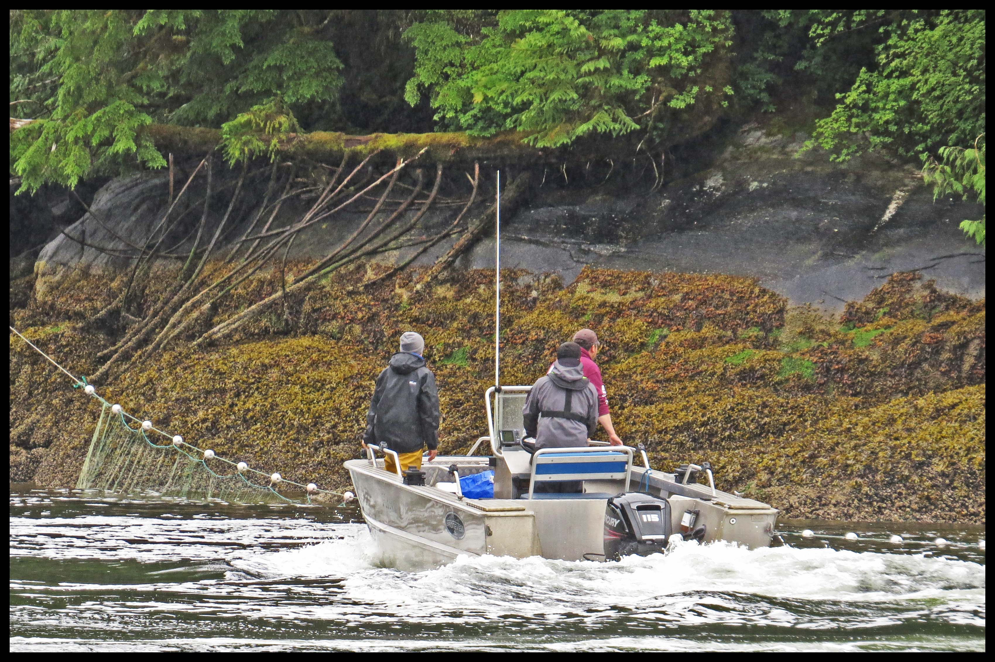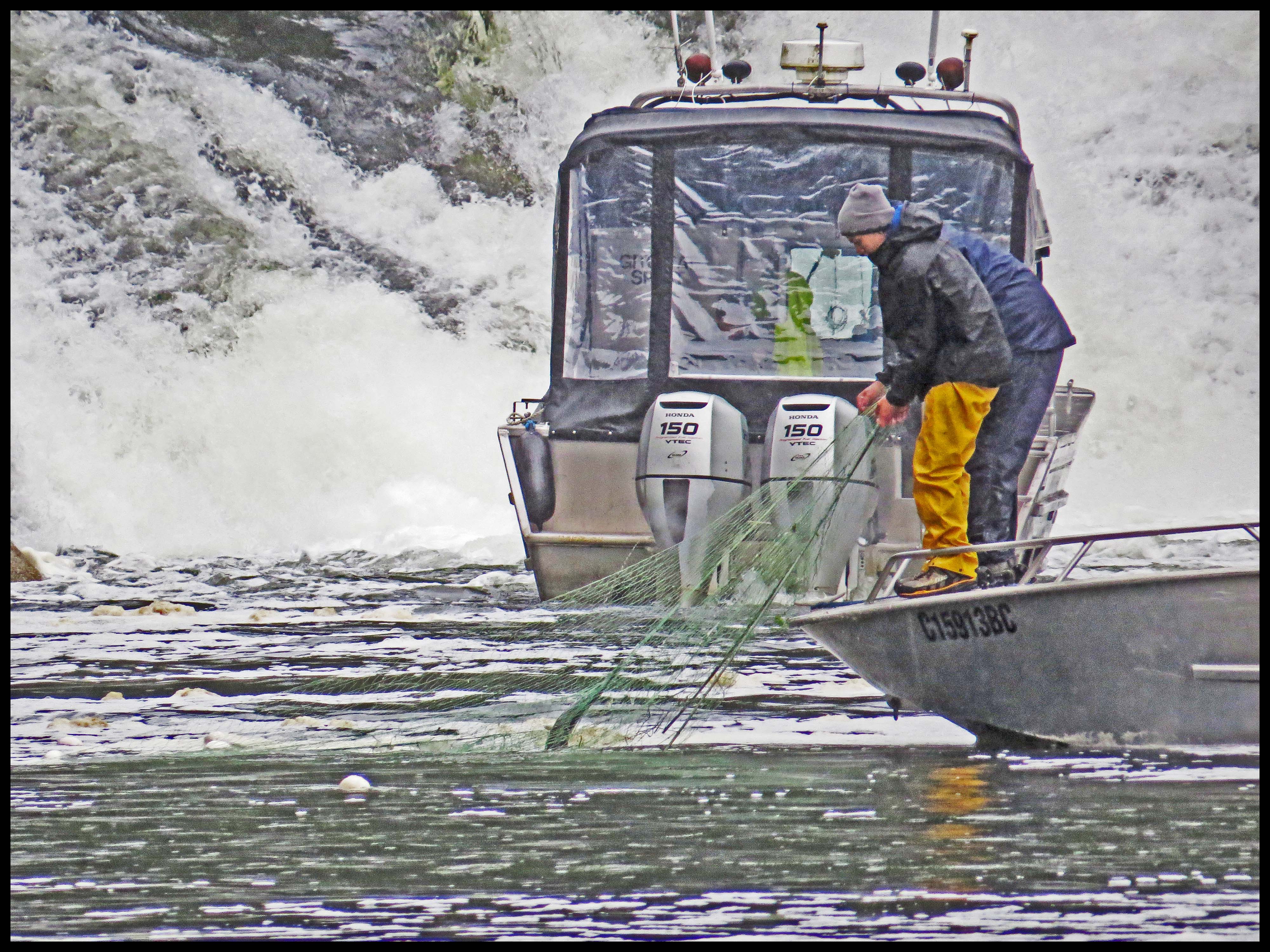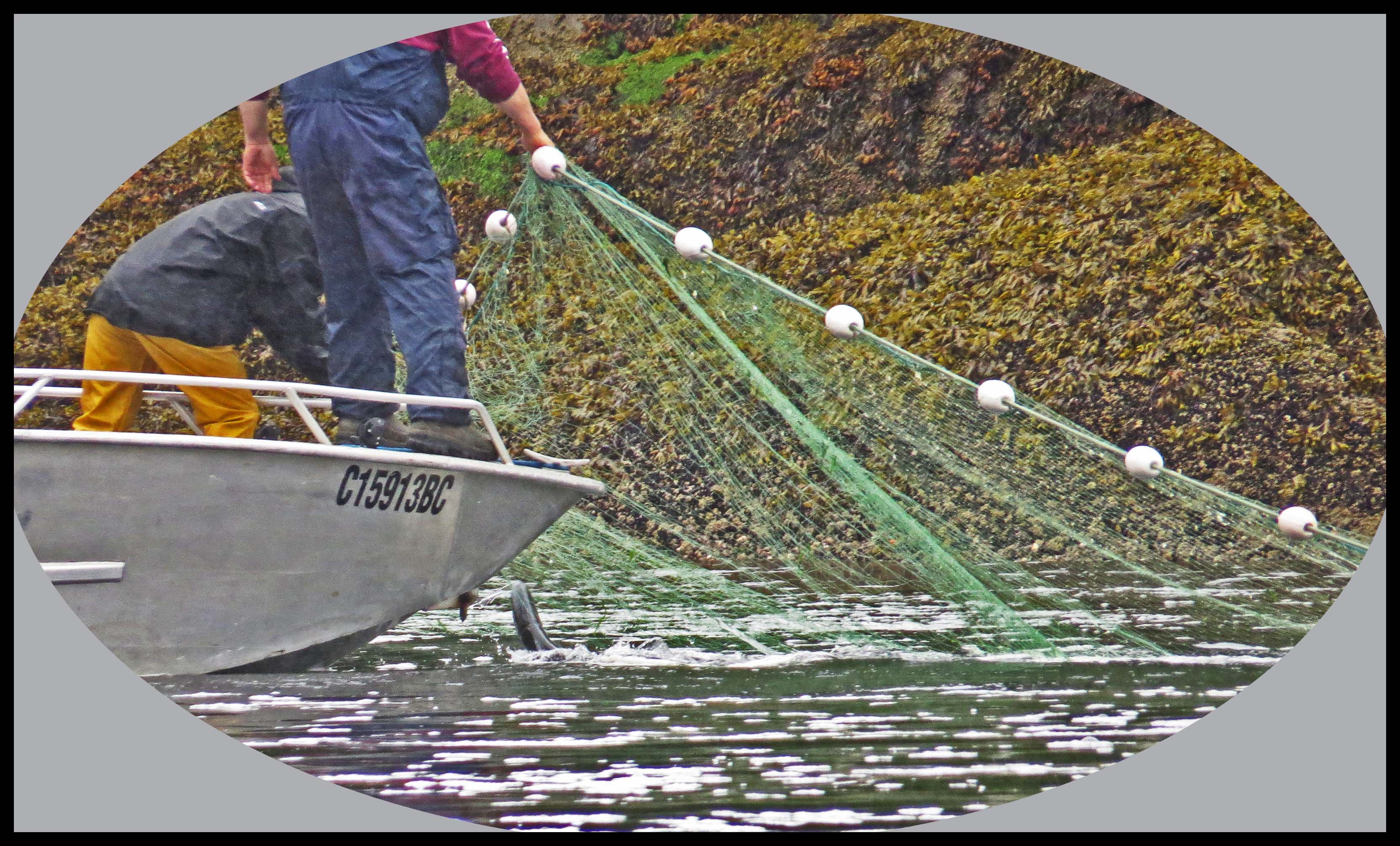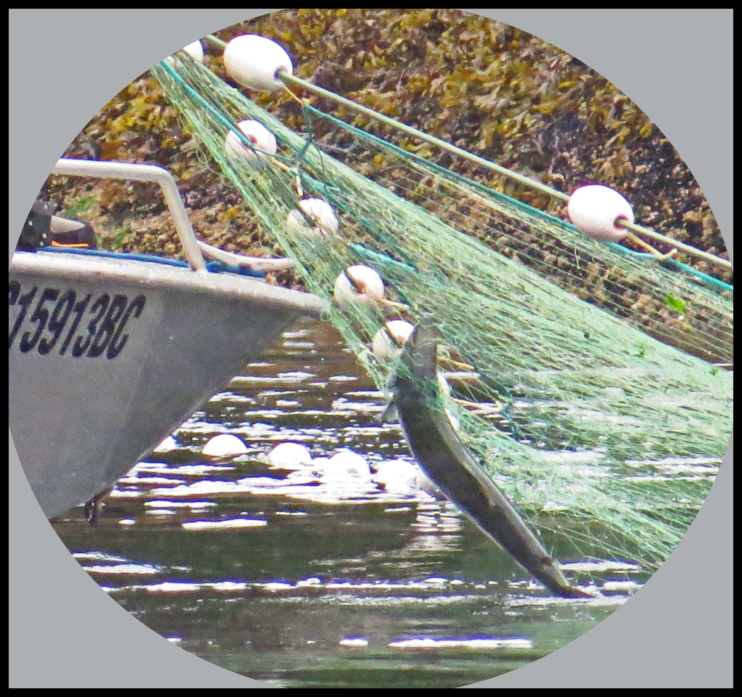 As soon as they had the net in position, they started rounding up the salmon with their tenders, racing back and forth, forcing the salmon into the nets, where their gills would become entangled in the net.