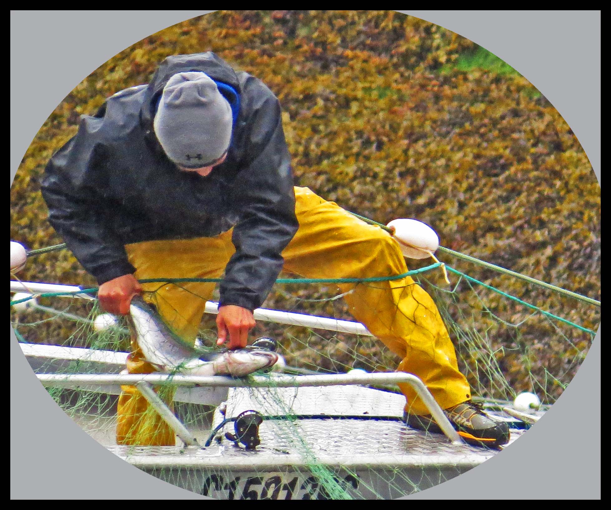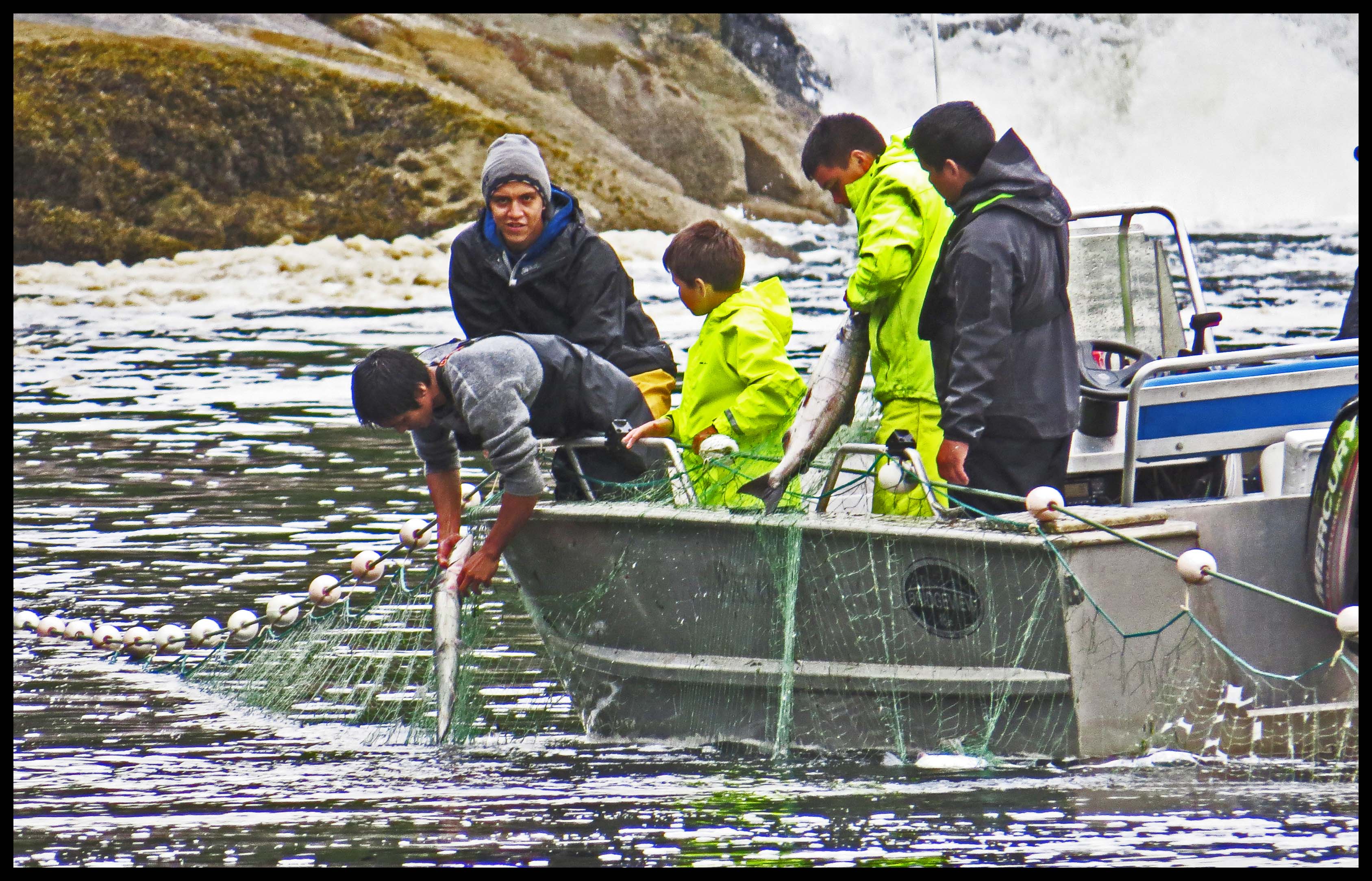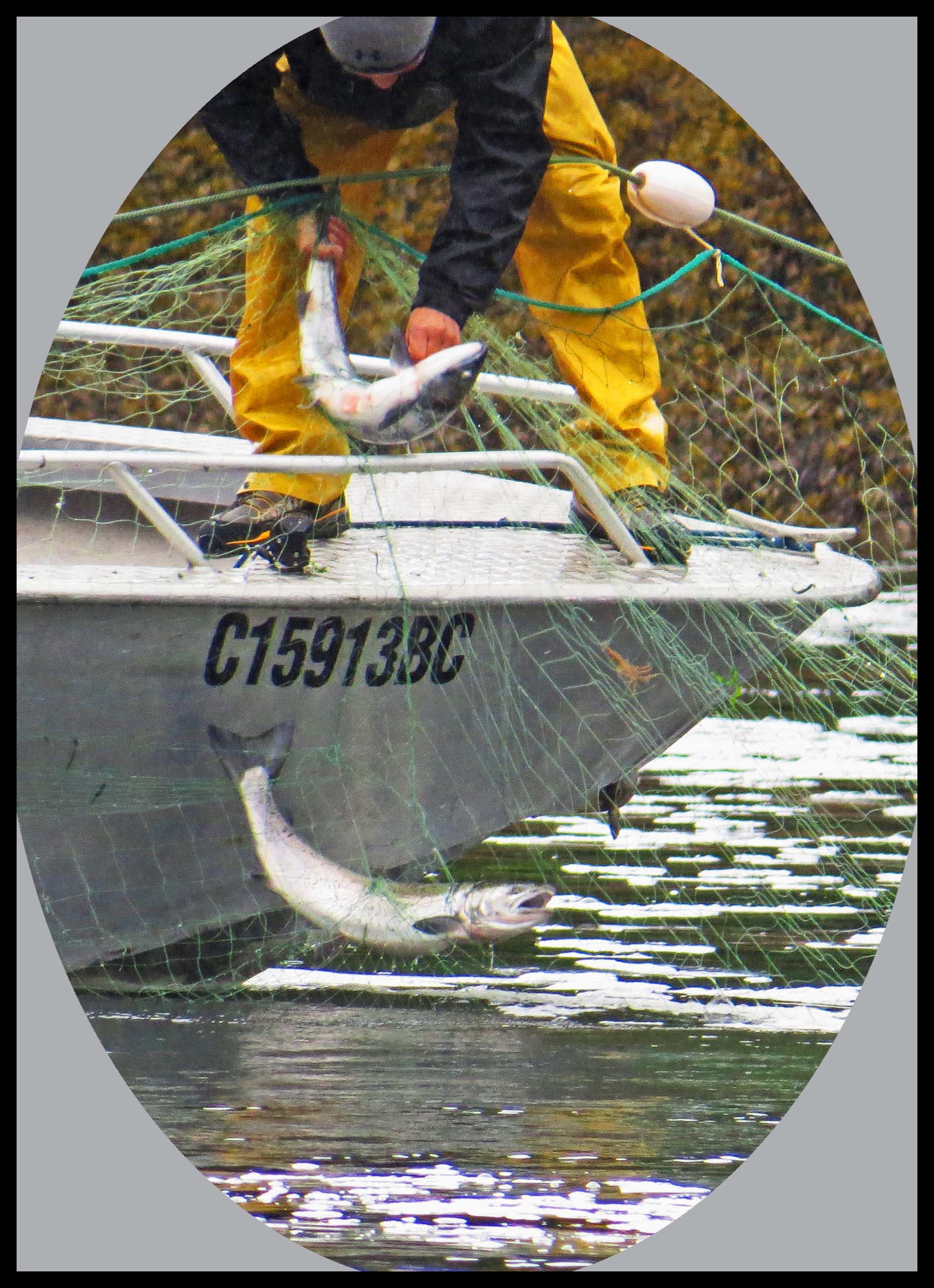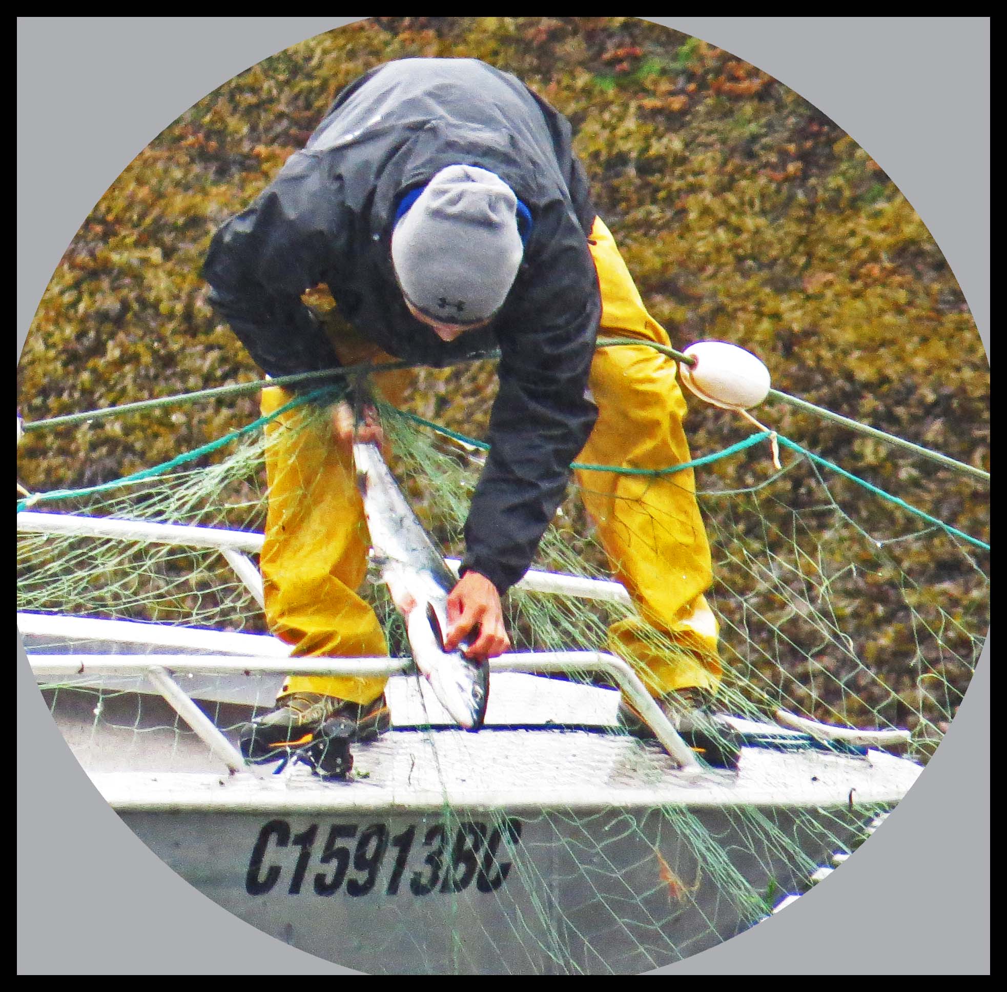 As soon as they had the net in position, they started rounding up the salmon with their tenders, racing back and forth, forcing the salmon into the nets, where their gills would become entangled in the net.