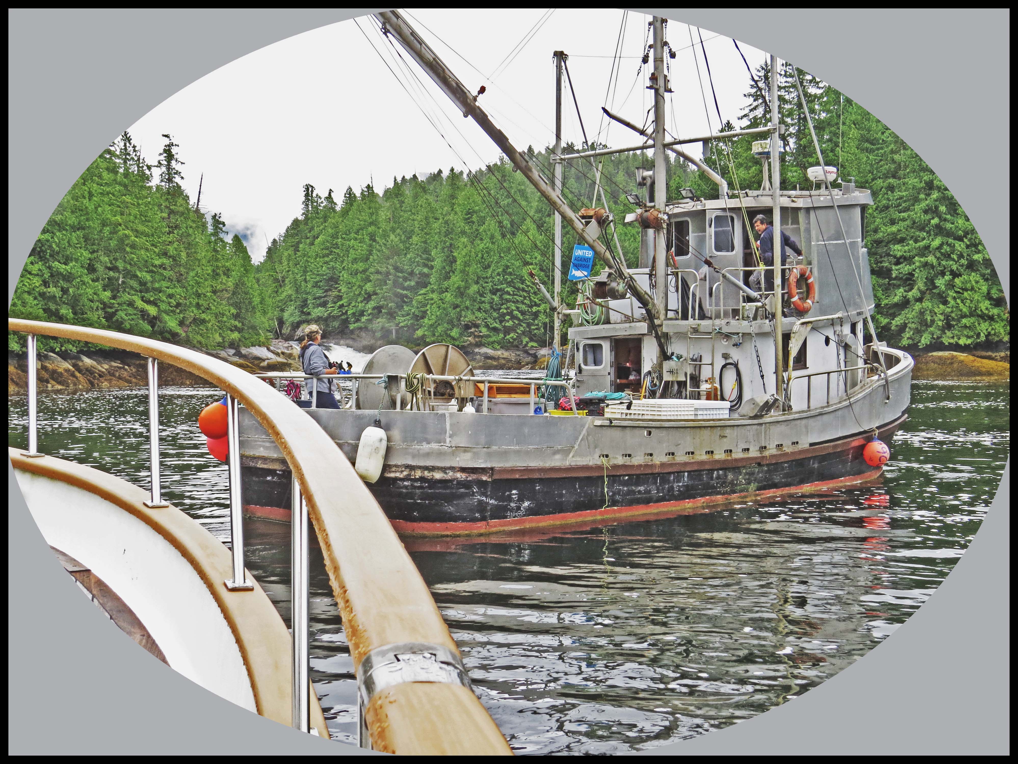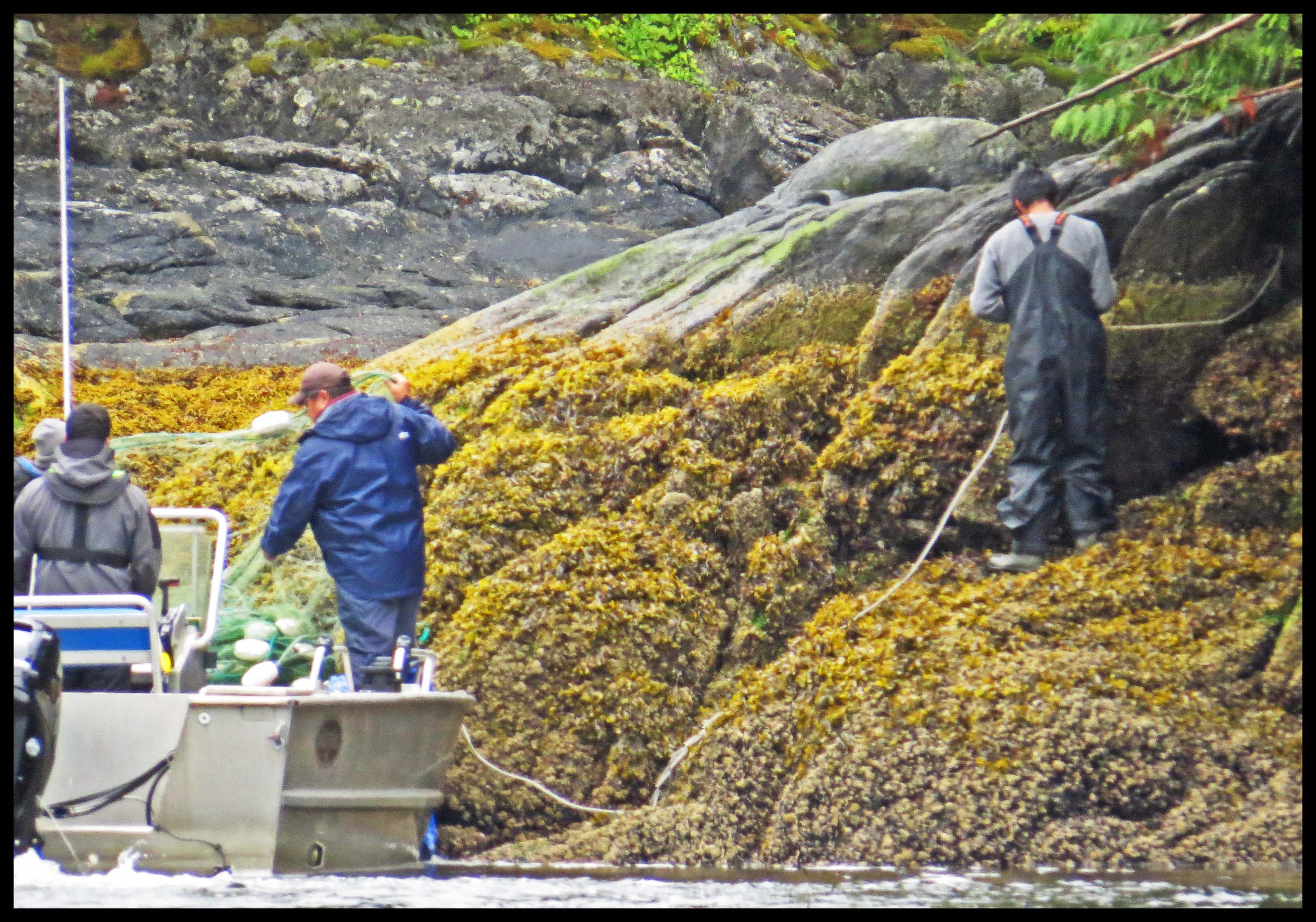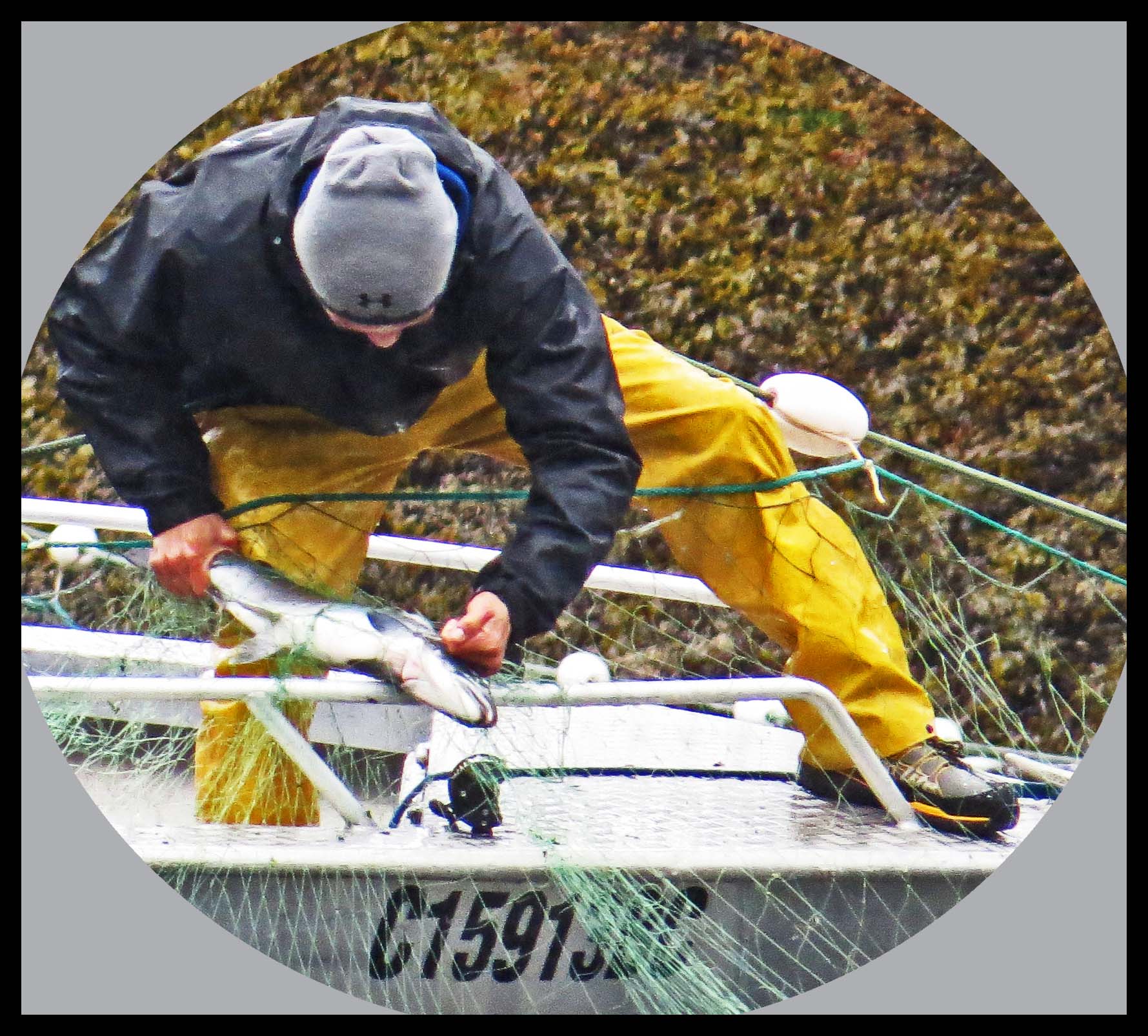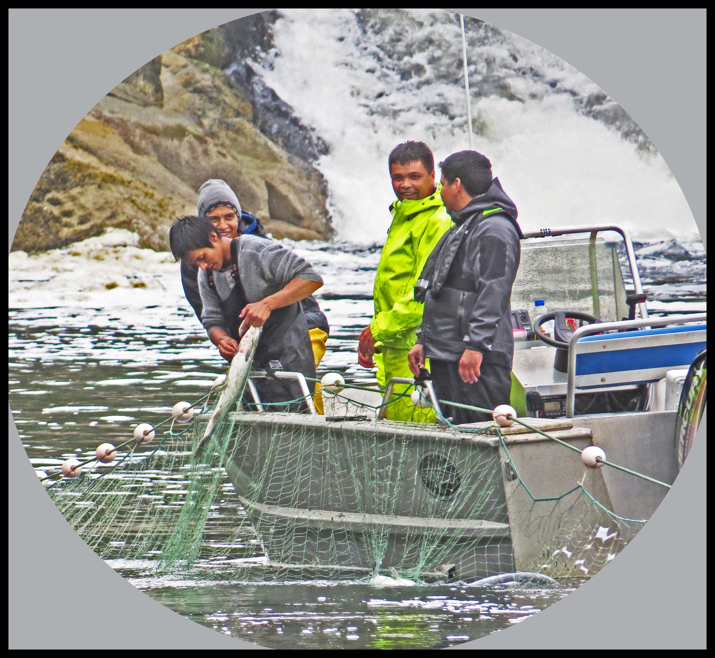 As soon as they had the net in position, they started rounding up the salmon with their tenders, racing back and forth, forcing the salmon into the nets, where their gills would become entangled in the net.