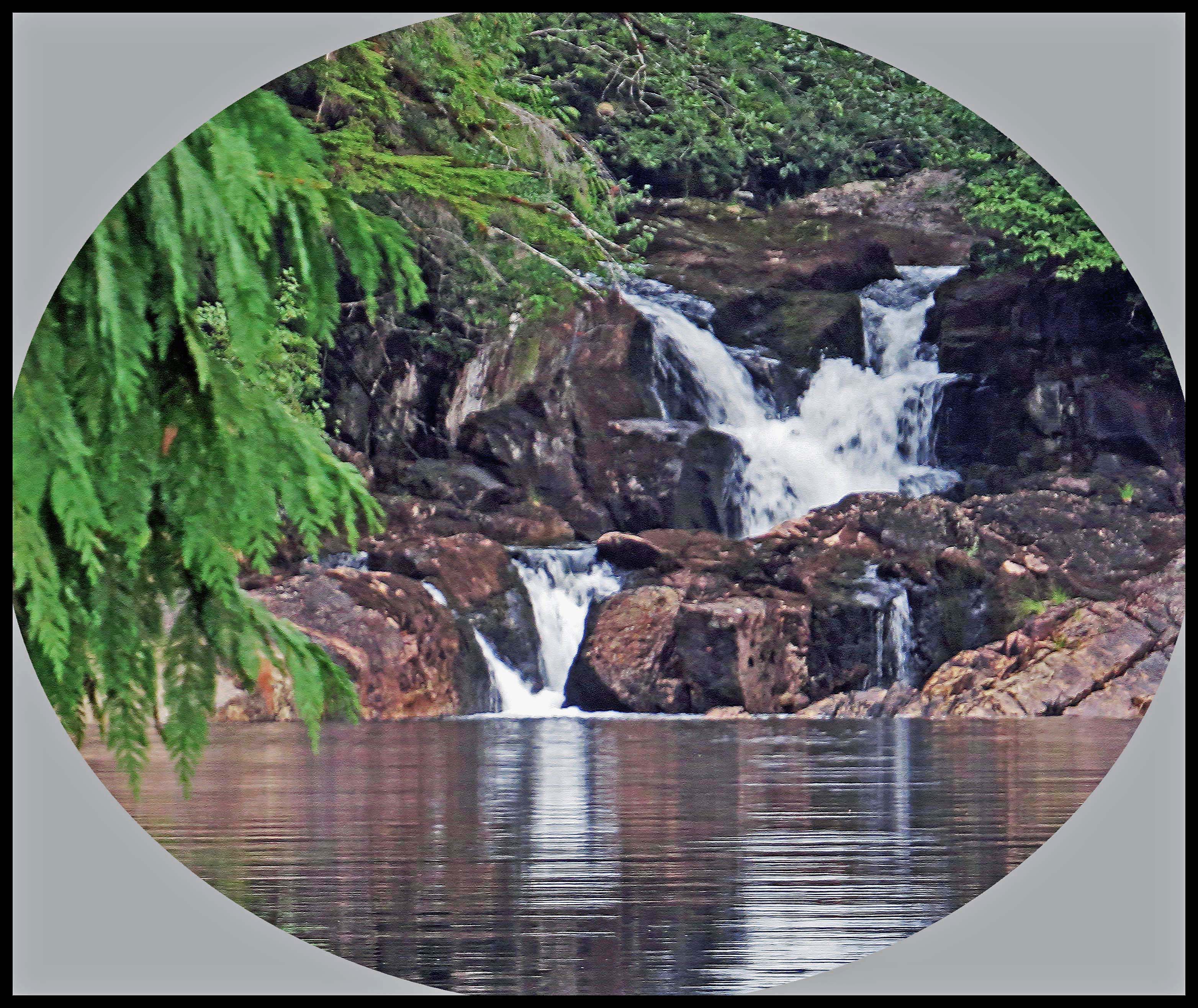My next stop was Ingram Falls, in Ingam Cove, 2 miles west of here. Ingram Cove has spectacular falls on Ingram Creek, with a logging road bridge above it. Unfortunately, the anchorage is too tenuous to stay overnight, which we learned the hard way many years ago.