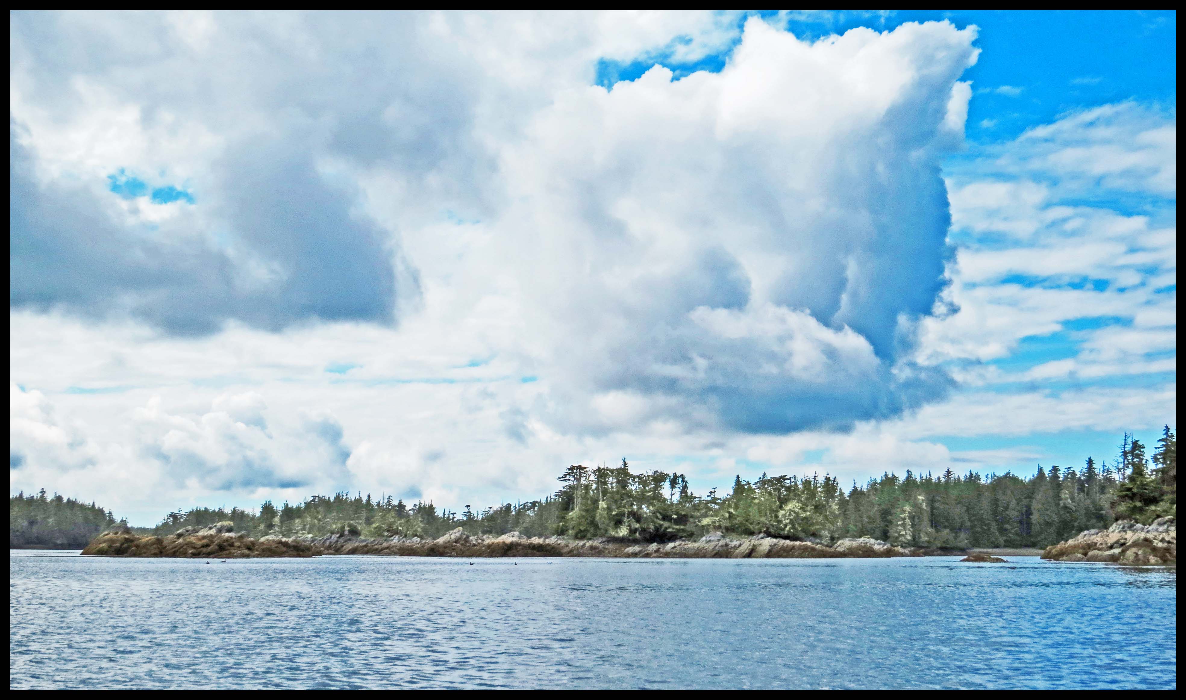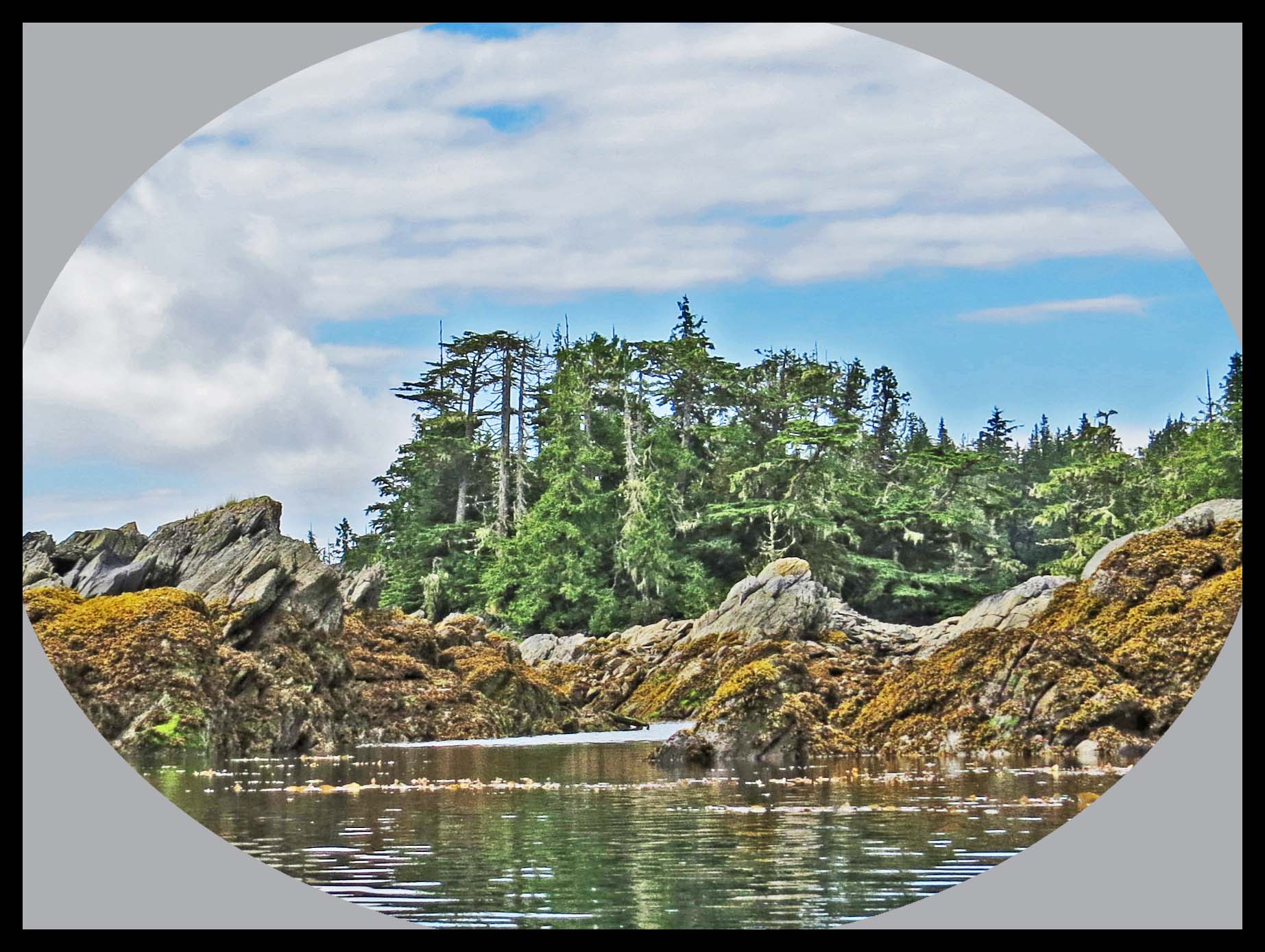 It’s raining this morning, but the wind has subsided. When the rain turned to sprinkles I decided to go for a paddle. Secret Cove, which is just around the point is on the open ocean. Since there wasn’t any wind to speak of, I decided to venture outside to check out Secret Cove.