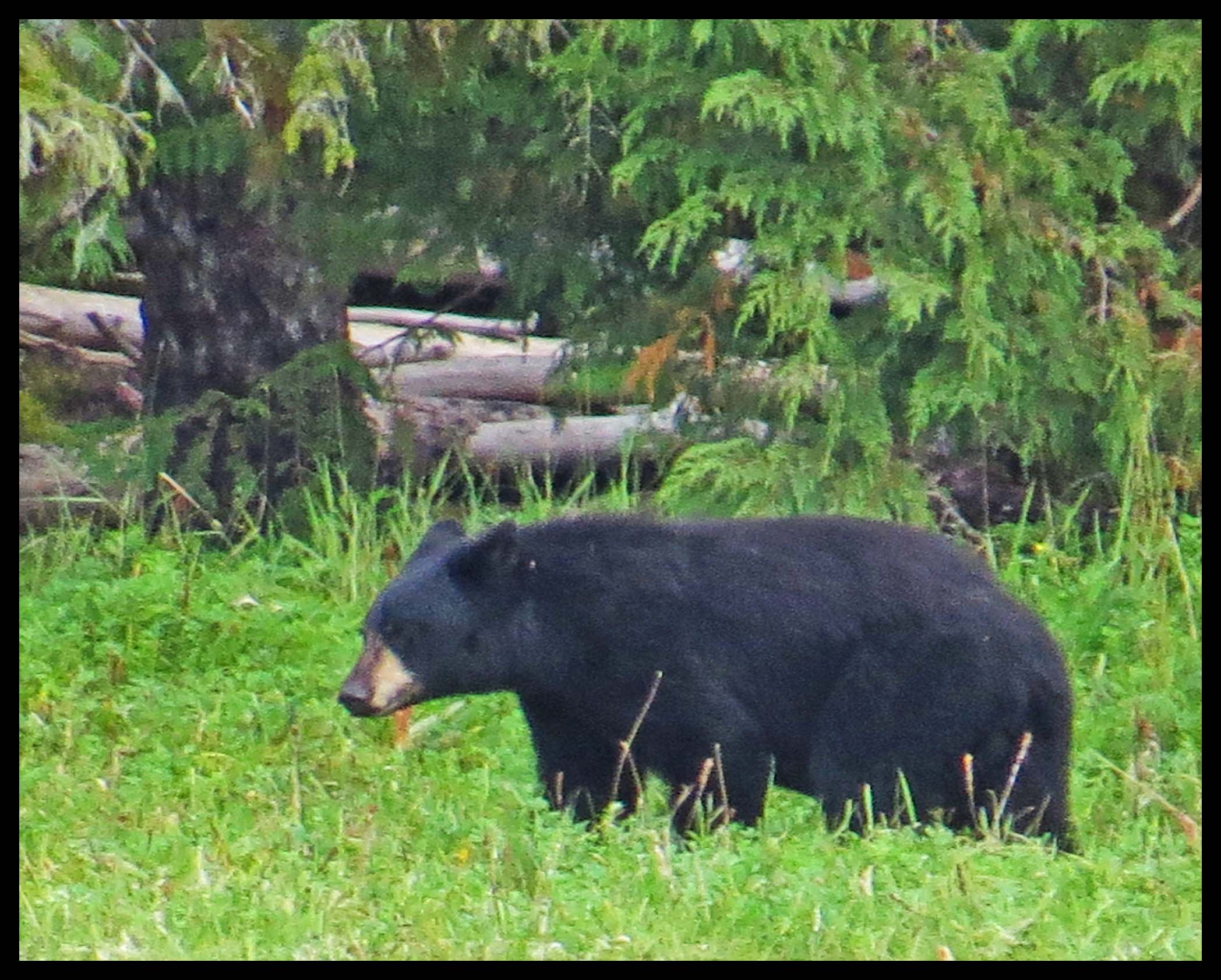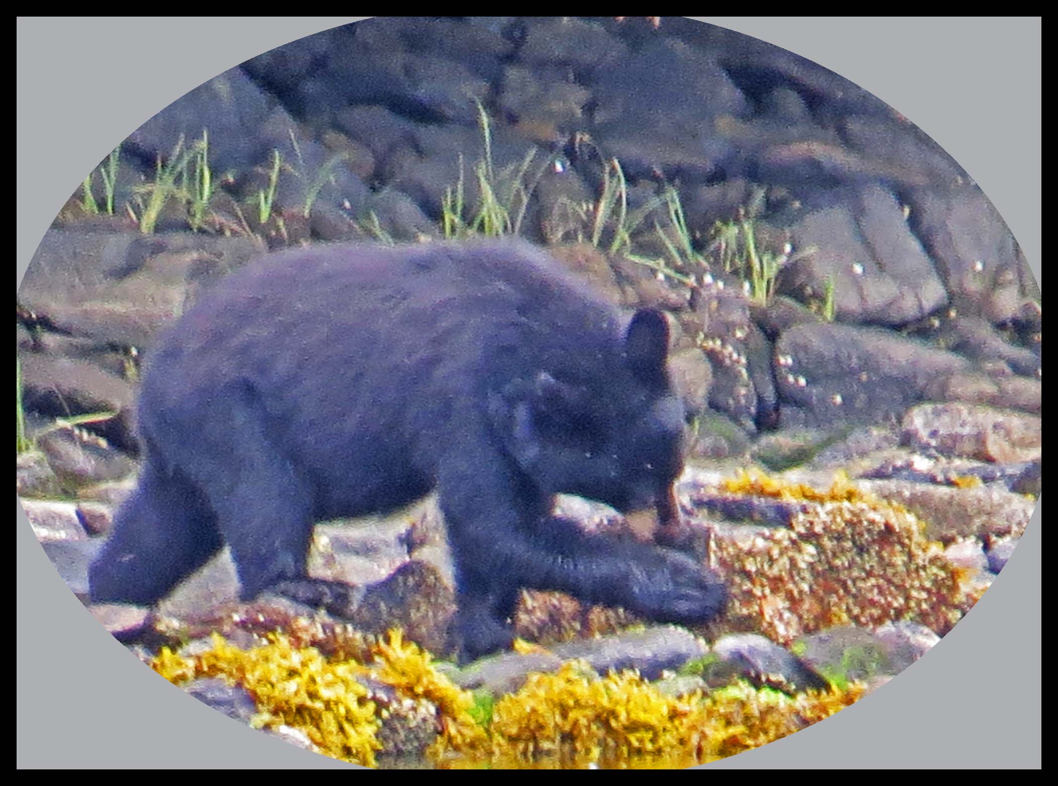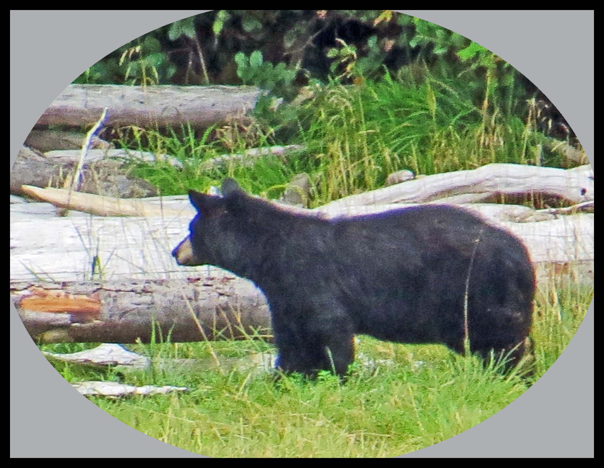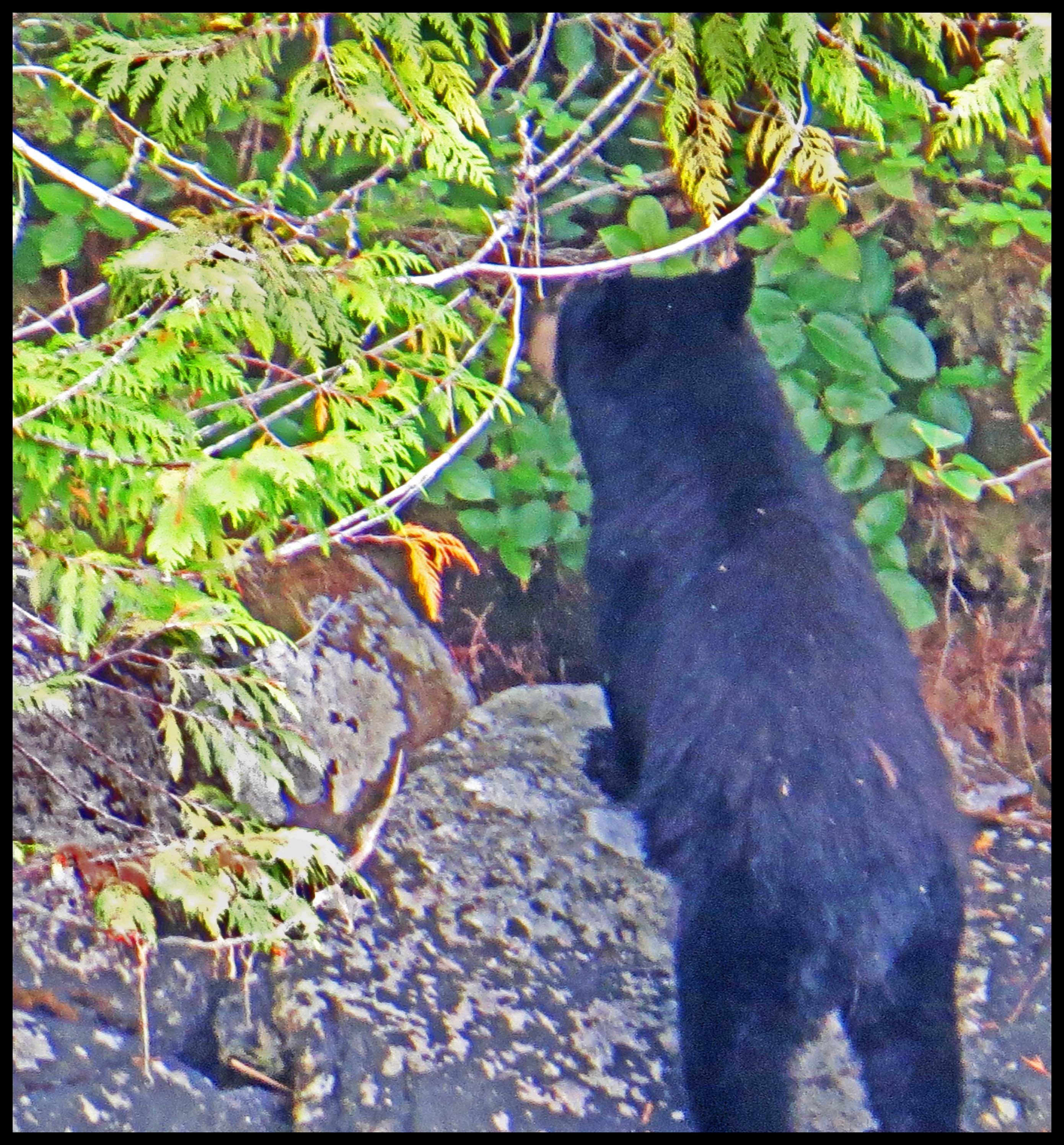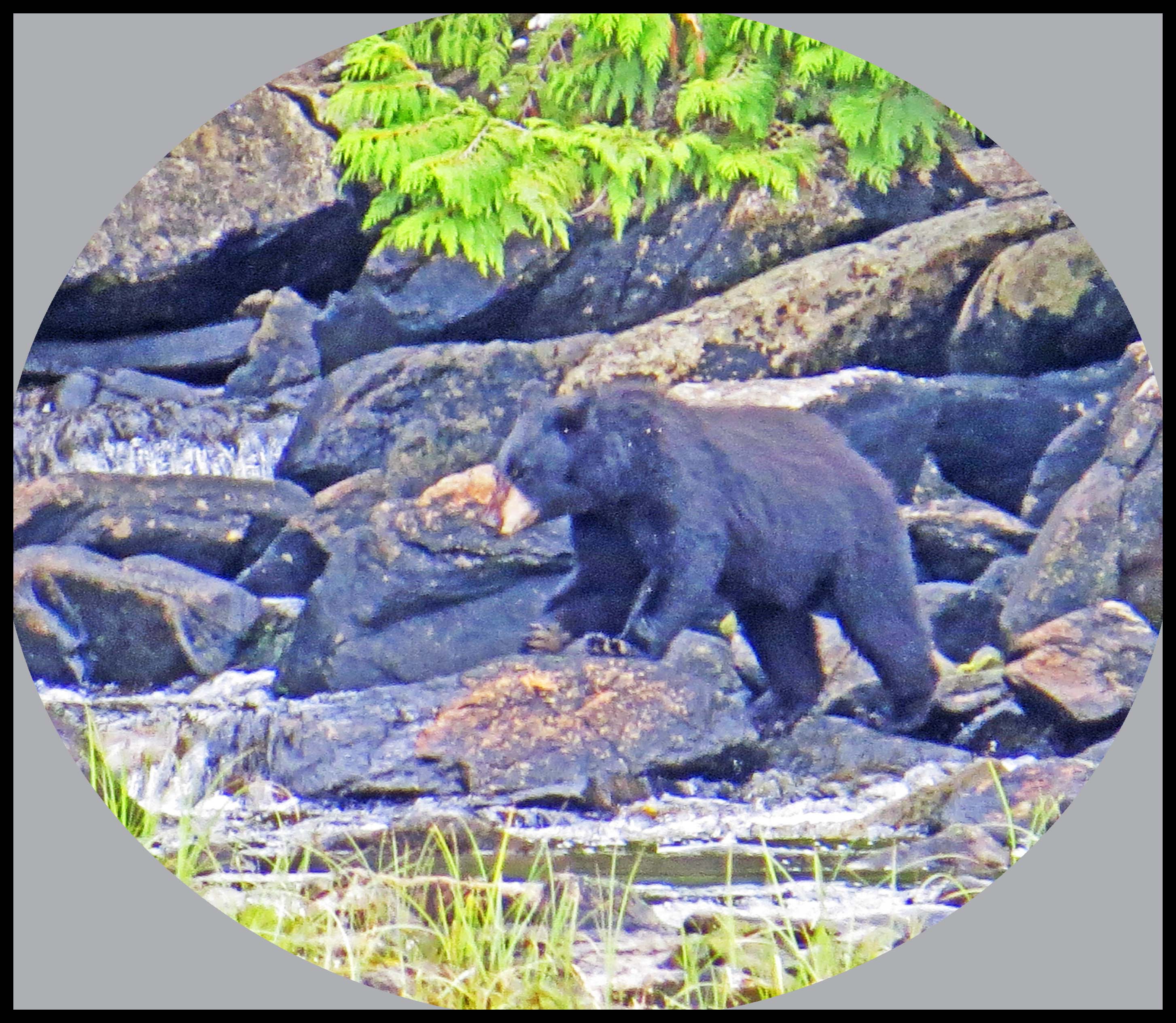 The Teal didn’t hang around long enough for more than this one photo. As I was deciding which way I wanted to paddle, I noticed something dark on shore. I figured it was just a dark rock, until it moved. Turned out it was a young bear foraging for whatever he could find to eat.