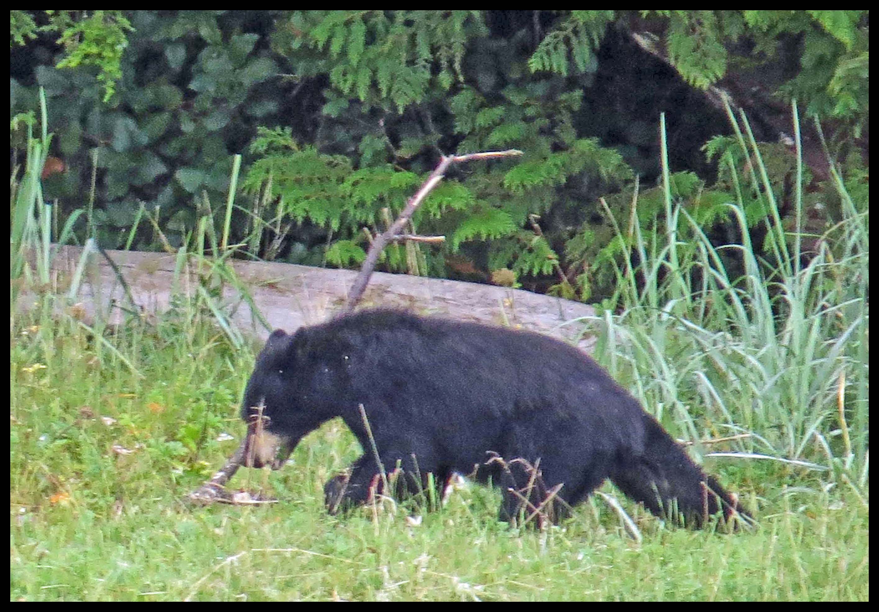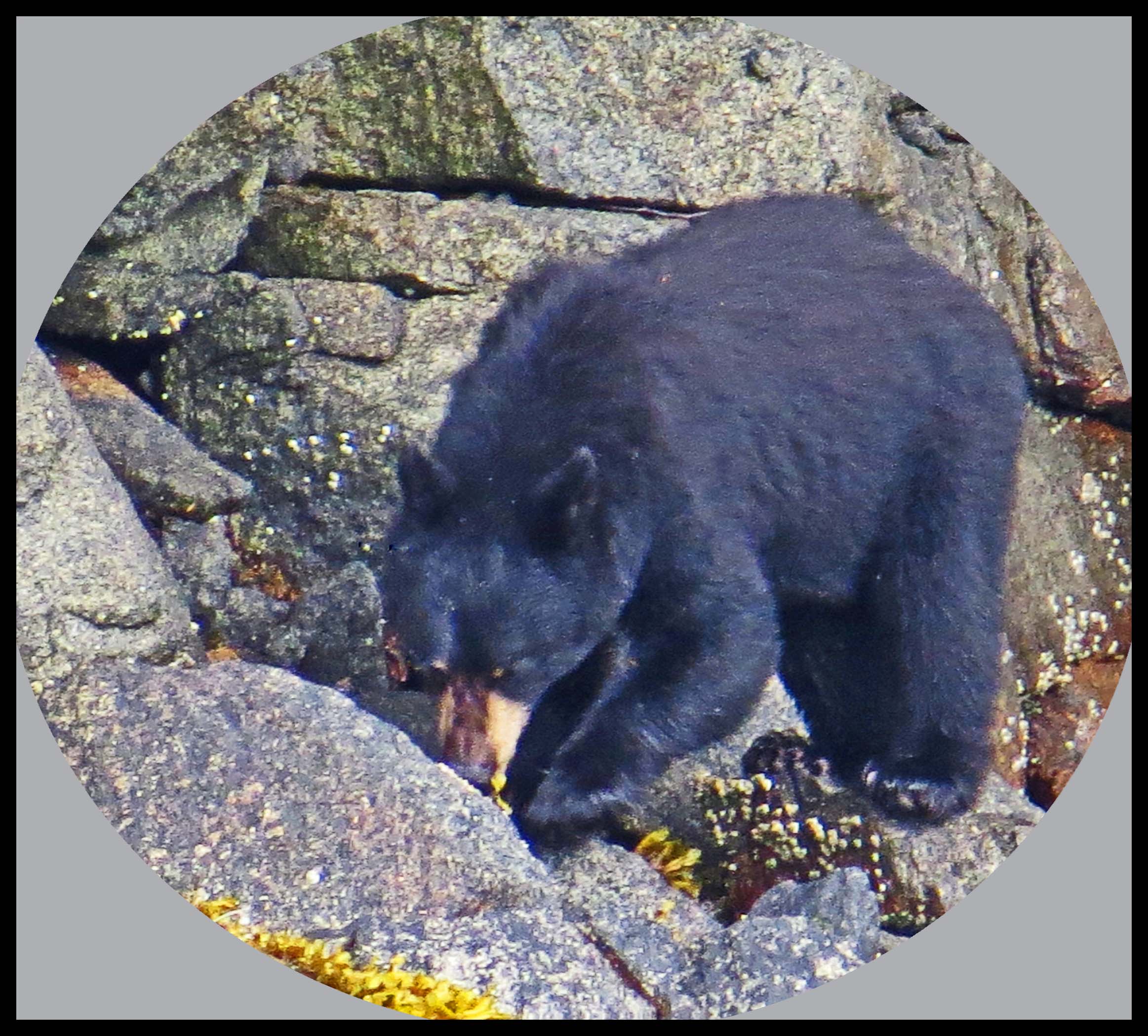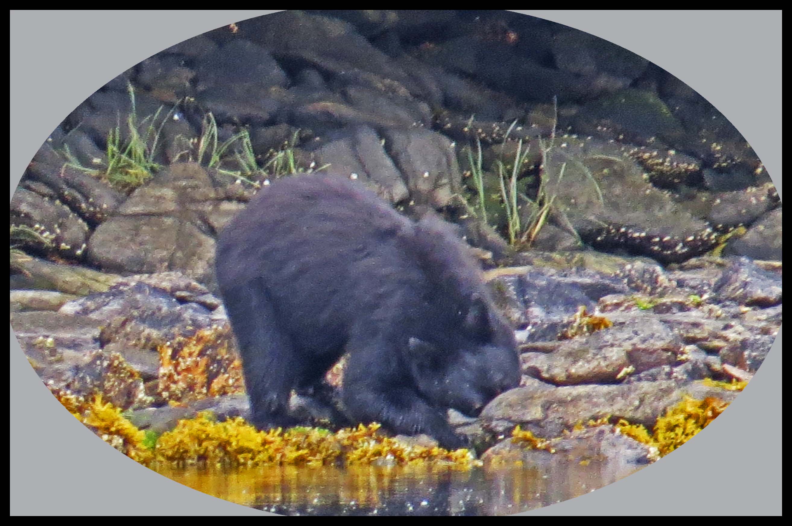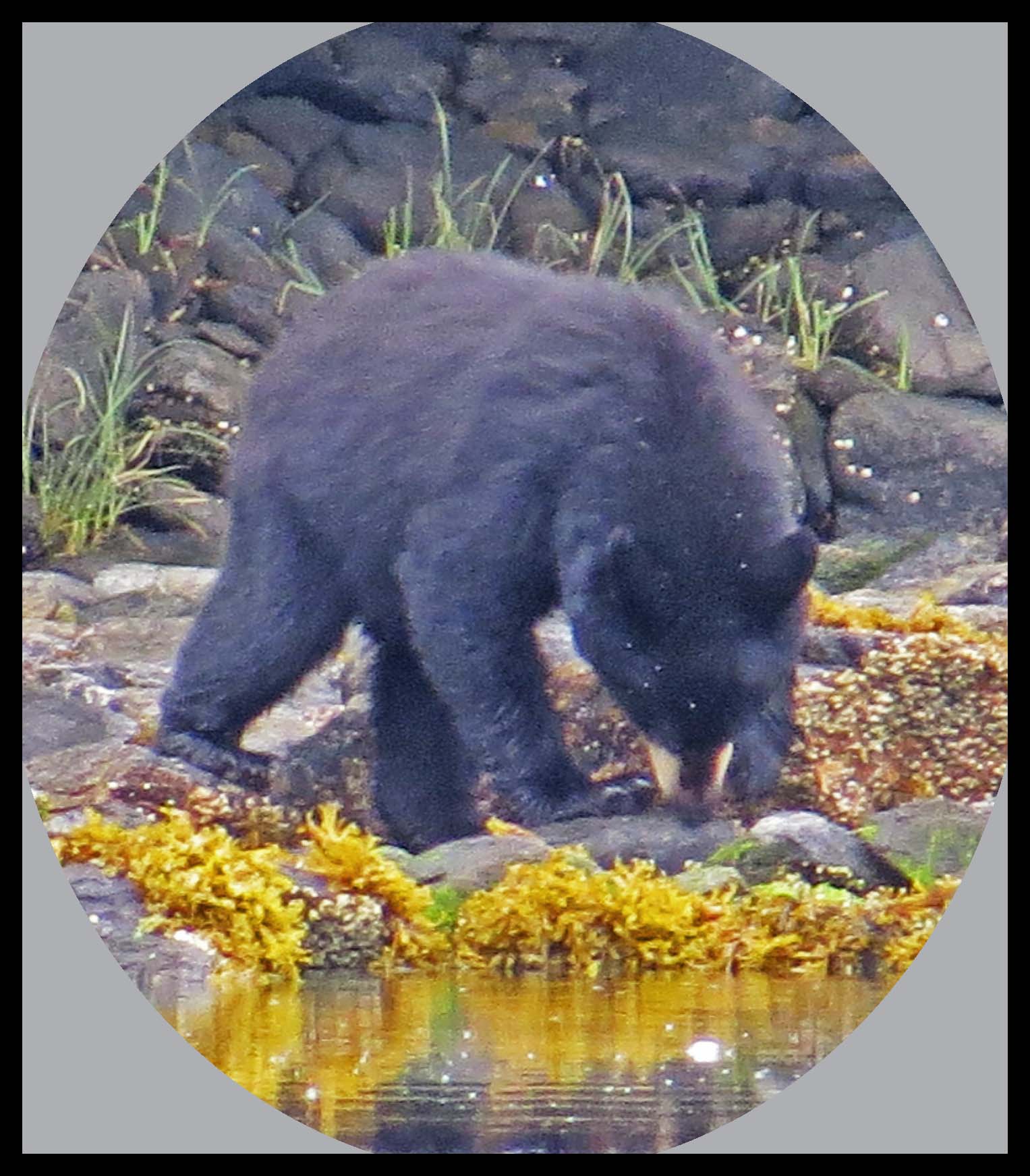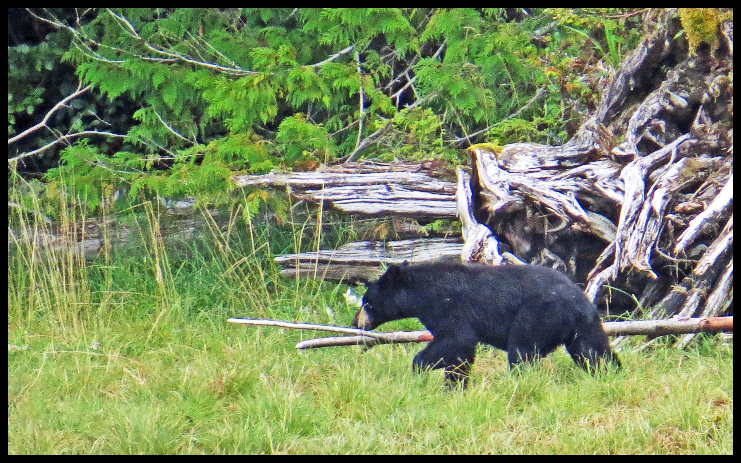 The Teal didn’t hang around long enough for more than this one photo. As I was deciding which way I wanted to paddle, I noticed something dark on shore. I figured it was just a dark rock, until it moved. Turned out it was a young bear foraging for whatever he could find to eat.