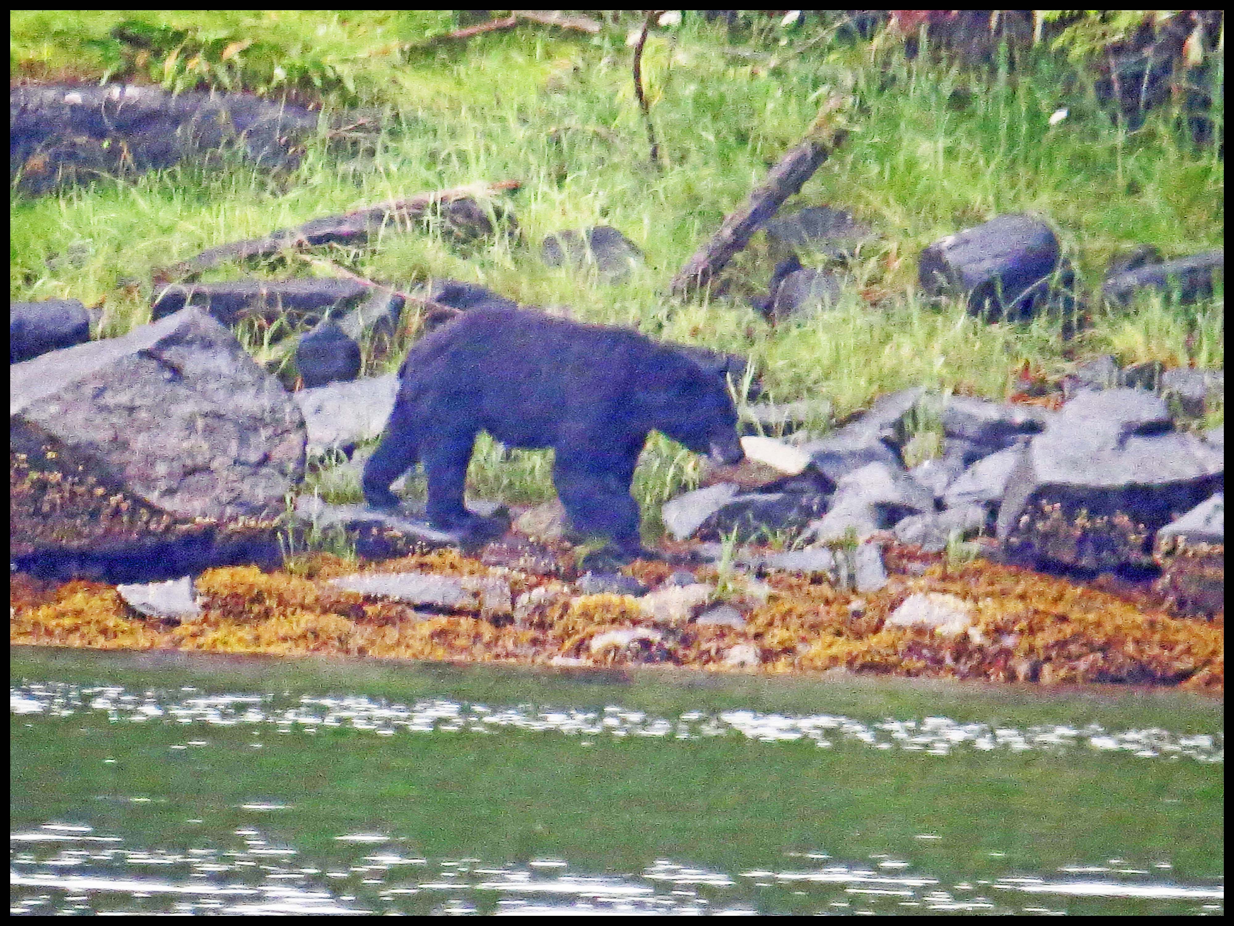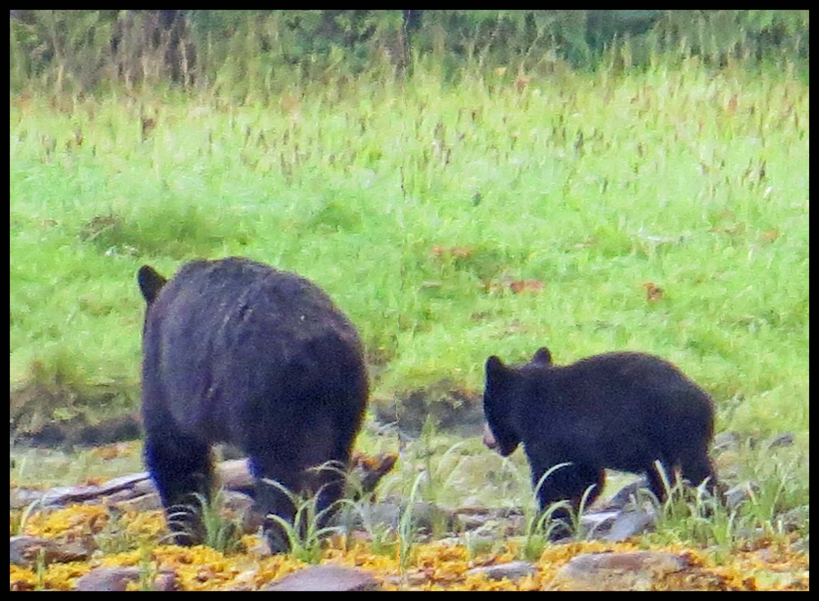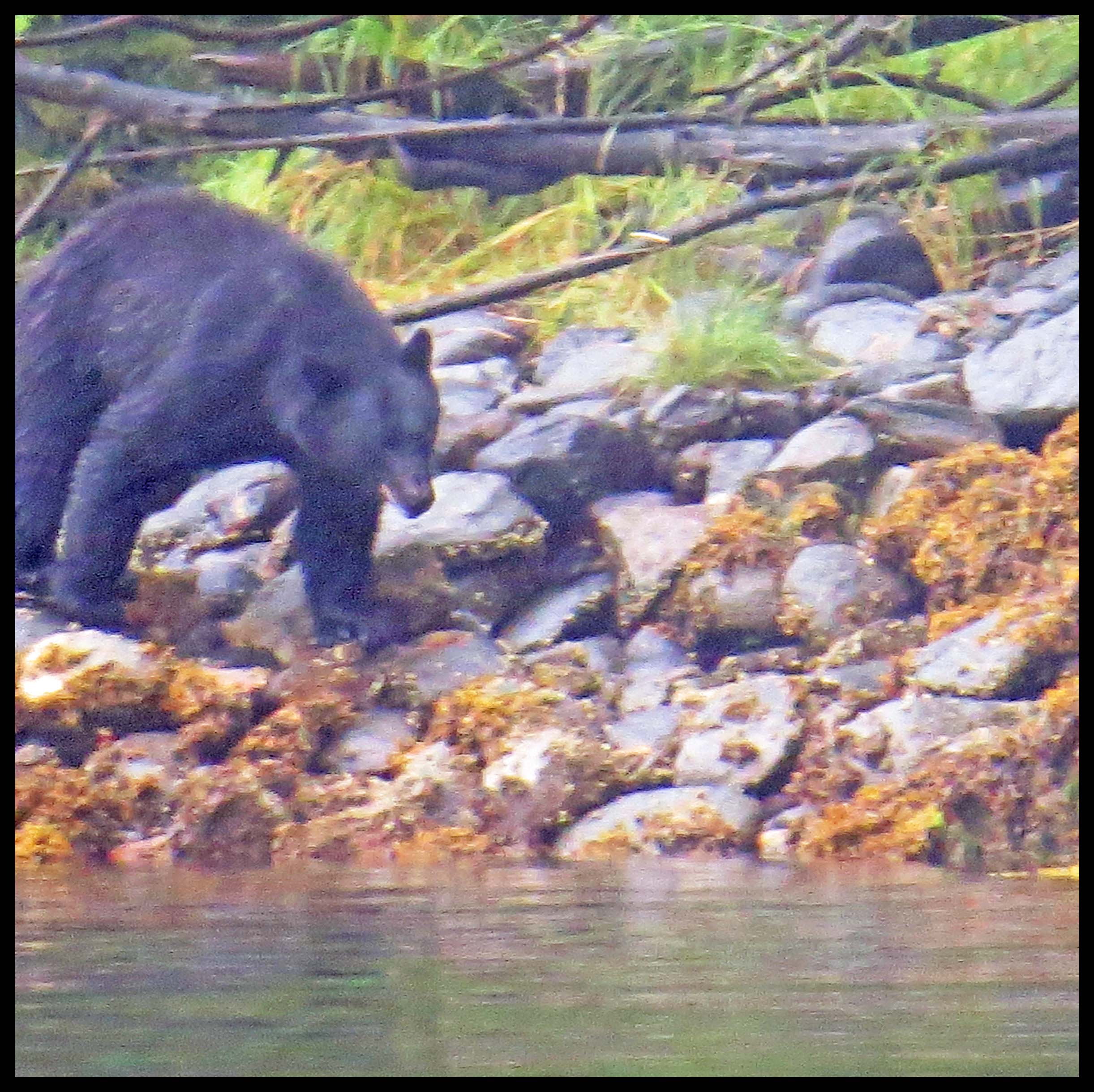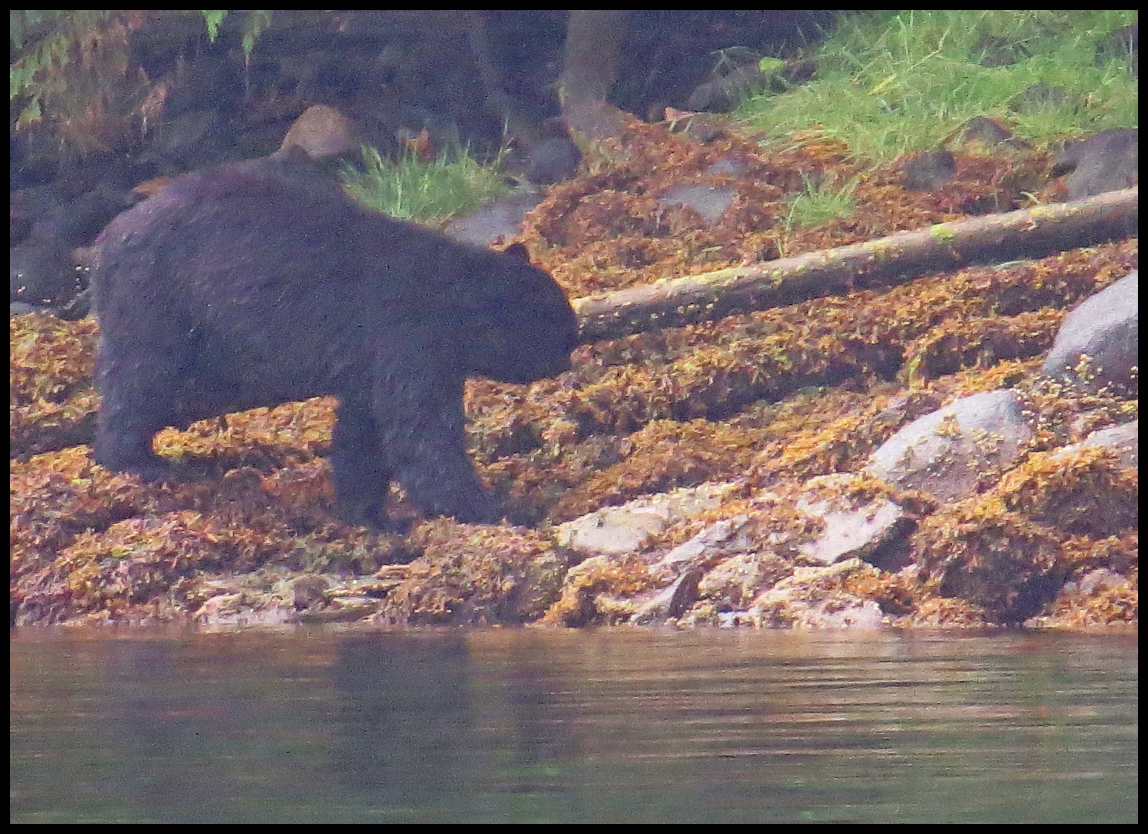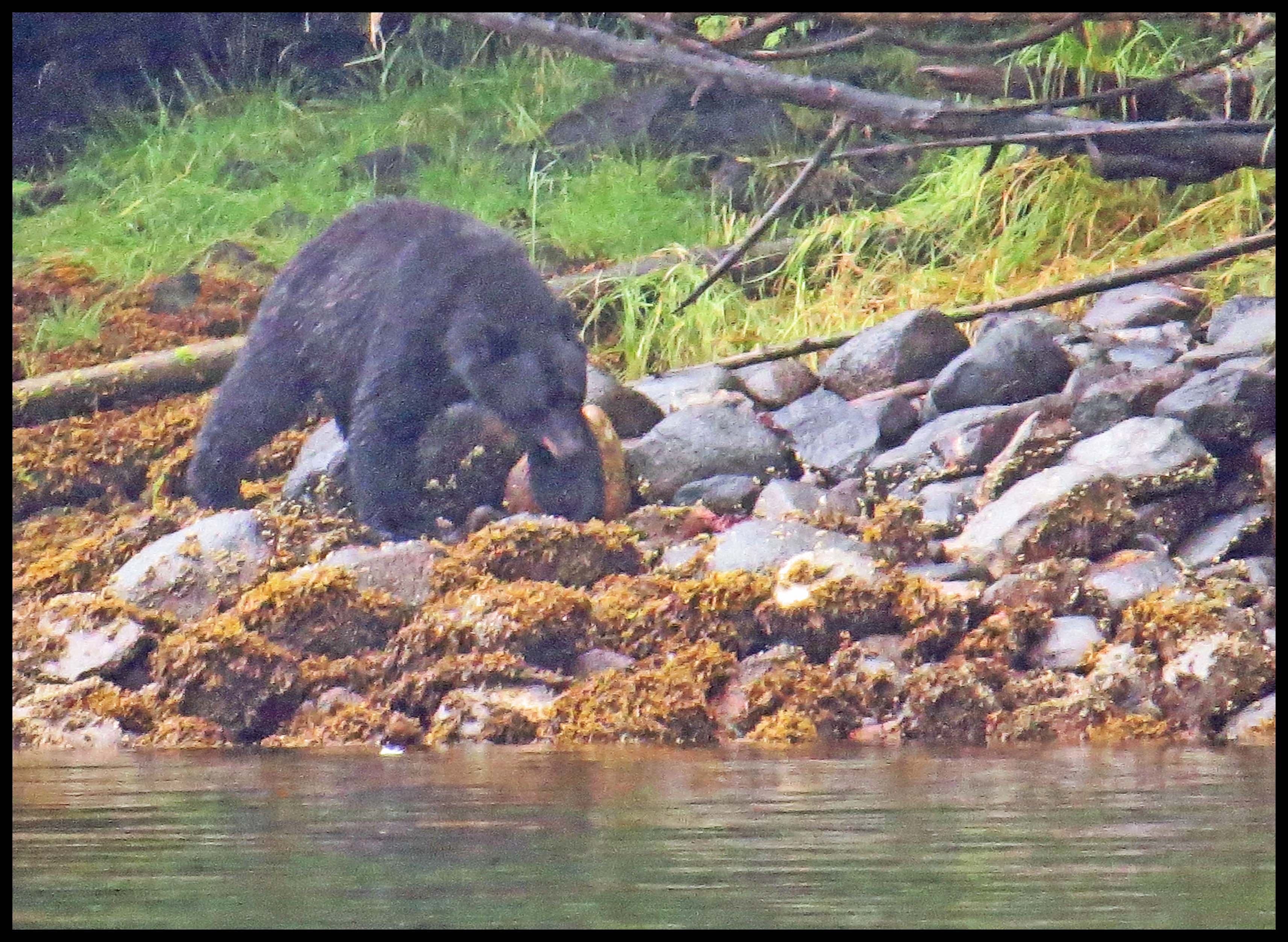 We’d just finished dinner when I looked out the window and saw a bear headed our way. I grabbed my camera and started shooting. He wasn’t close enough for really sharp photos, but I shot at 155X to 200X hoping I’d get something worth salvaging.