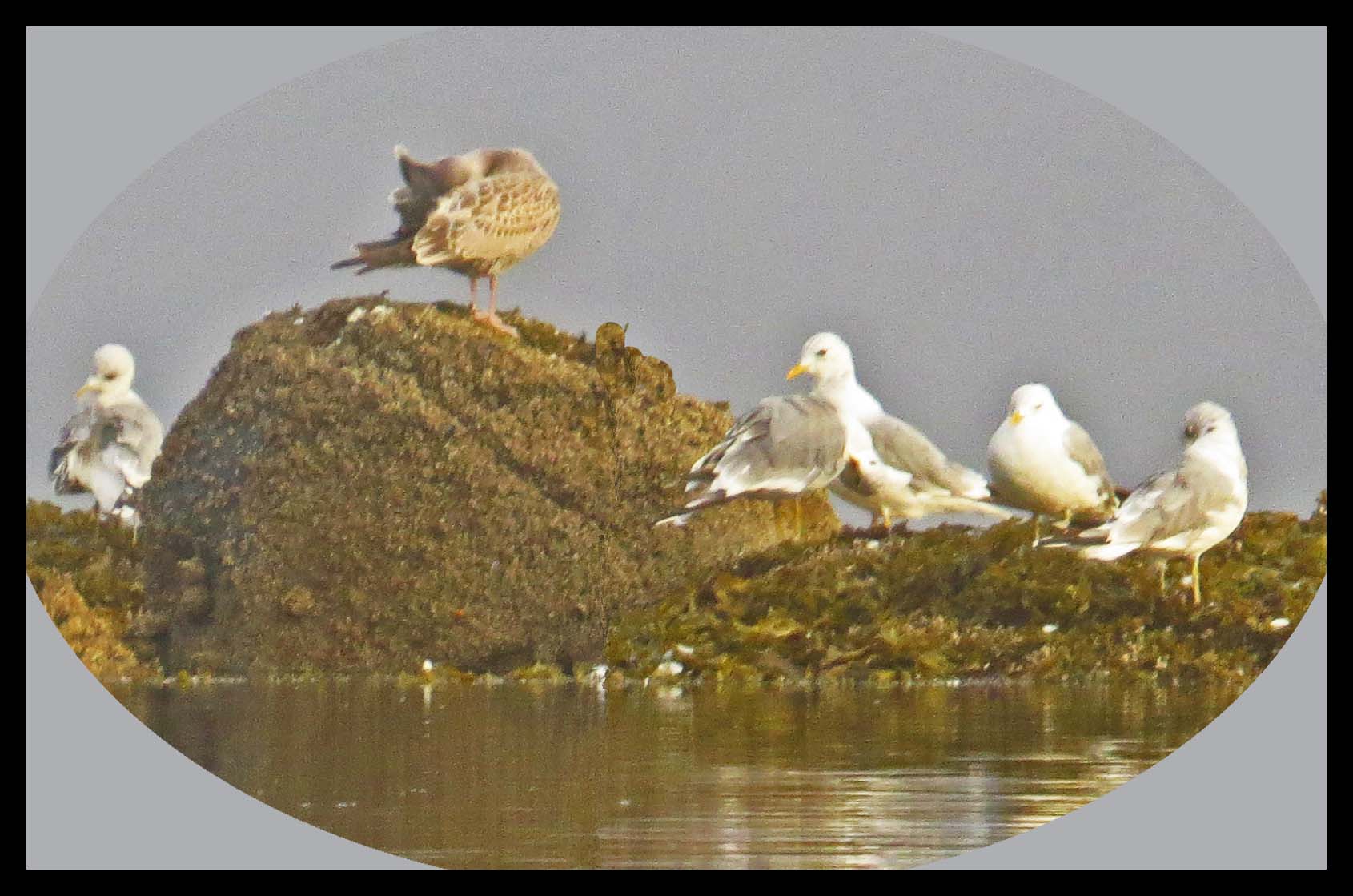 The seagulls don’t like fog either, and are hunkering down, cleaning their feathers.