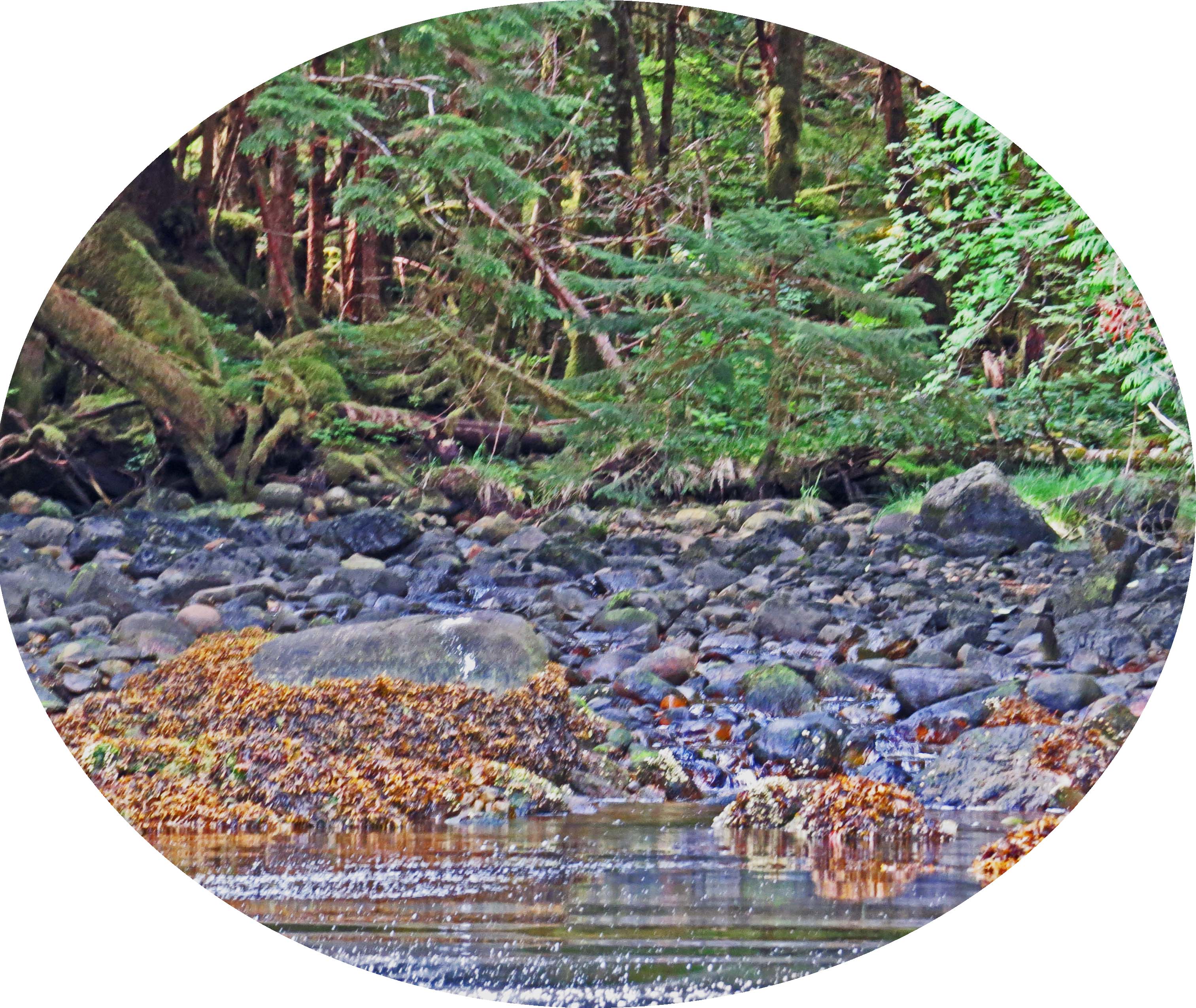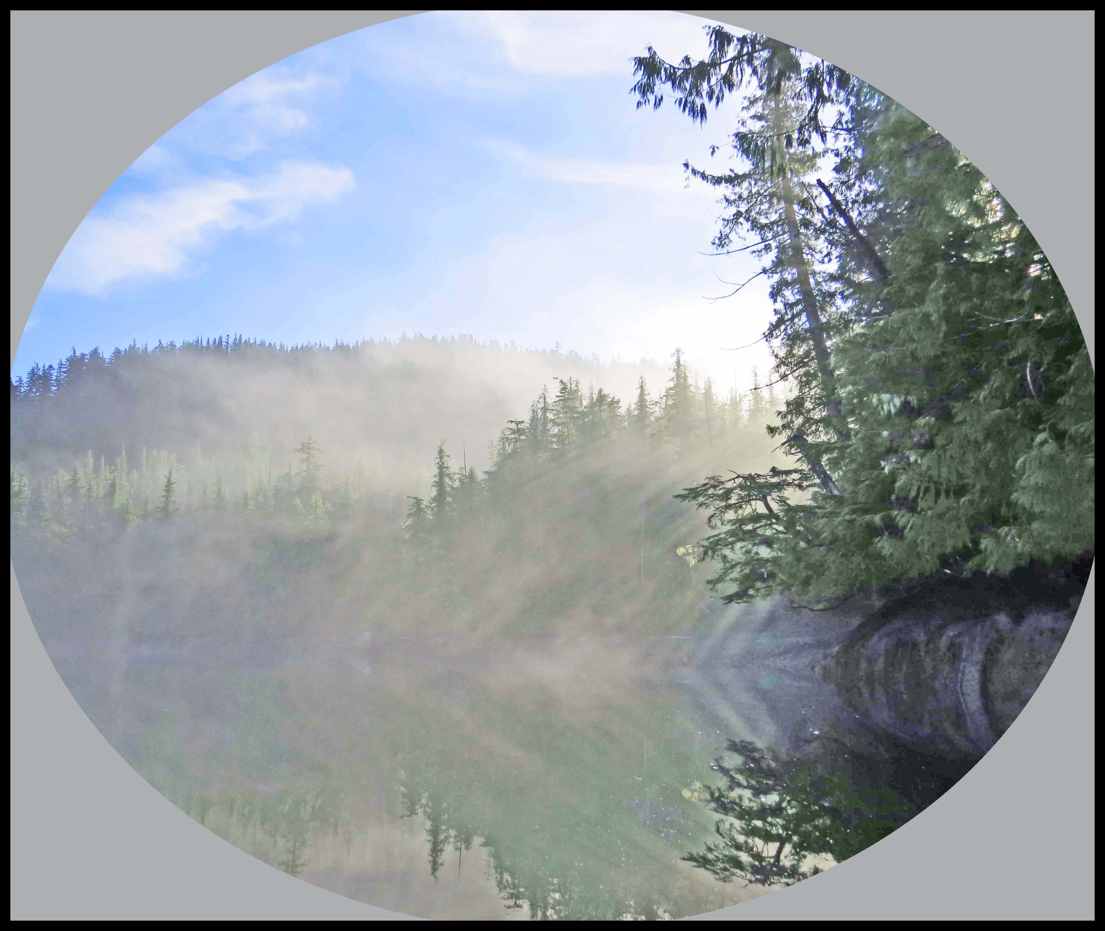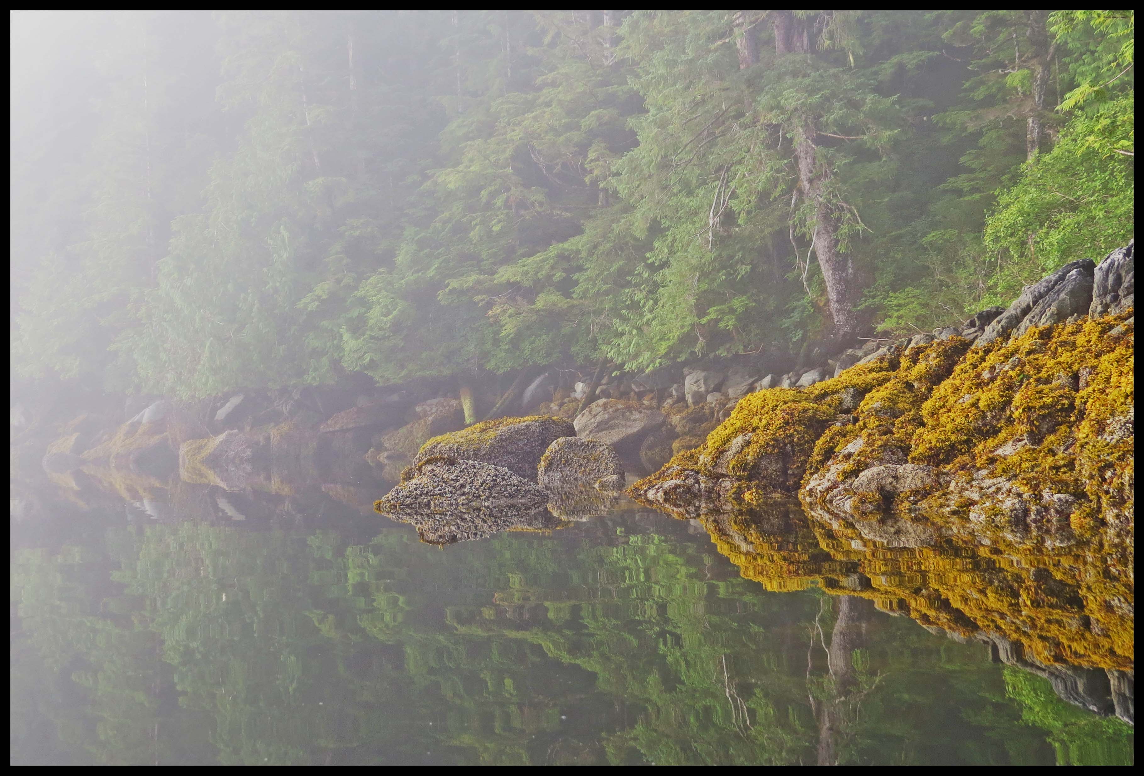 As I got closer to the creek at the head of the inlet, the sun was starting to shine through the fog, highlighting the individual droplets of moisture, like a fine mist.