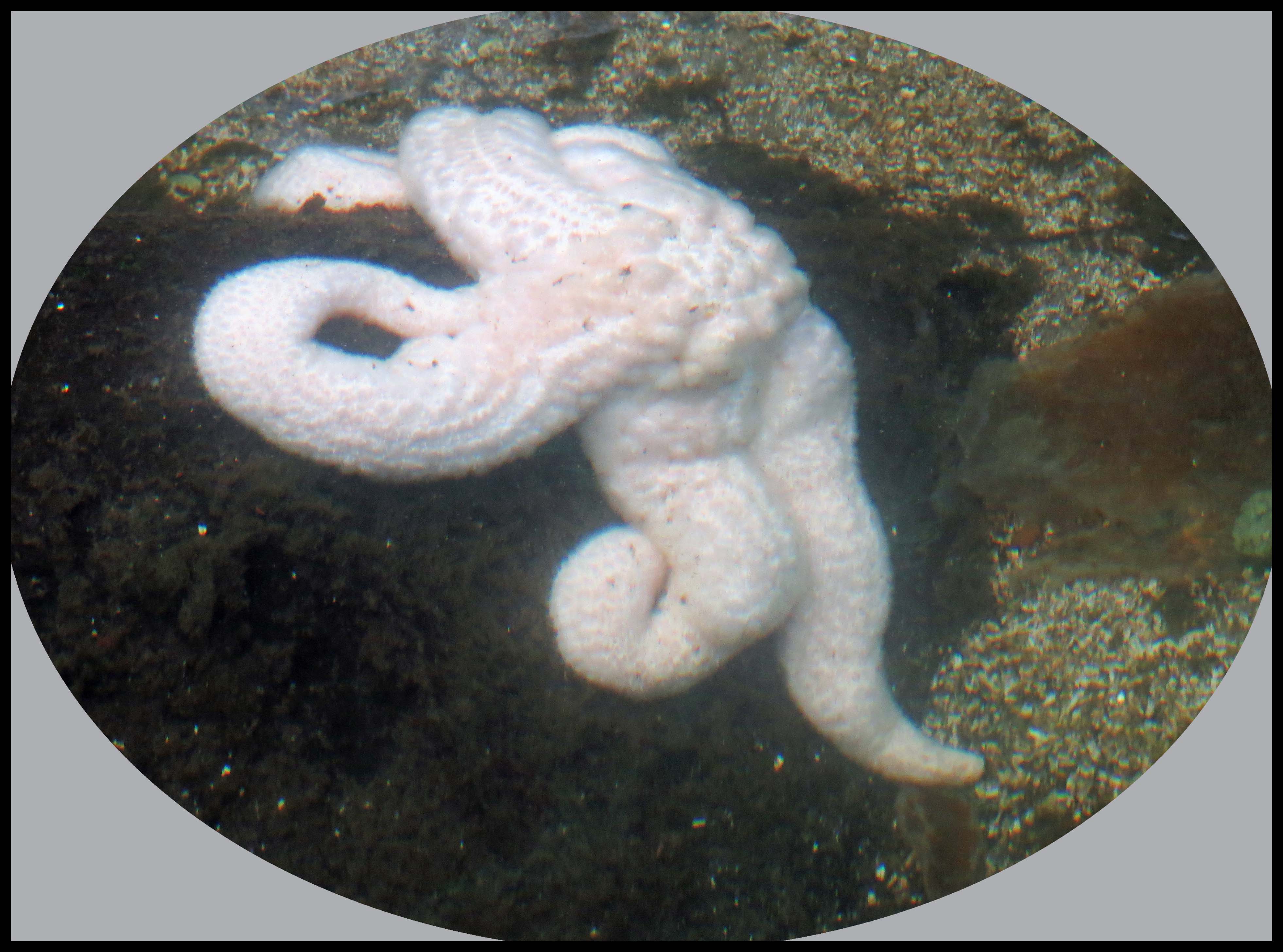 We awoke to a beautiful day with wall-to-wall blue skies. I was out paddling early, eager to see what I could find with this super-low tide. I scoured the shoreline, looking for critters. I wasn’t having much luck, until I ran across this giant sea star. It was so big I thought it might be some albino octopus. It’s legs looked to be at least 12 inches long.