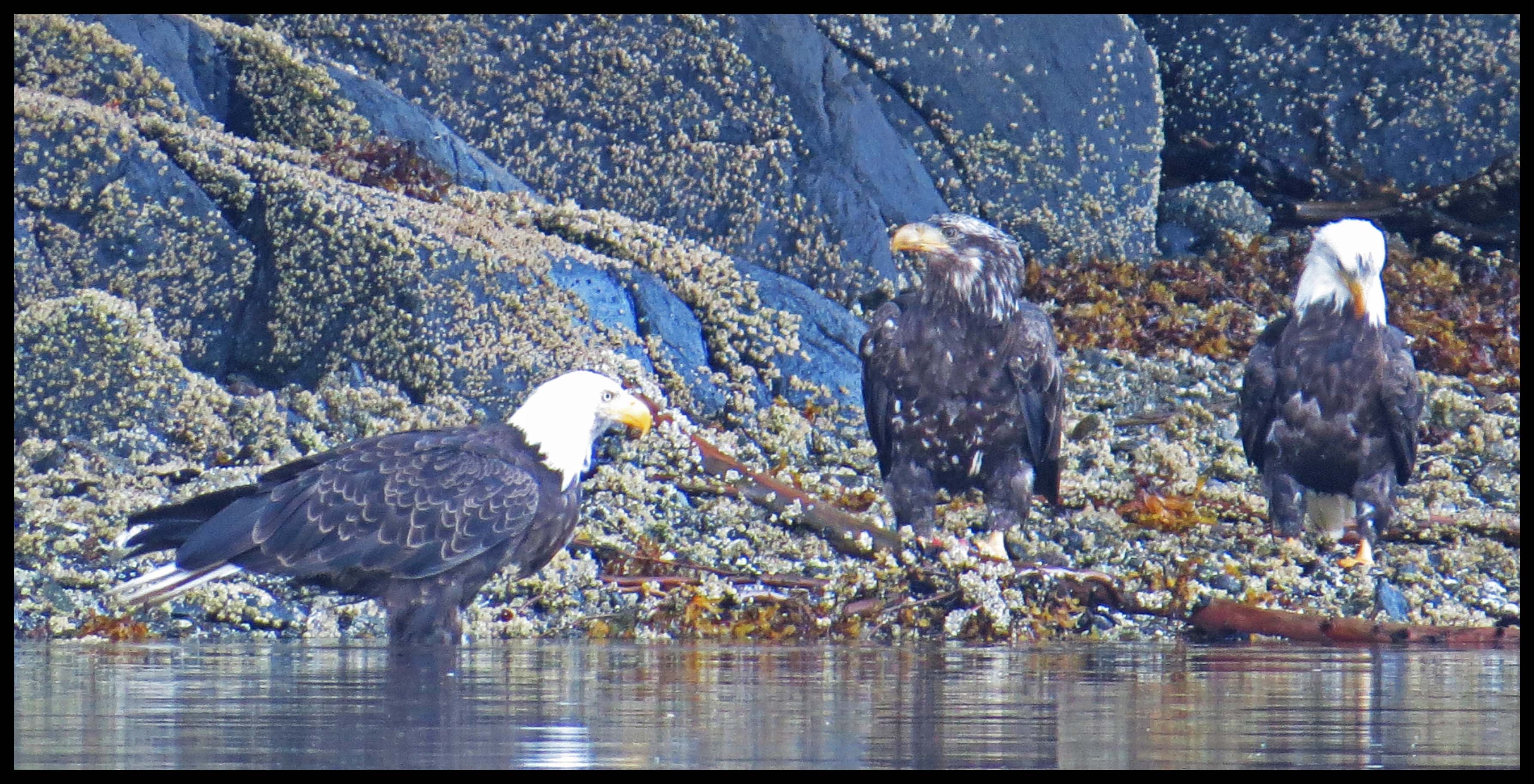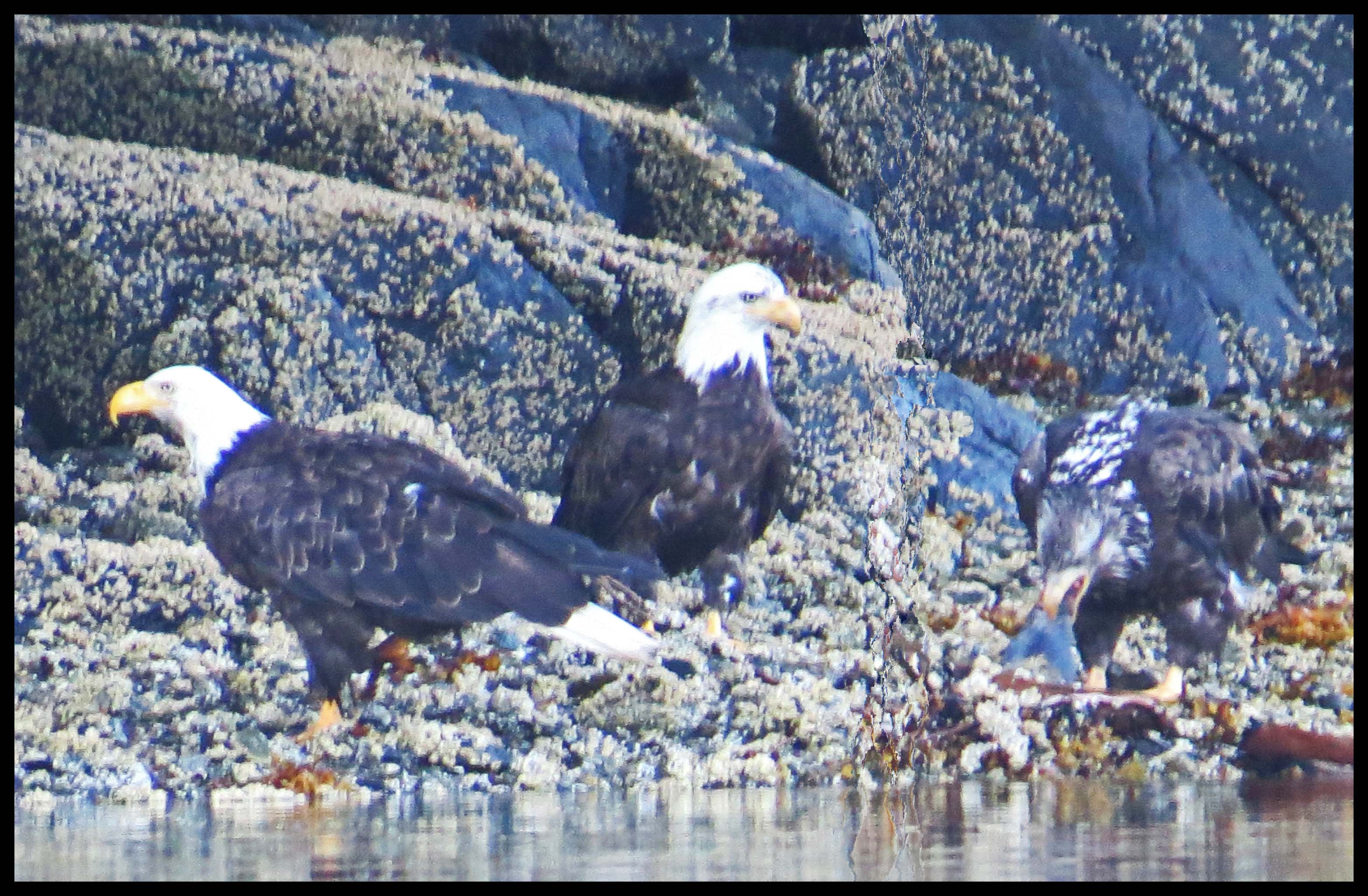 It’s another beautiful sunny day this morning as I set out for the head of the cove and Barnard Creek. The tide wasn’t high enough for me to go up the creek, but on my way I encountered about 15 eagles! They were everywhere.