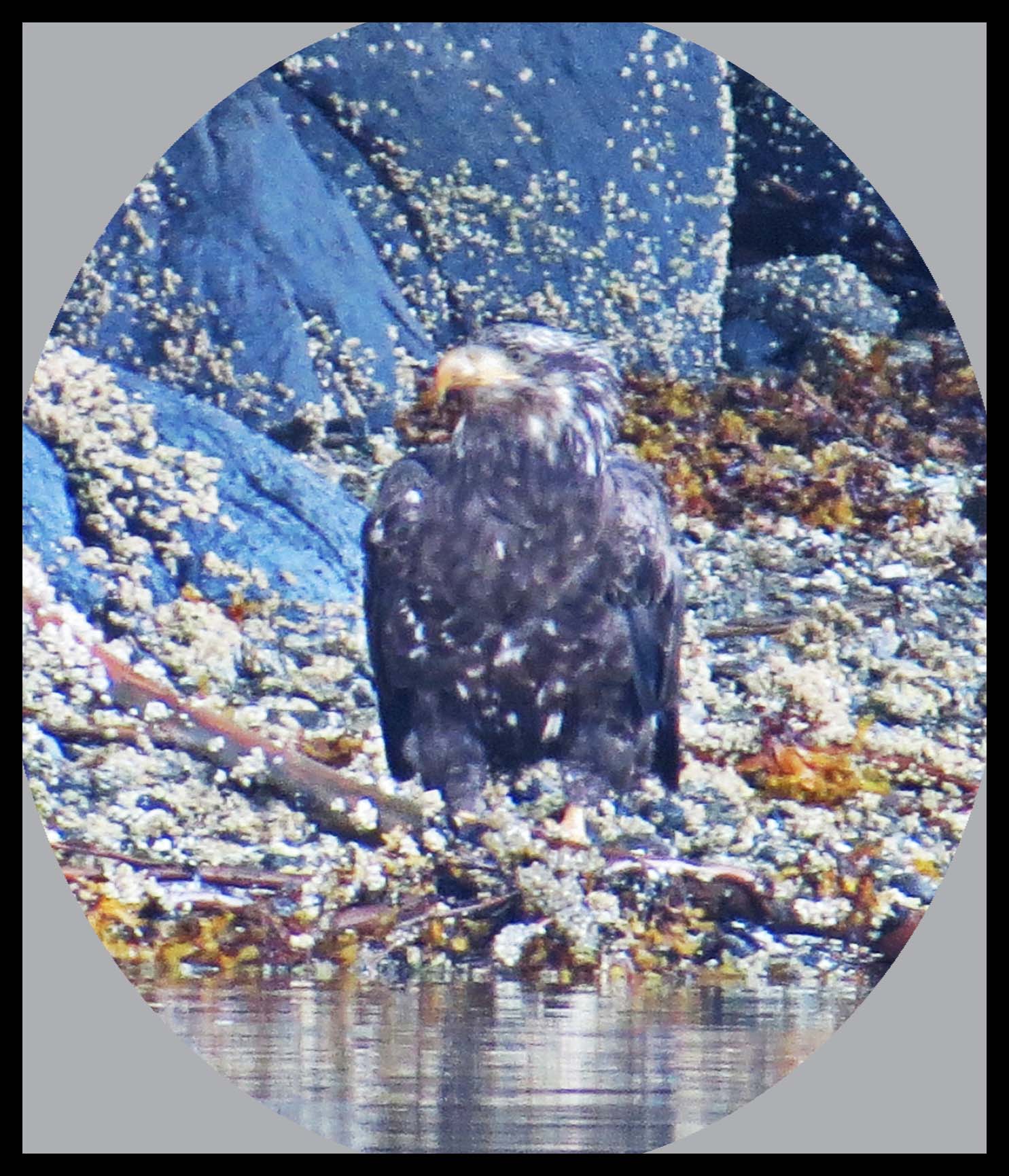 Along the way I found this one eagle, who was waiting for high water too, which is when the salmon find it the easiest to get up the creek to spawn.