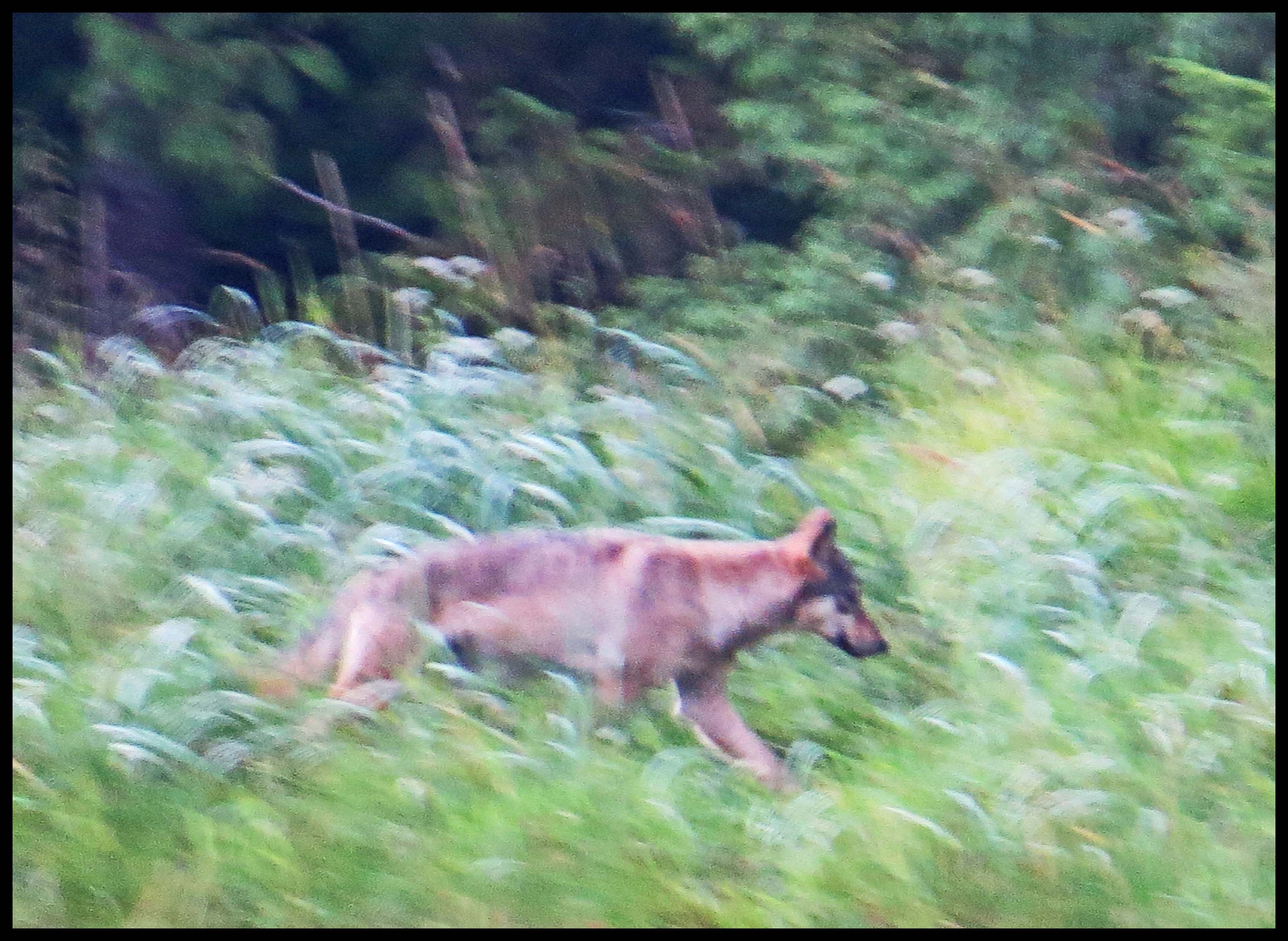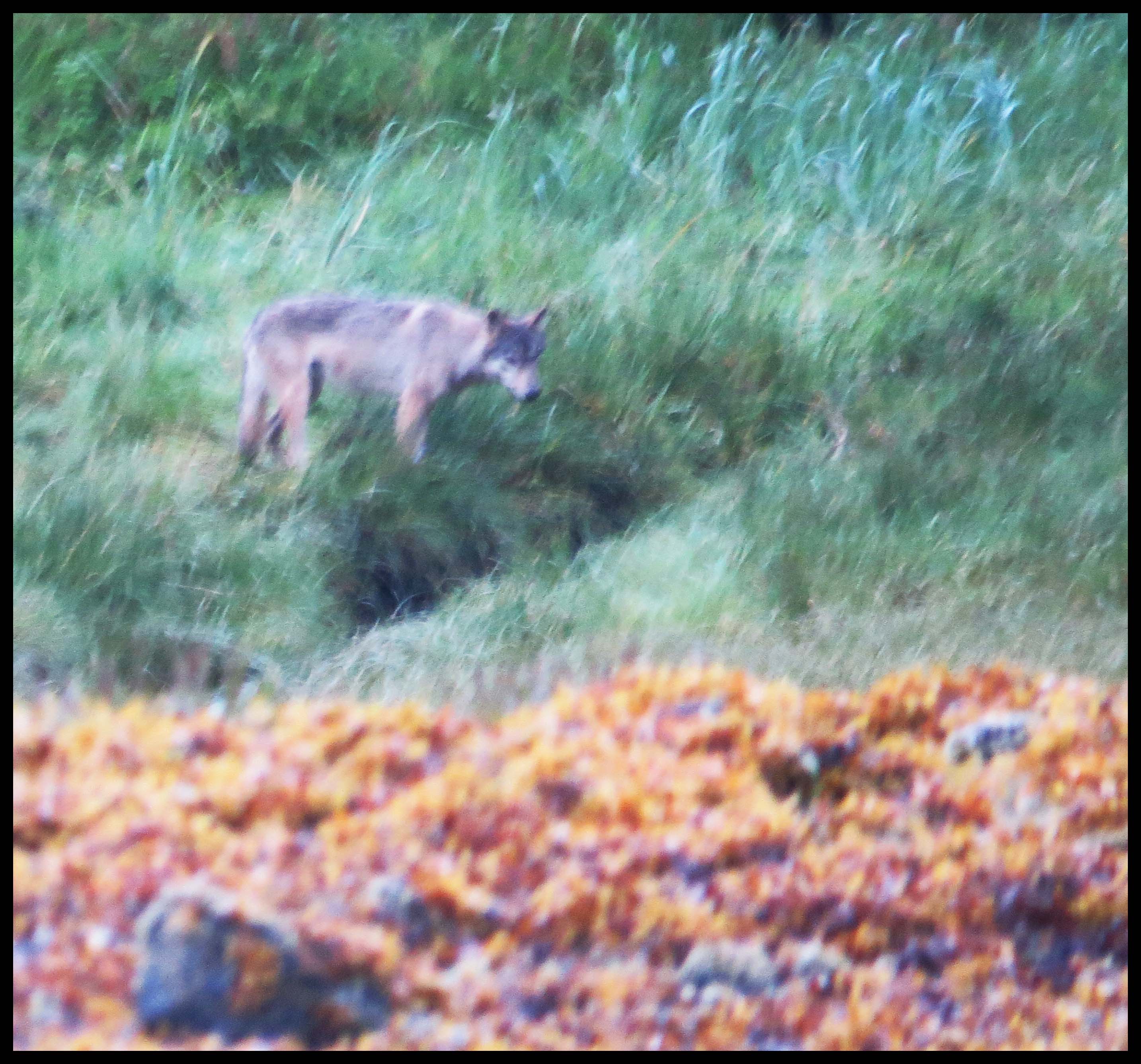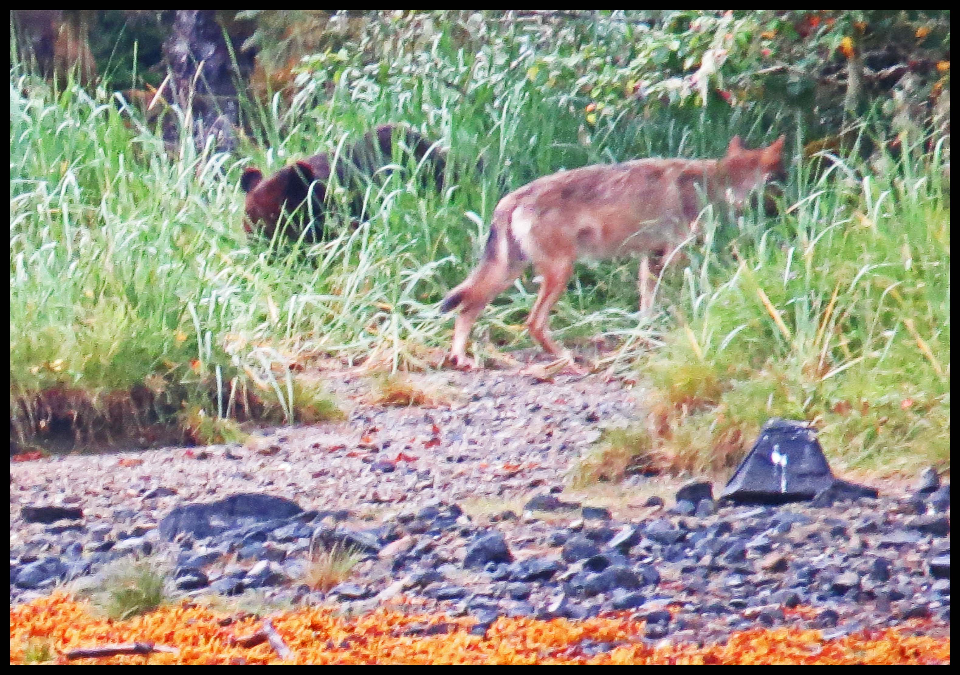 Mr. Wolf was in the area looking for a little salmon for breakfast also, and suffered the same lousy fishing luck as Mr. Bear.