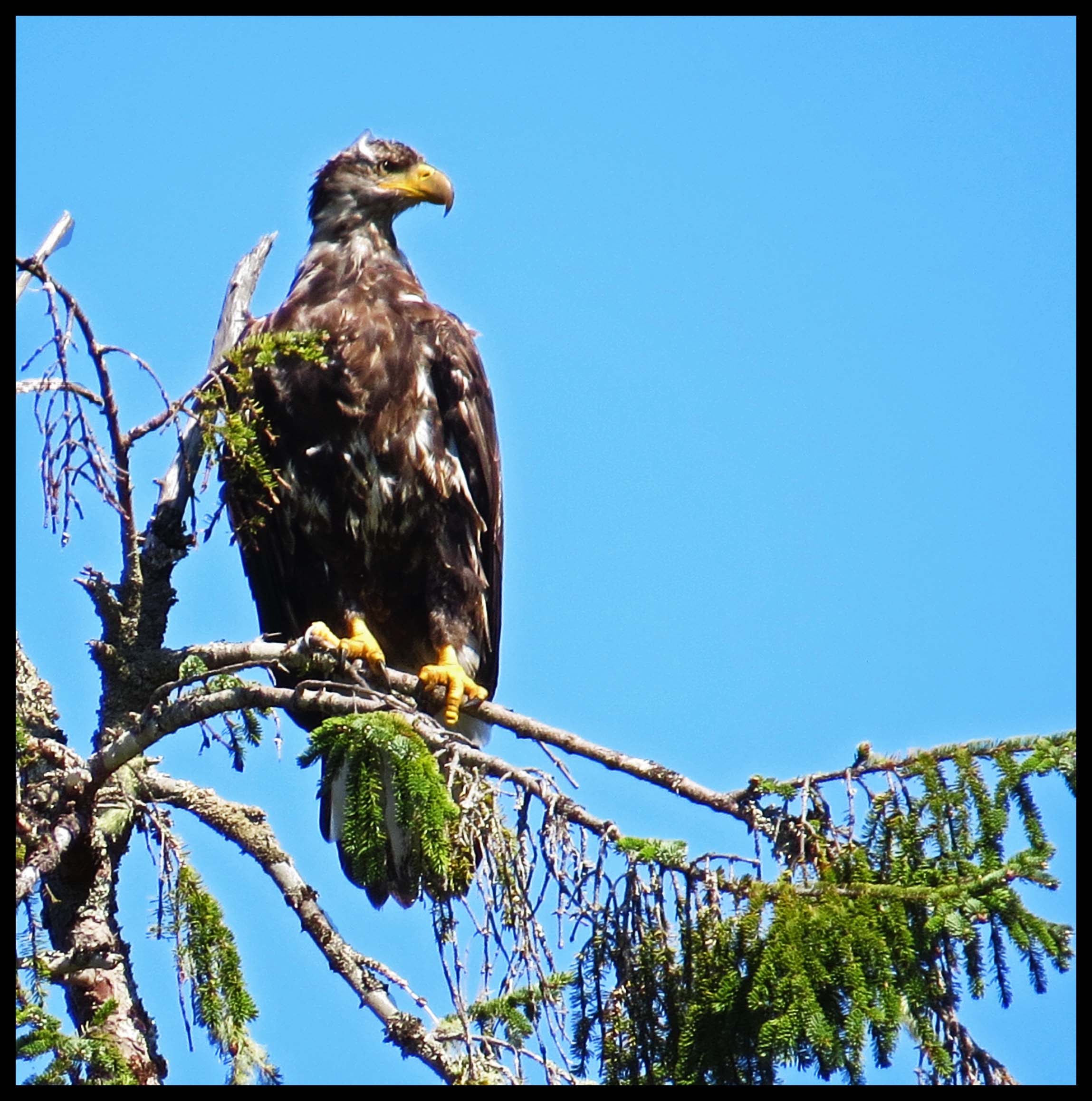 There were only nine prawns in the trap Al pulled this morning — pitiful. Oh, well. As soon as we got the prawn trap back onboard, I set out on my paddle to the bitter end of Chappel, while Al pulled the anchor and headed in the same direction. I’m hoping to spot bears at the creek that empties into the bitter end anchorage. We’ll see.