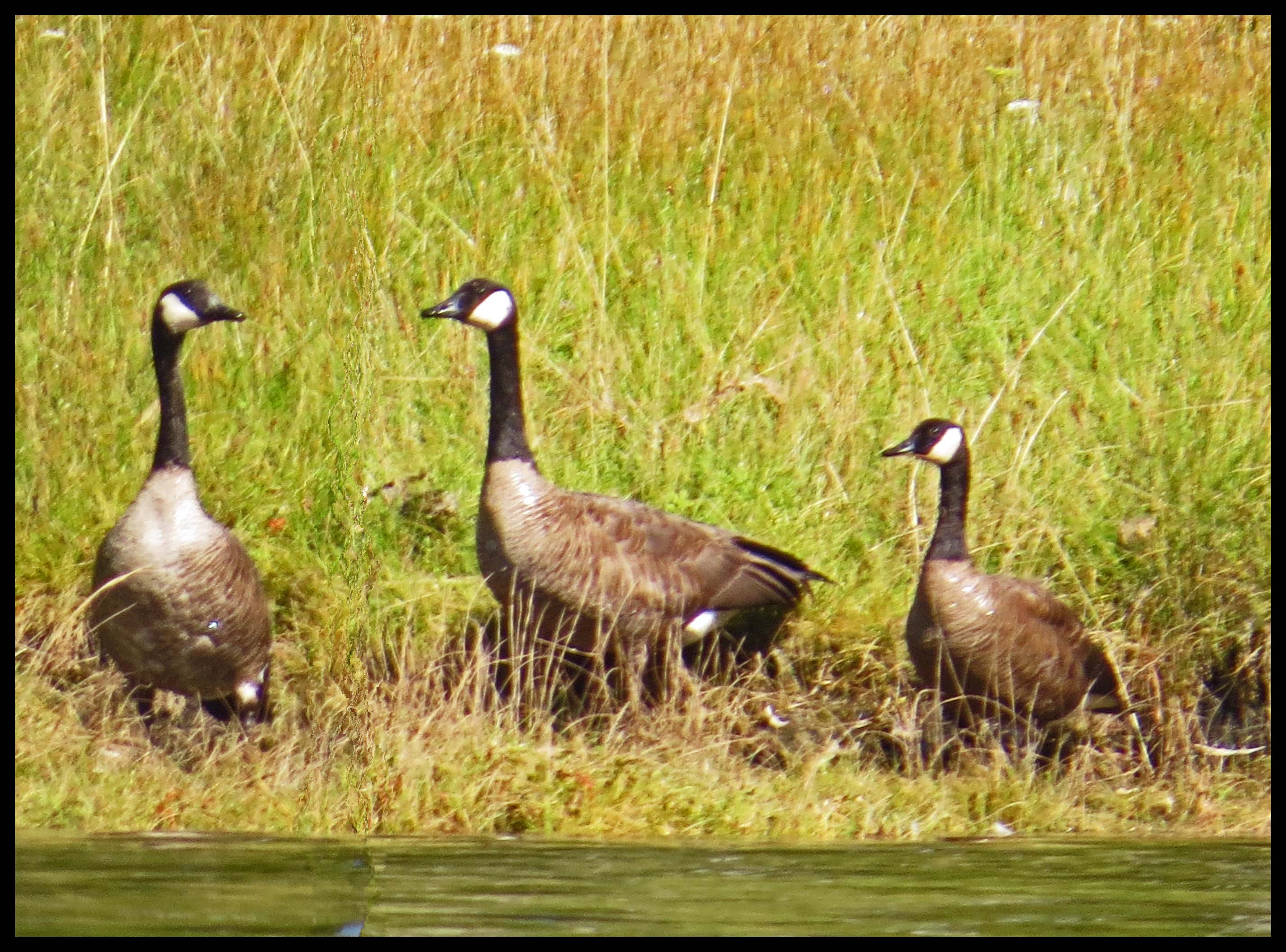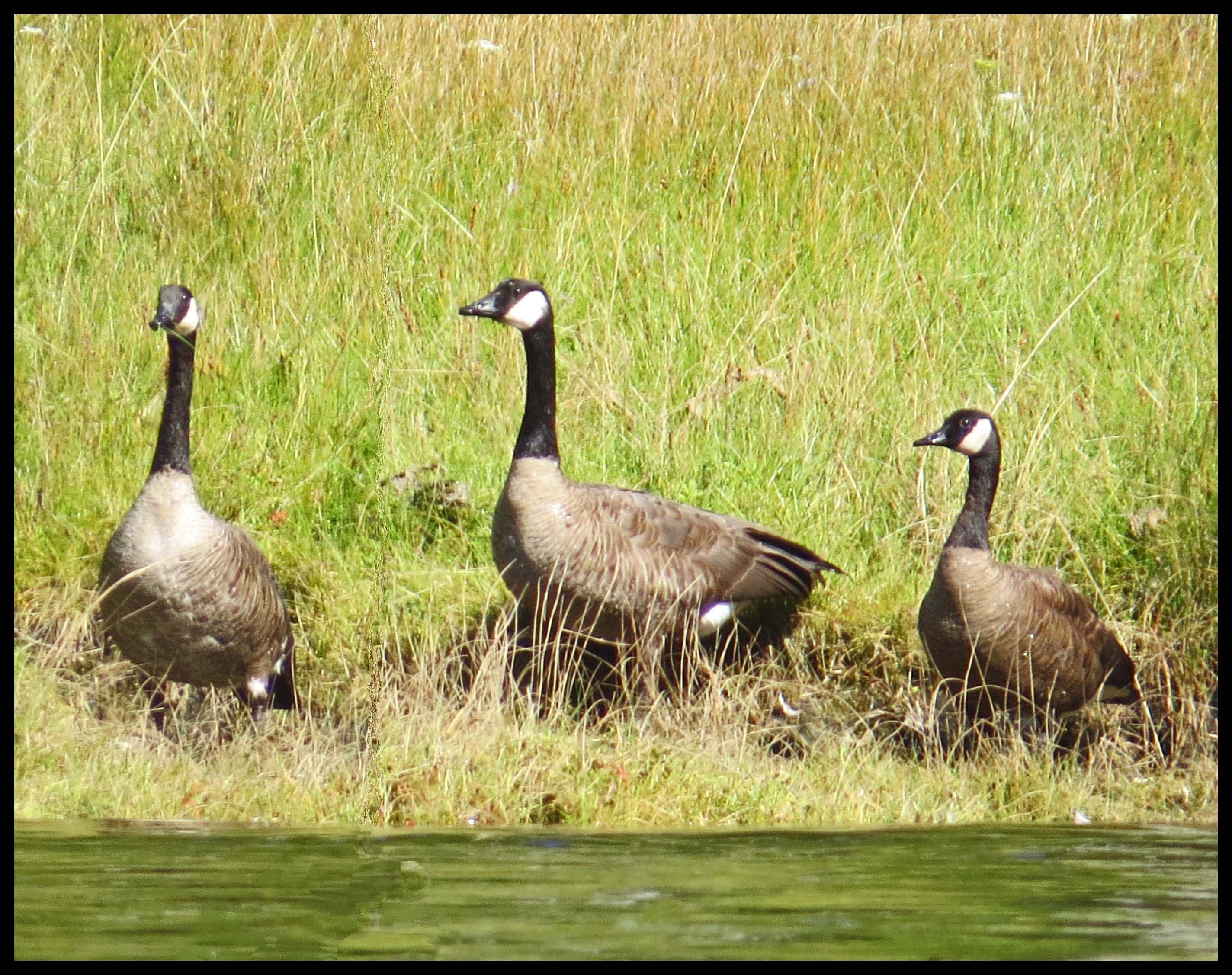 When I got to creek I poked around and found that there are actually three creeks. I never saw any bears, but I did come across these Honkers who had landed to enjoy the grass.