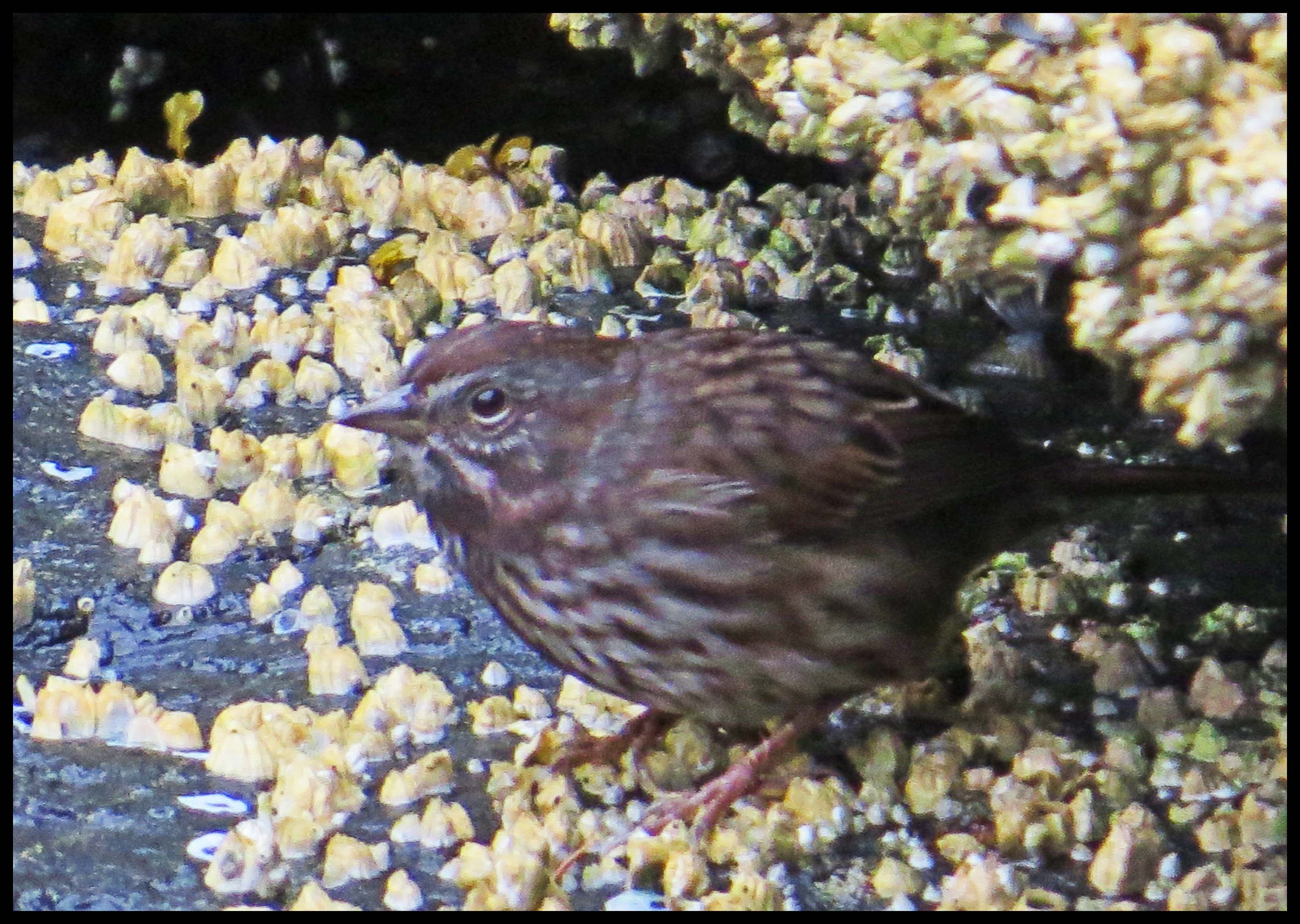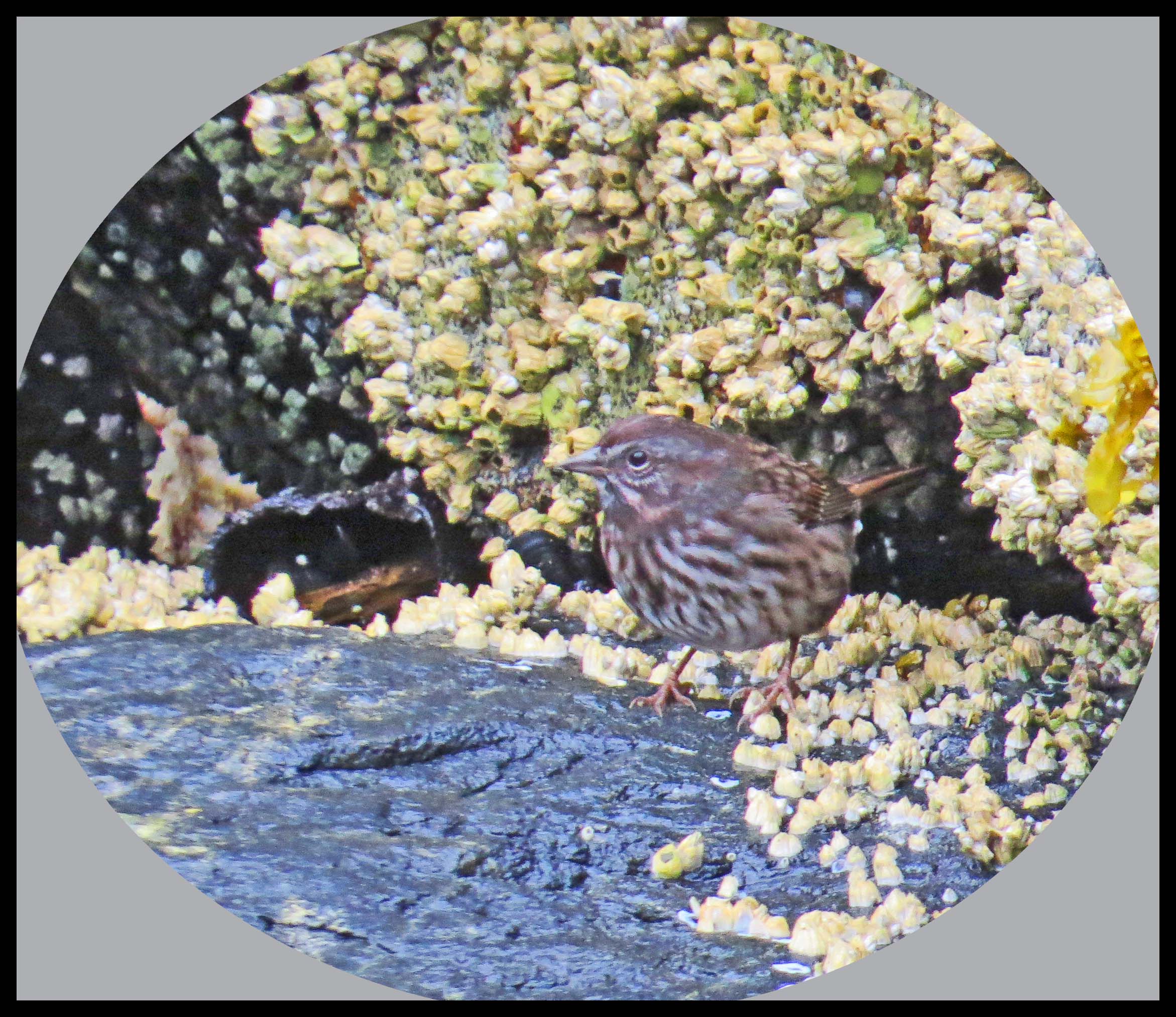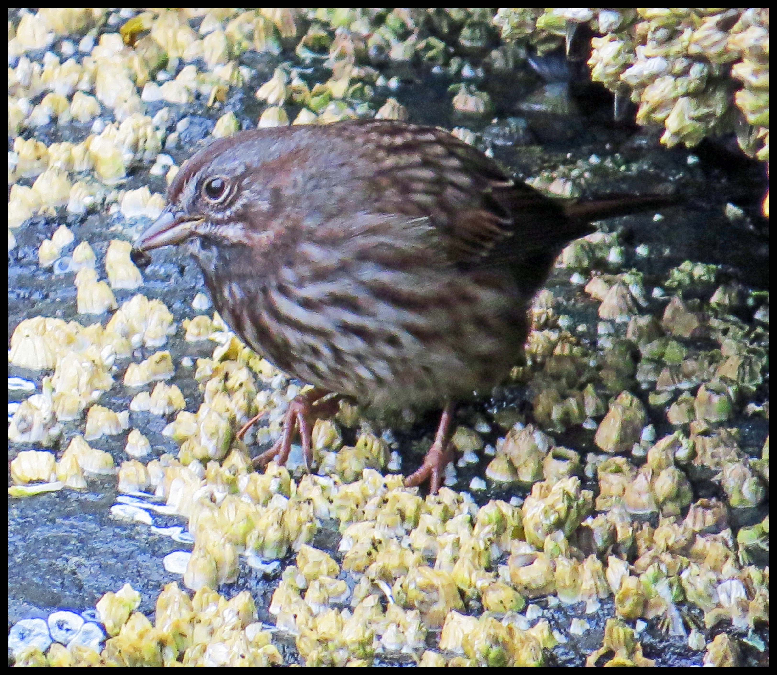 I was surprised to see this little bird, which looks like a sparrow of some kind, looking for goodies at low tide.