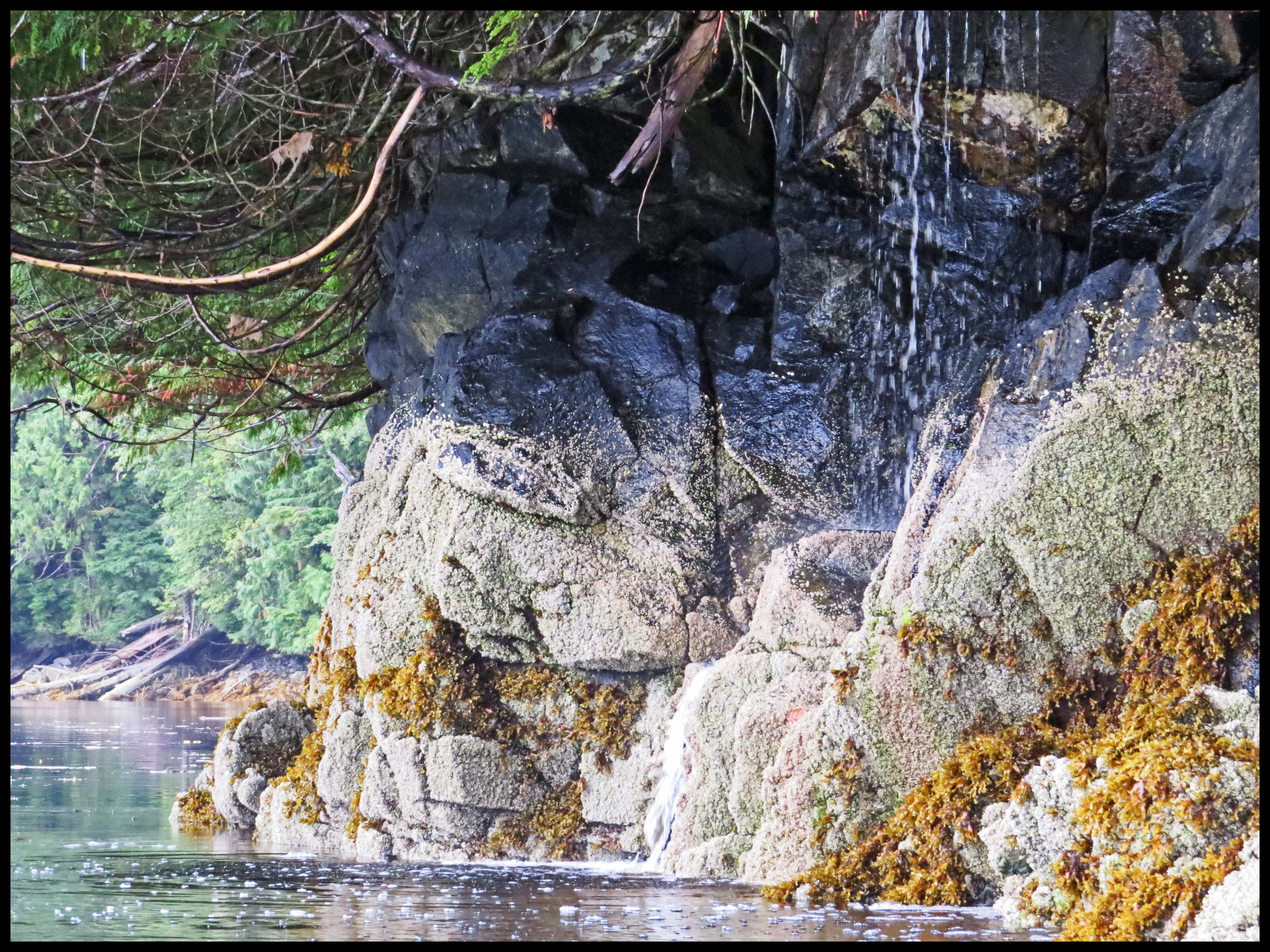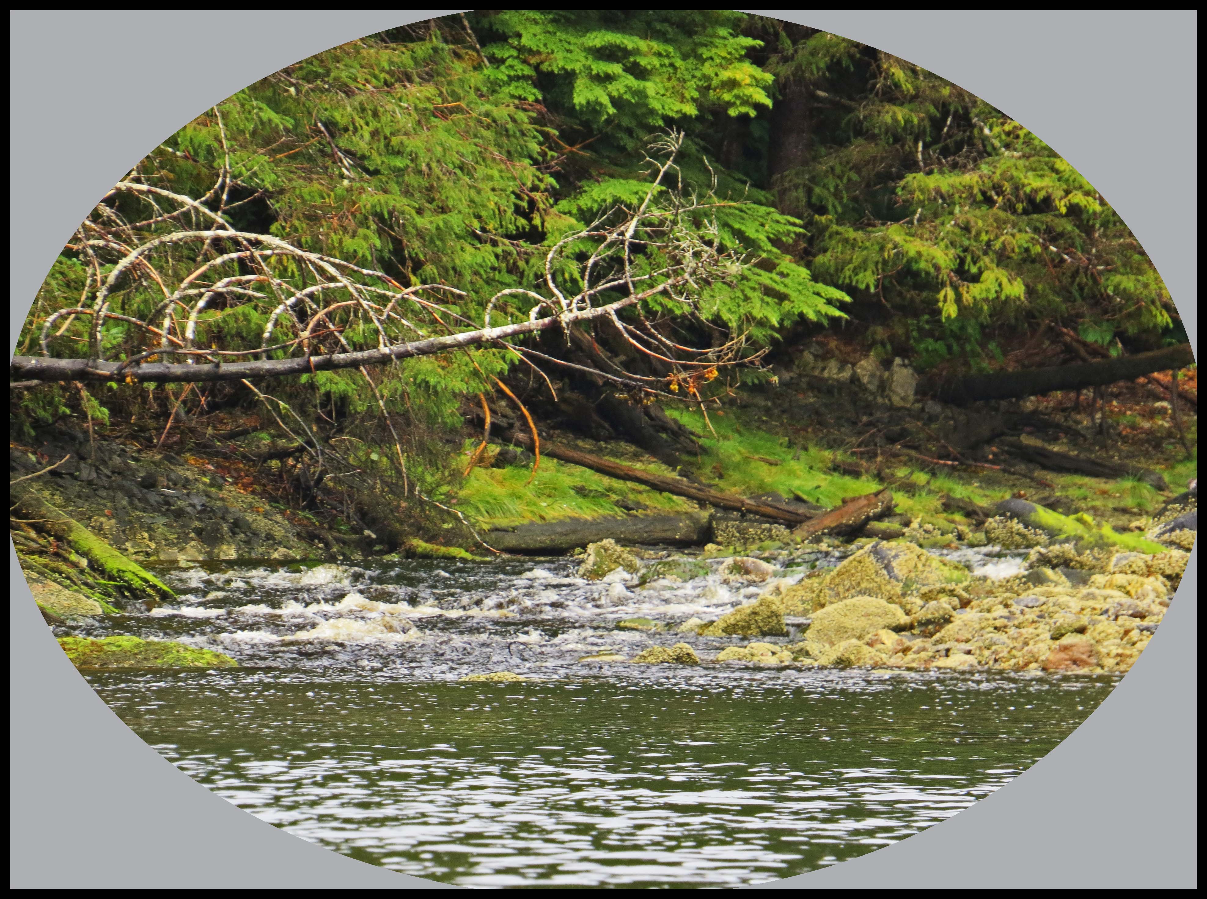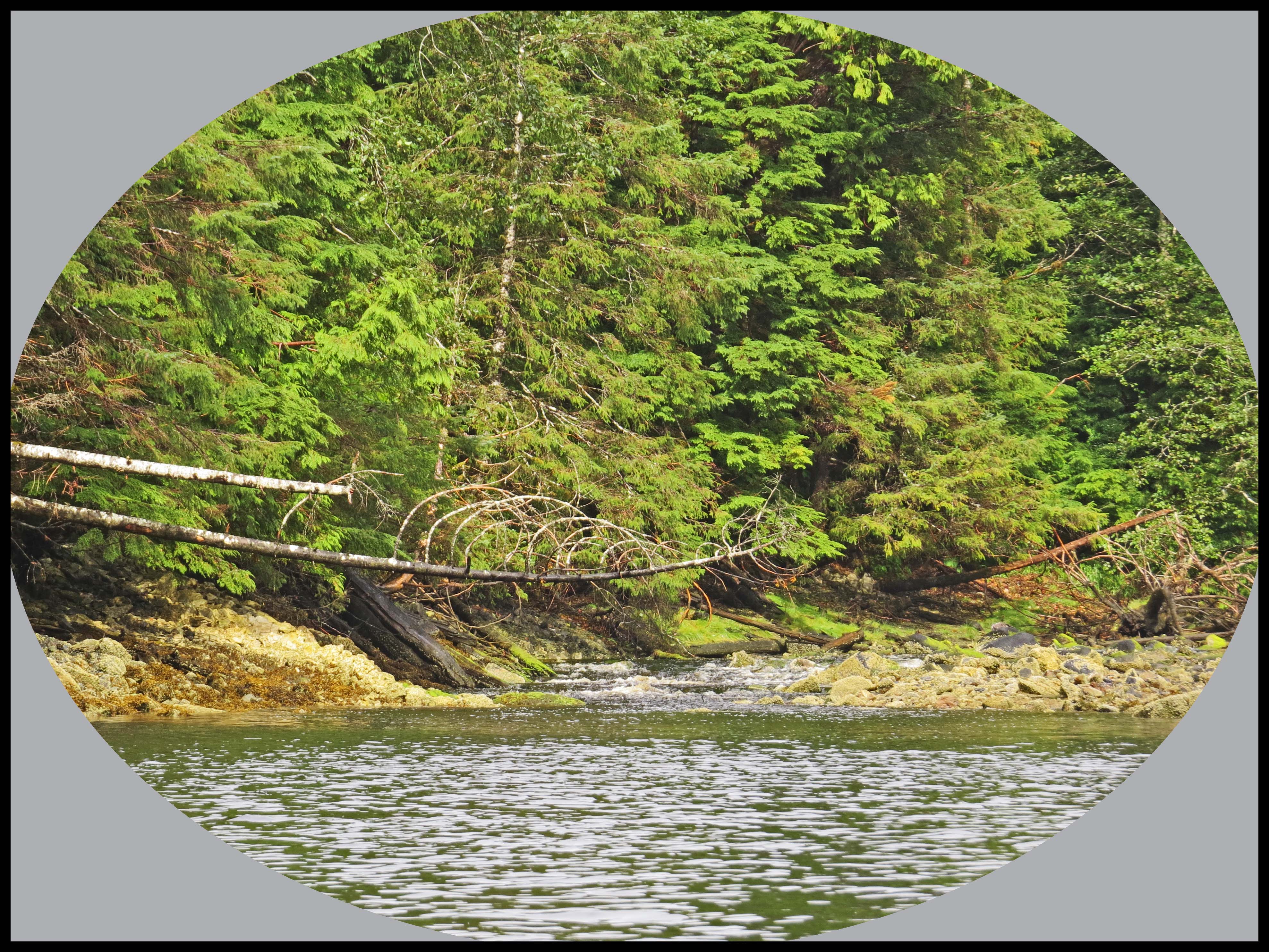The wind has dropped enough this morning for us to move to nearby Kiln Bay, where we have spotted Kermode bears in past years. Unfortunately, however, the wind picked up again soon after we got re-anchored. And, the rain that the salmon have been waiting for arrived, big time.
