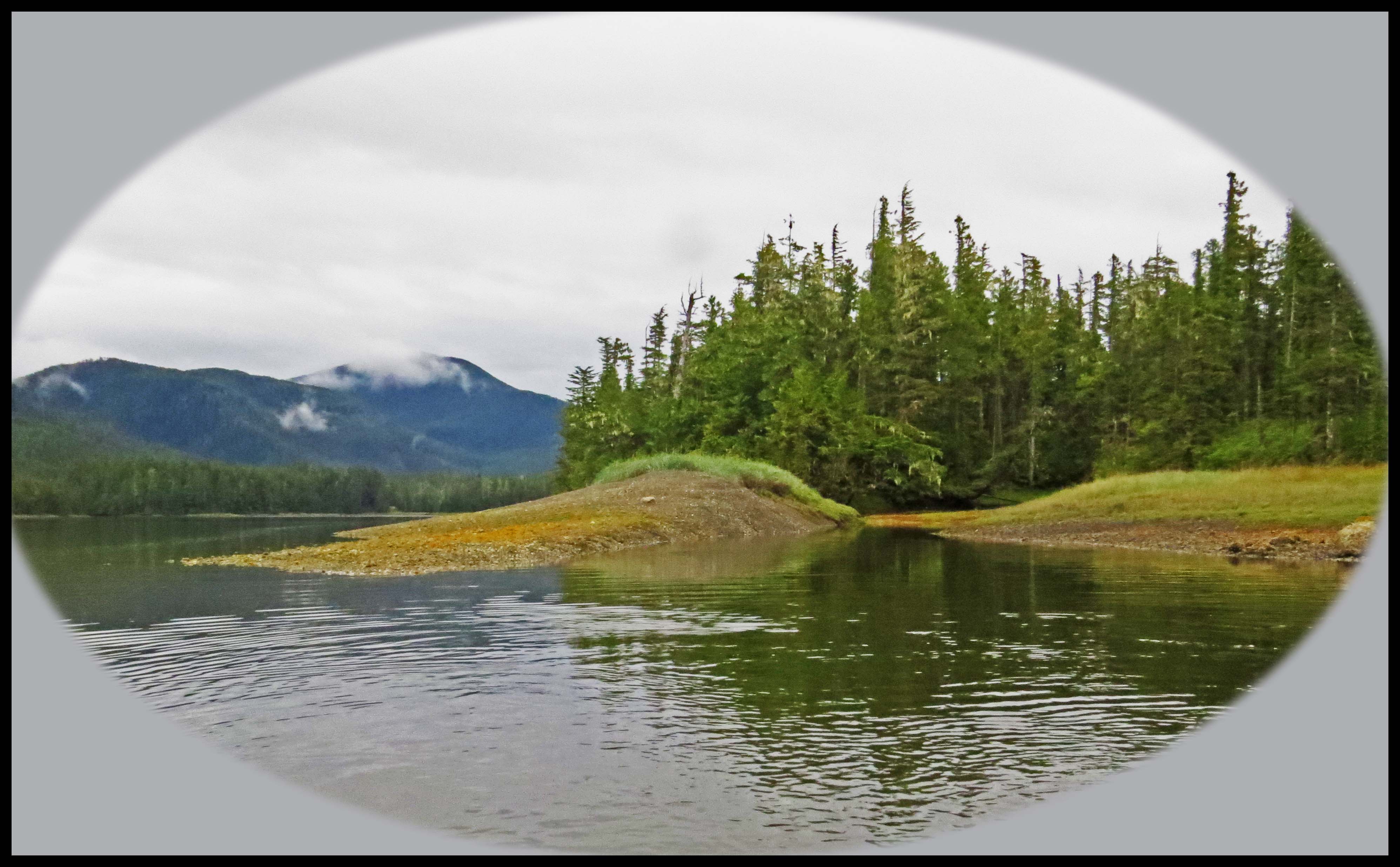 Since we aren’t having much luck catching salmon, we’ve decided to move on this morning. It’s still raining, but there isn’t any fog or wind, so we set out for Kakushdish, a full day’s run from here.