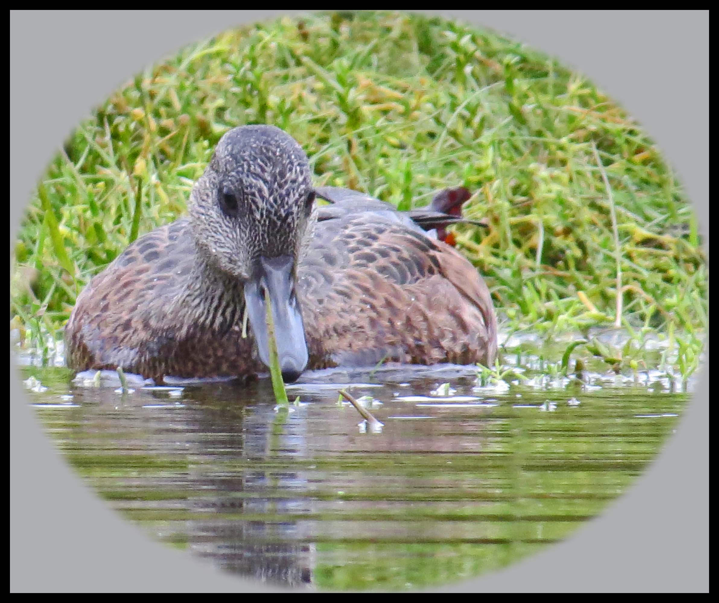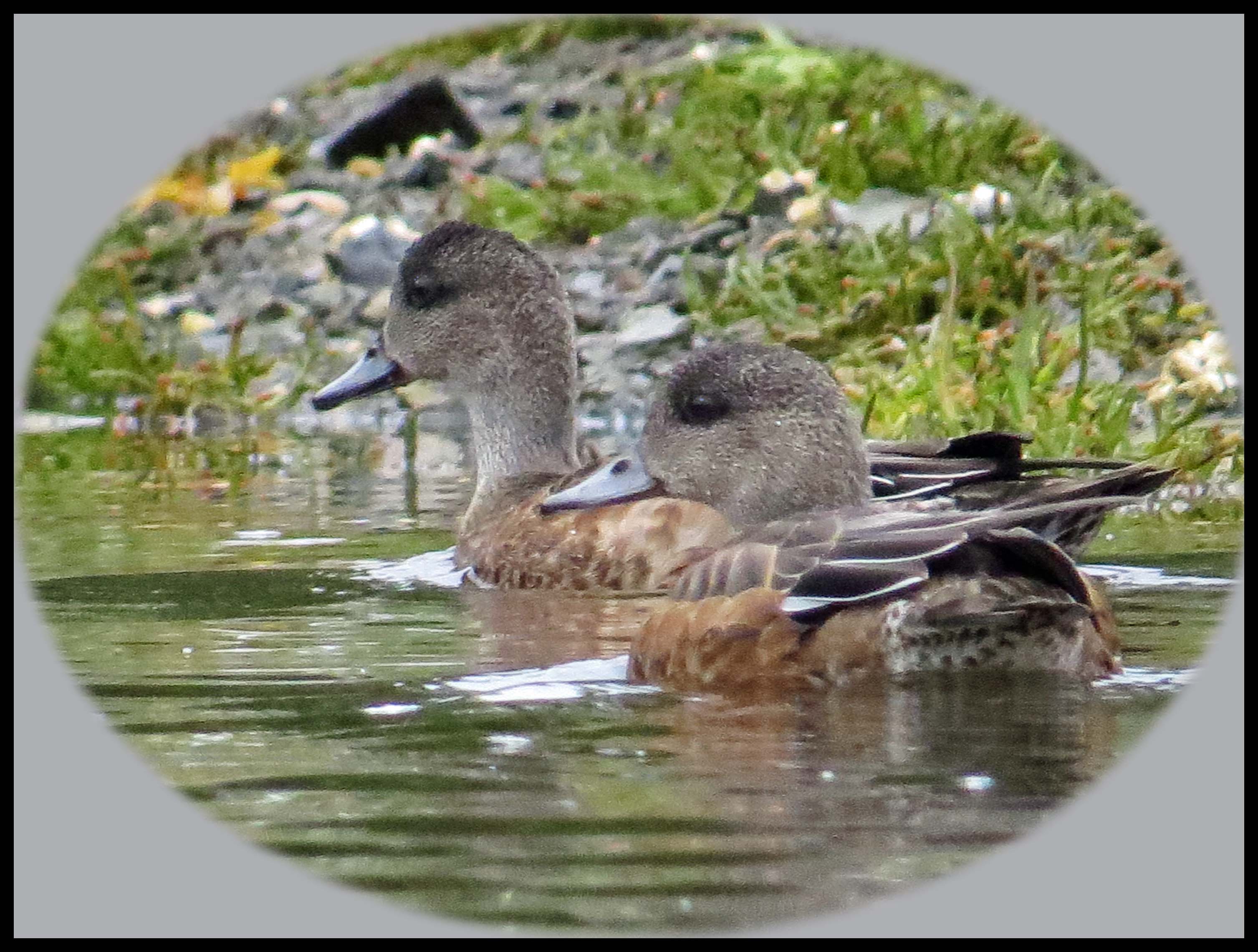 At the mouth of the creek, I spotted another pair of Teals. I immediately stopped paddling, hoping they hadn’t seen me. They were headed in my direction, so I just waited until they were within range, and then very slowly got my camera ready. By now, they knew I was there, but they were so into whatever they were feeding on that they were willing to put up with me as long as I didn’t press them.
