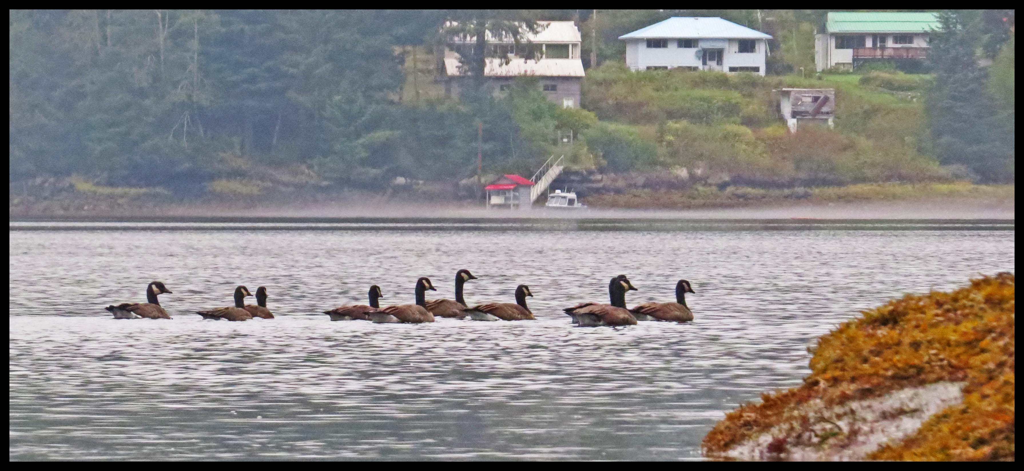 We had planned to stay in Ocean Falls for a week to 10 days, but the miserable weather has changed our minds. I did manage to get in one paddle to the Martin River. There weren’t many birds around, other than these Honkers.