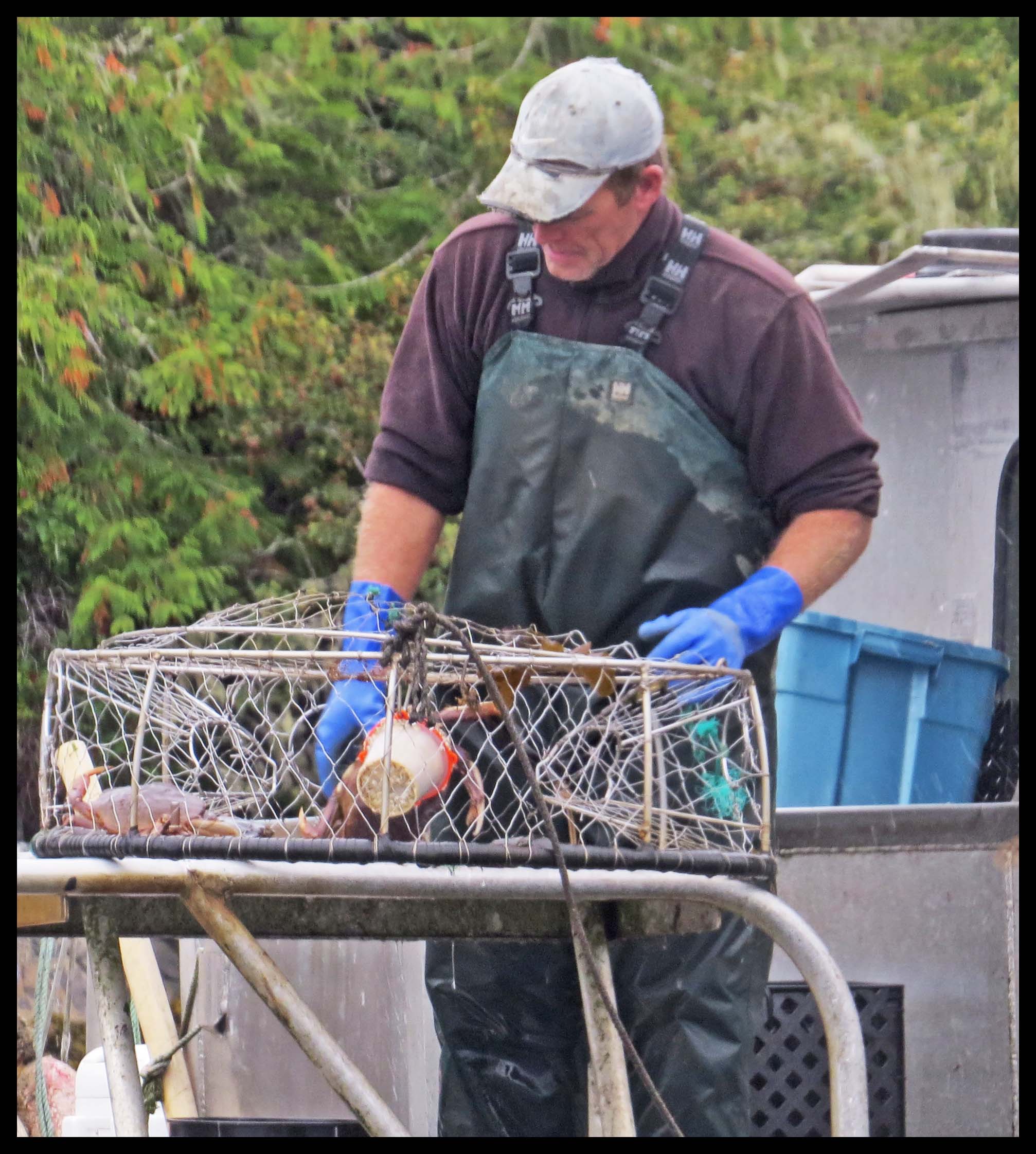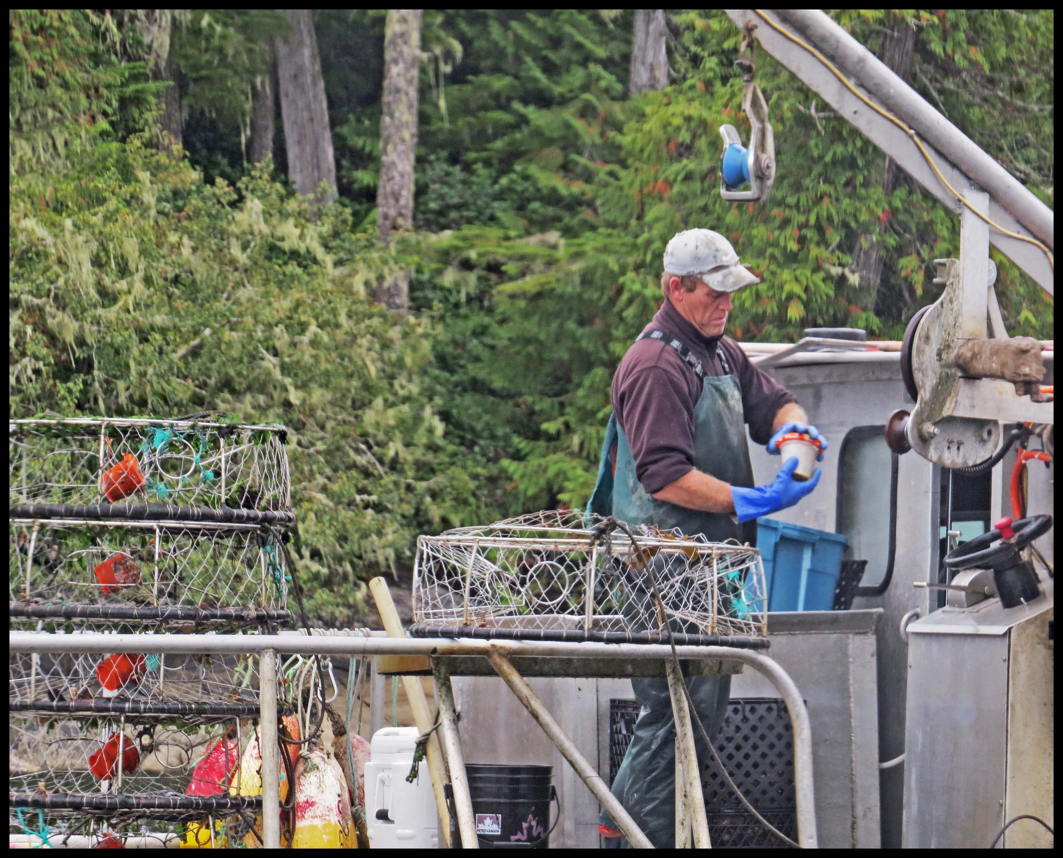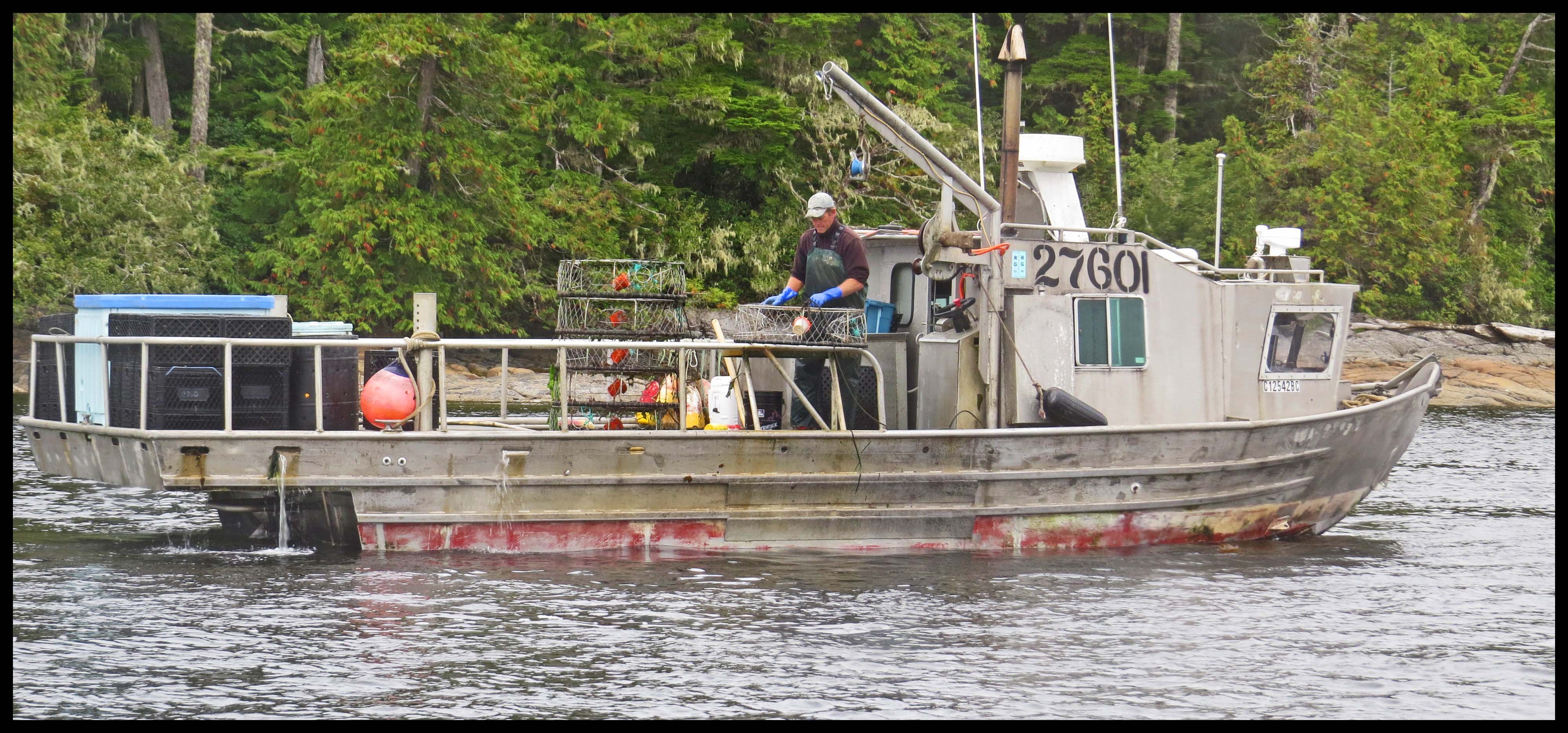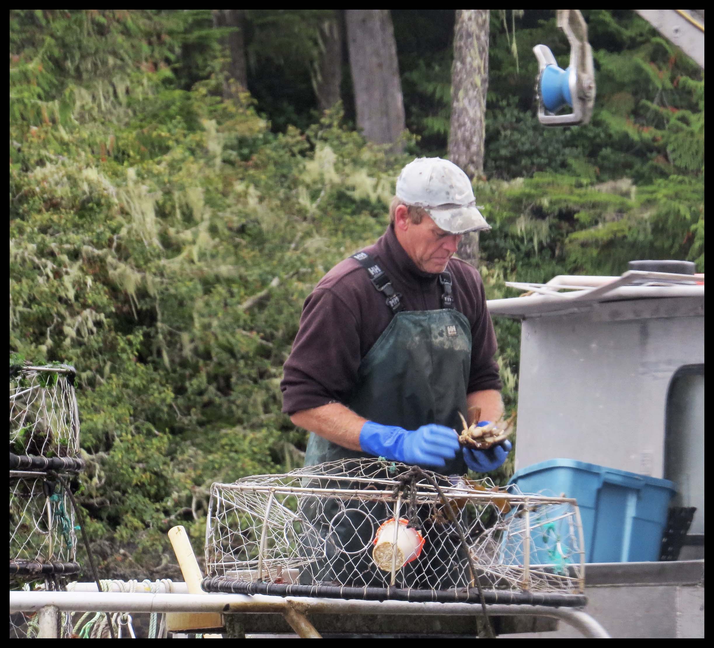There are still crabs at Blunden Harbour, even though the commercial crabbers have thinned them out considerably. This fellow has the smallest operation I’ve ever seen.