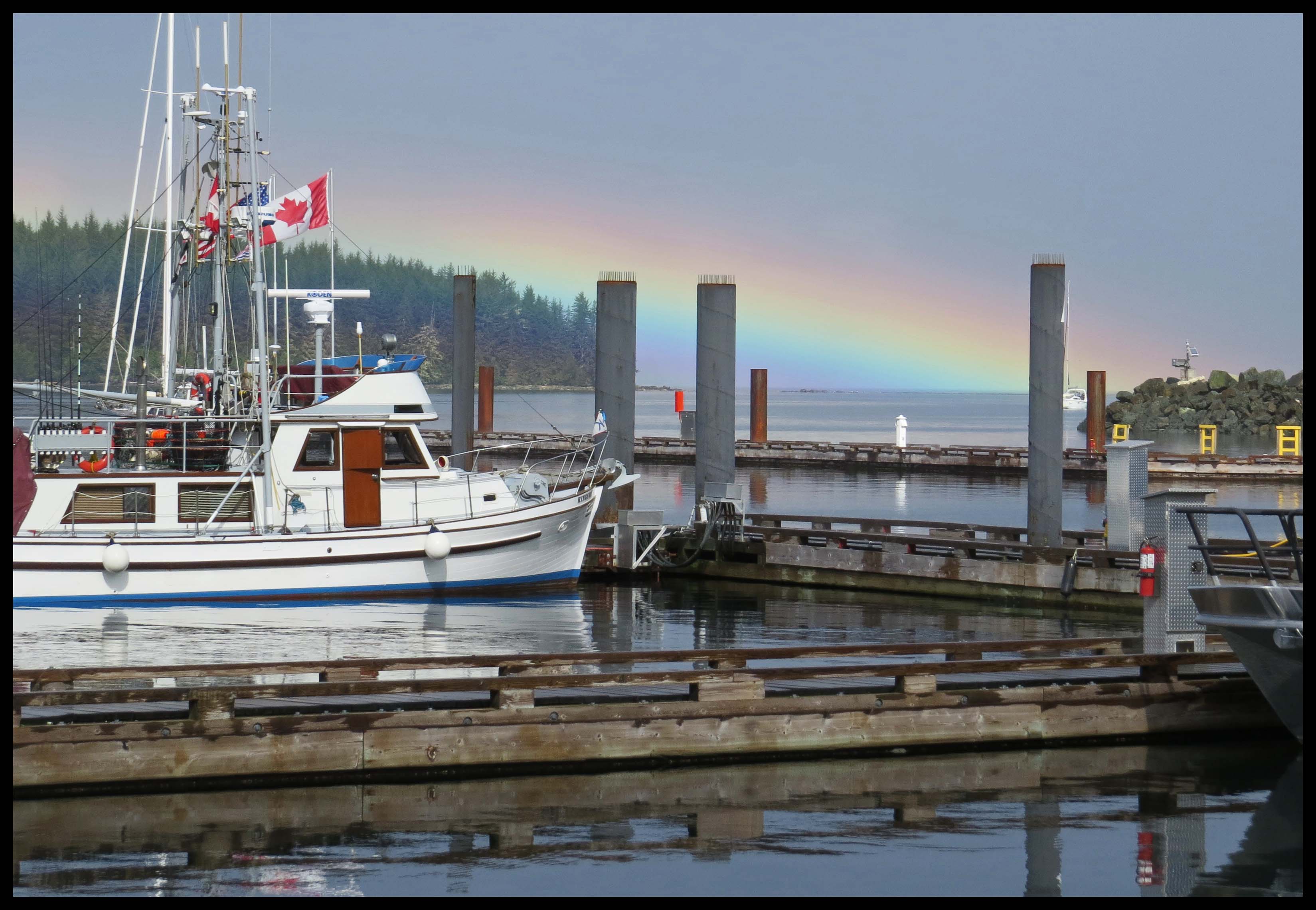 Sea conditions are great for travelling, and we make Port McNeill in 3 hours. We tied up at the new marina behind the fuel dock, where they bring the fuel right to your boat. Nice. And, we learn that moorage is 25% cheaper starting September 15. Double nice.
