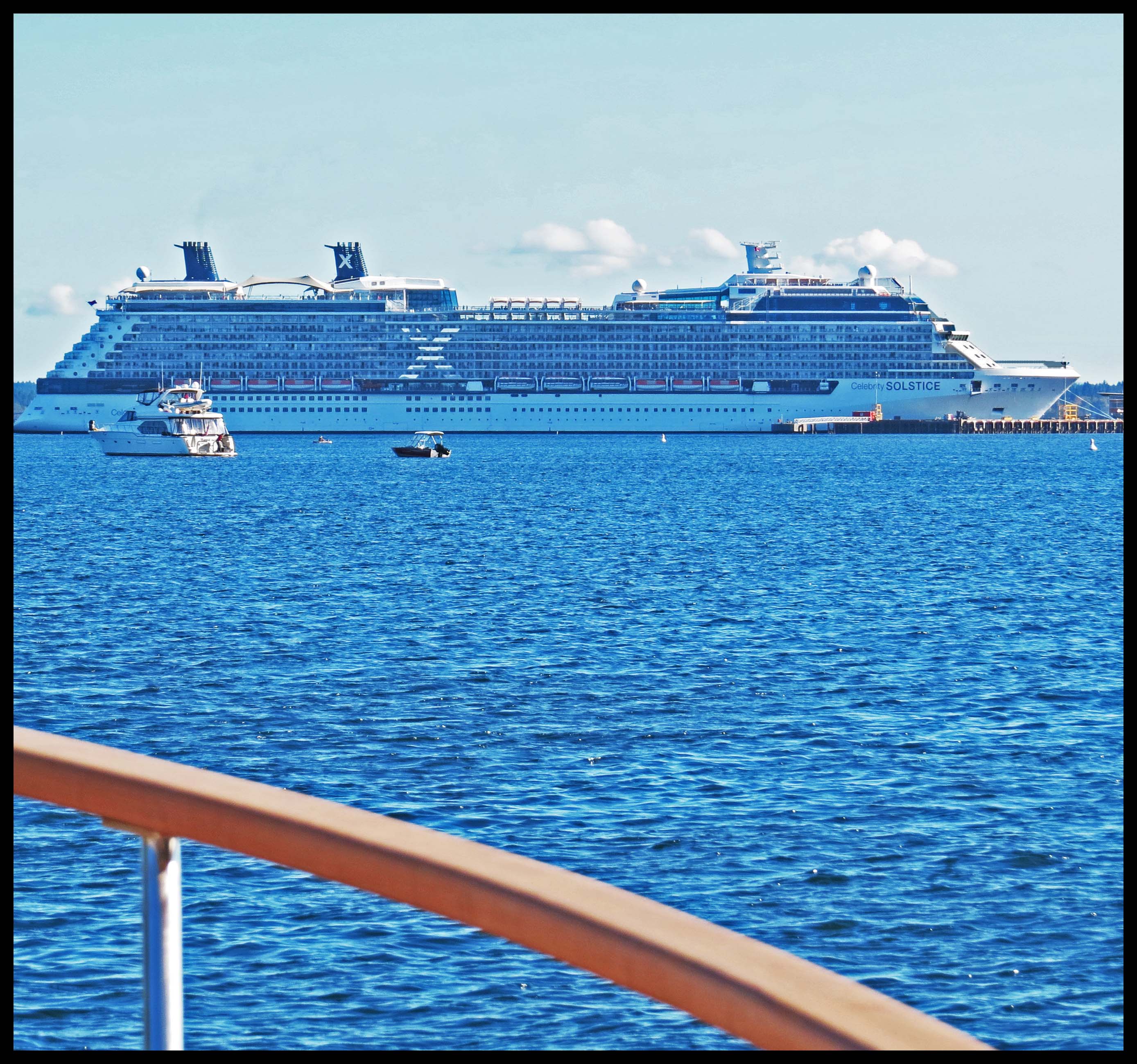 The Celebrity cruiseship “Solstice” is tied up at the dock when we arrive in Nanaimo.