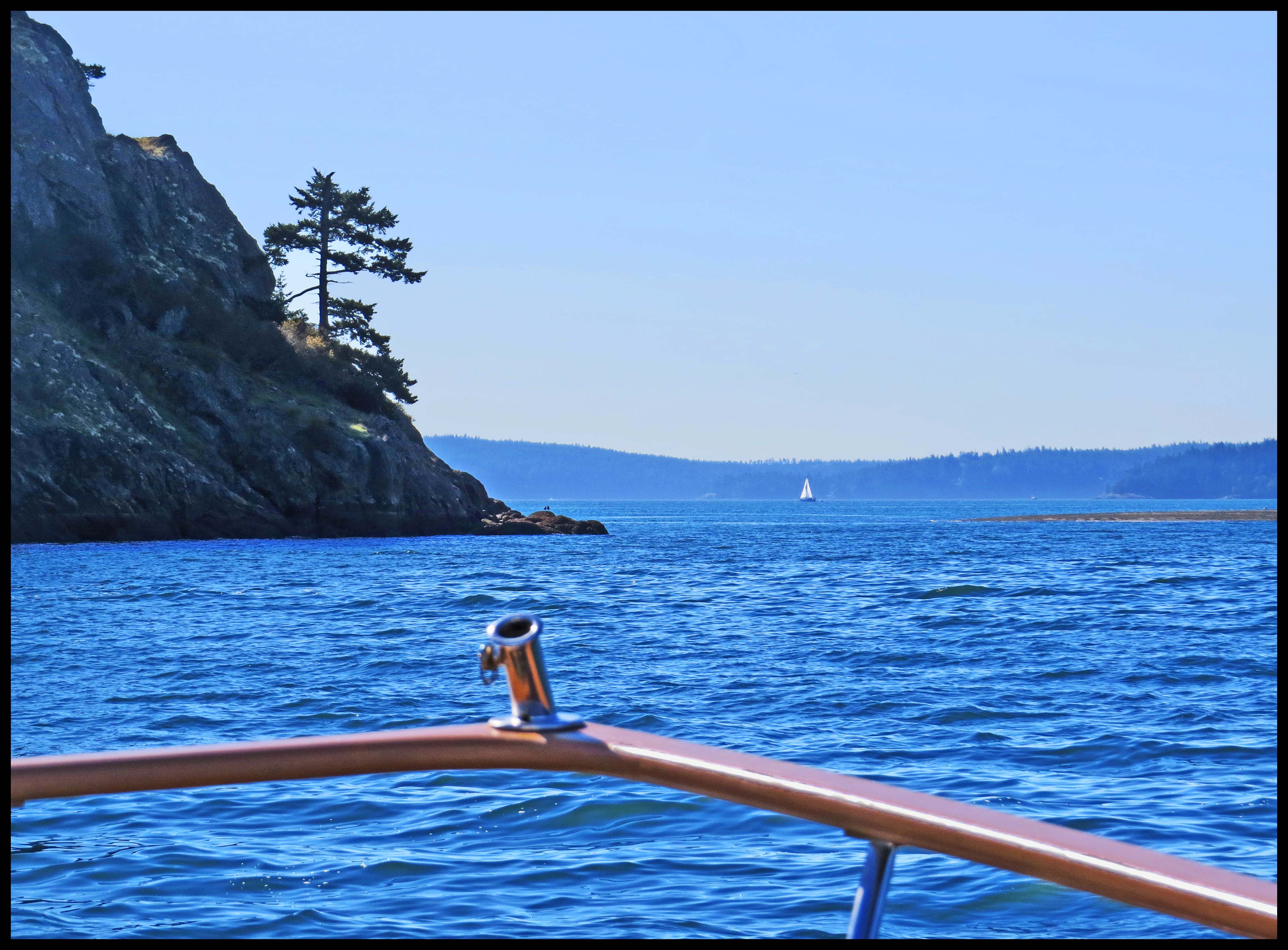 With good weather forecast for the next 3 to 4 days, we figured we’d better make our move. So, we’re underway by 0645 hrs, hoping to get as far as Hunter Bay on Lopez Island. The wind was blowing about 10 knots, the skies were clear and the seas rippled.