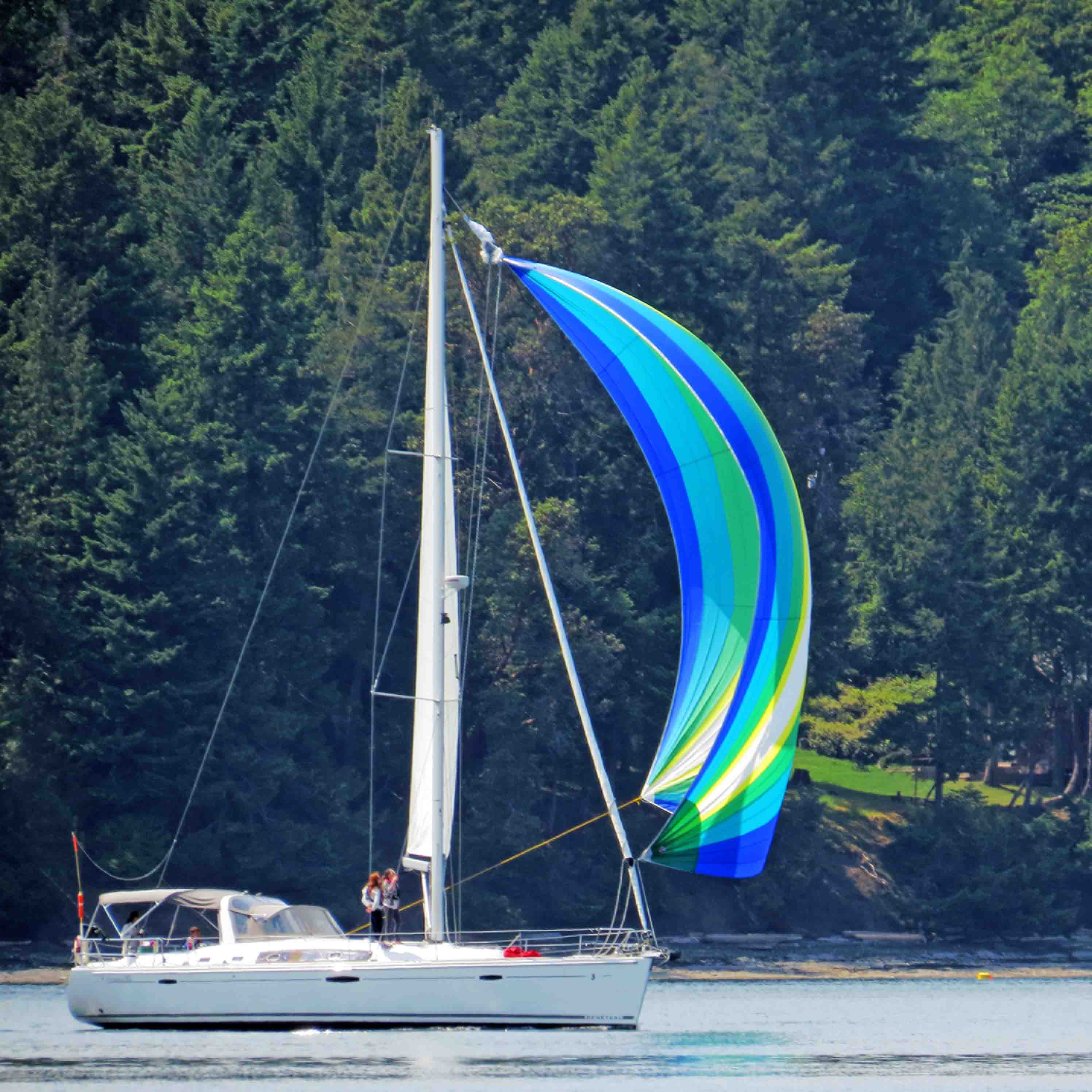 Unfortunately, all was not sunshine and spinnakers during our stay in Montague. Al discovered not only water in our bilge, but diesel fuel floating on top of the water. He’d noticed that the bilge pump had been running more often than usual. Now he knows why, but he doesn’t know where either the water or the diesel is coming from. Luckily, in 24 hours, only 2 gallons or so of water is accumulating. But, where is it coming from?
